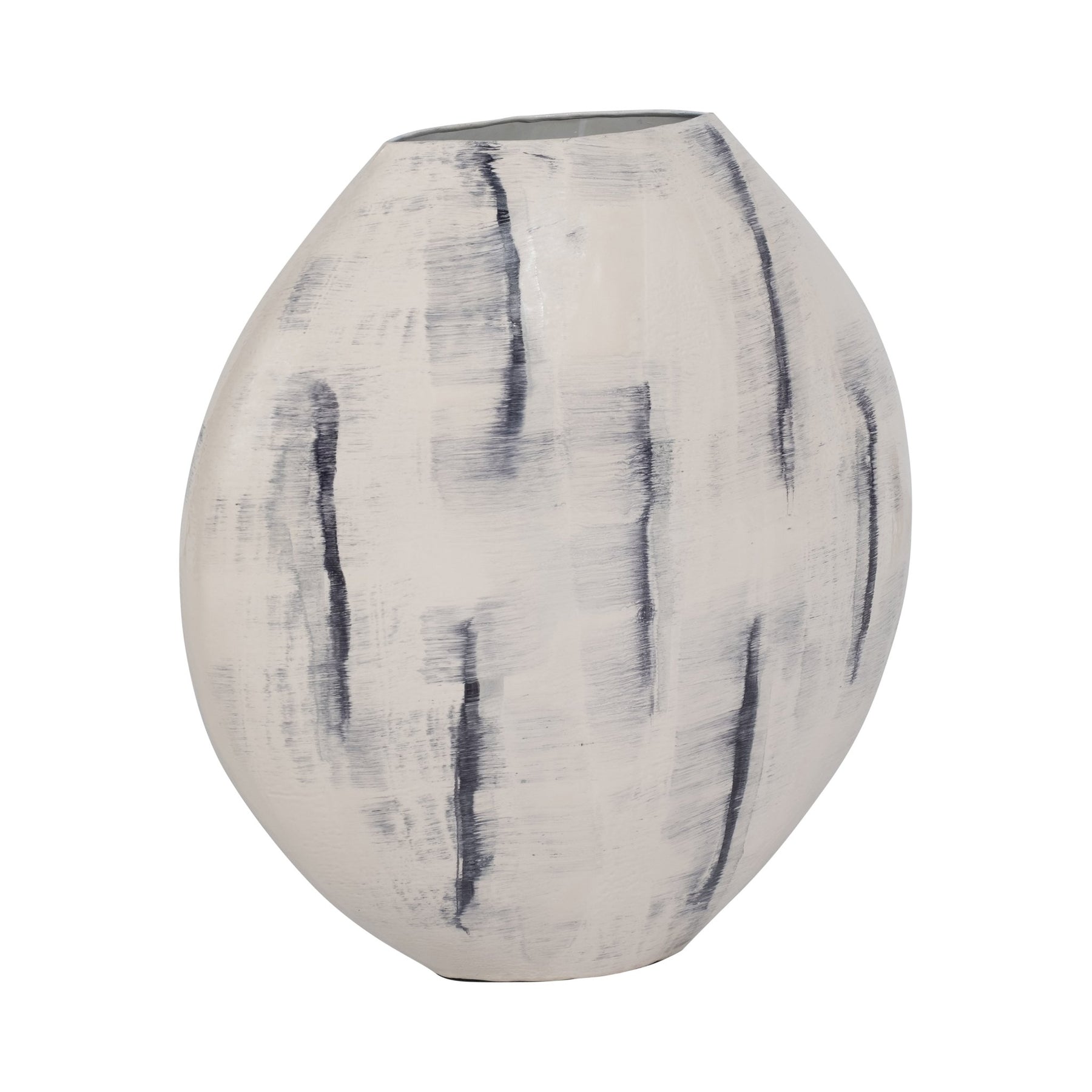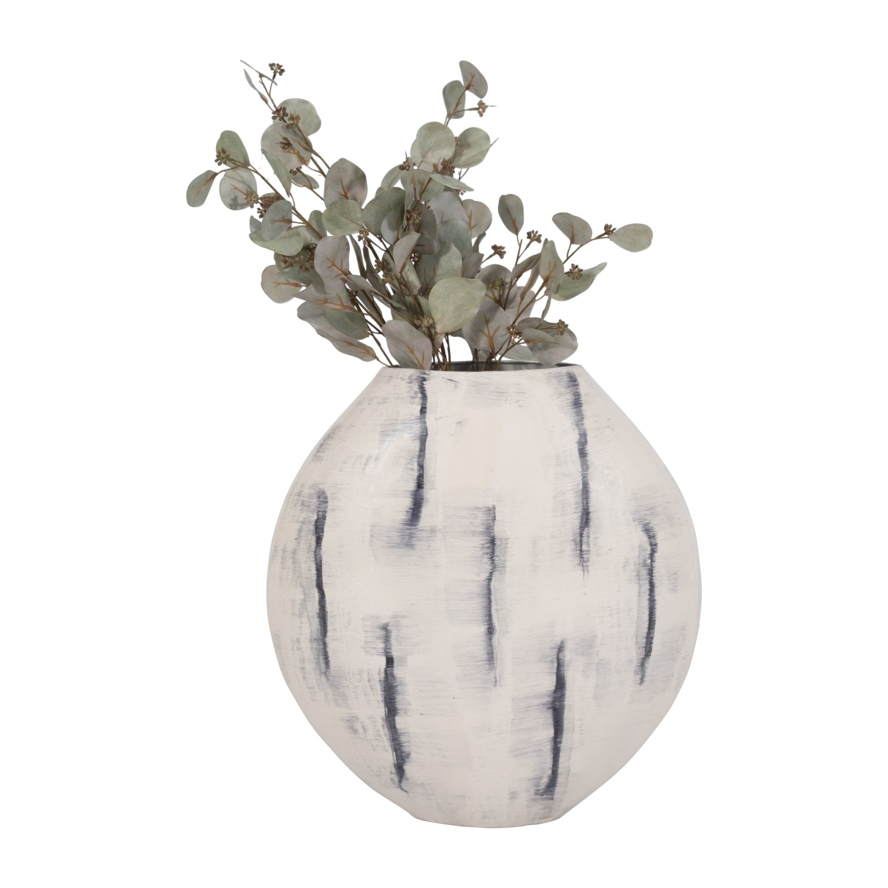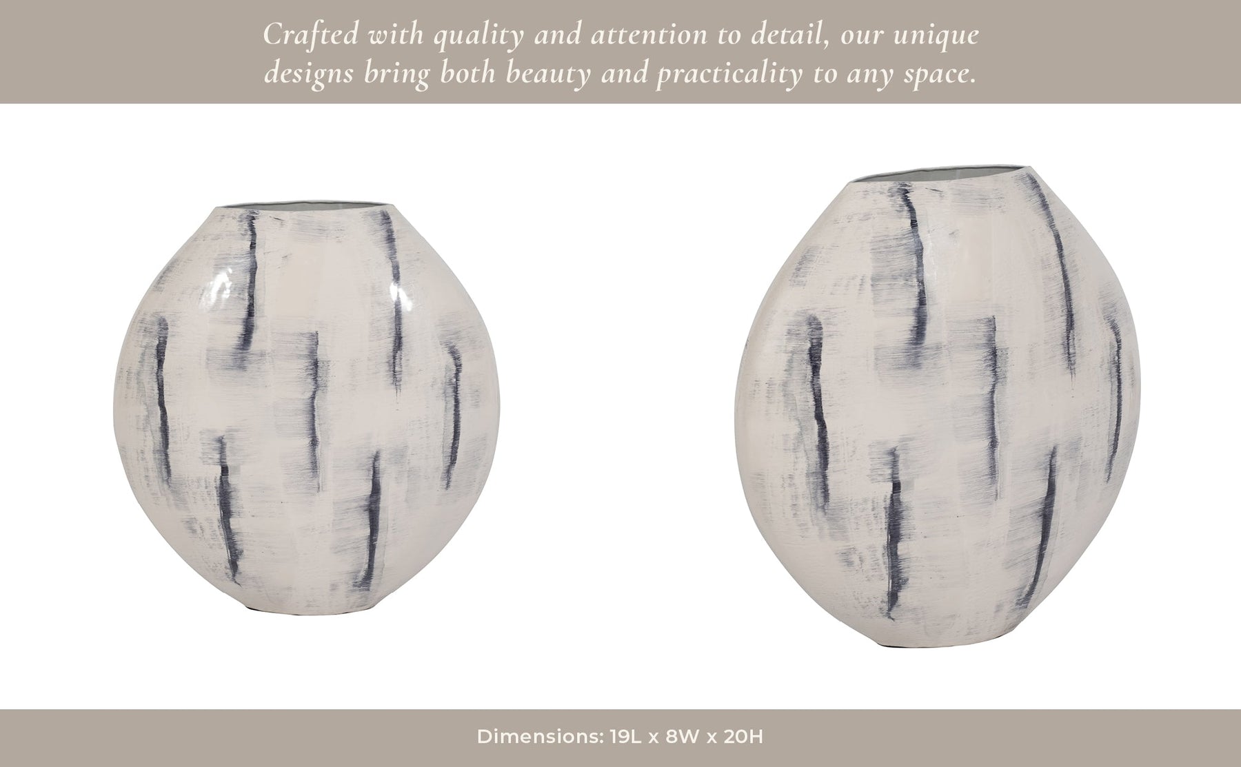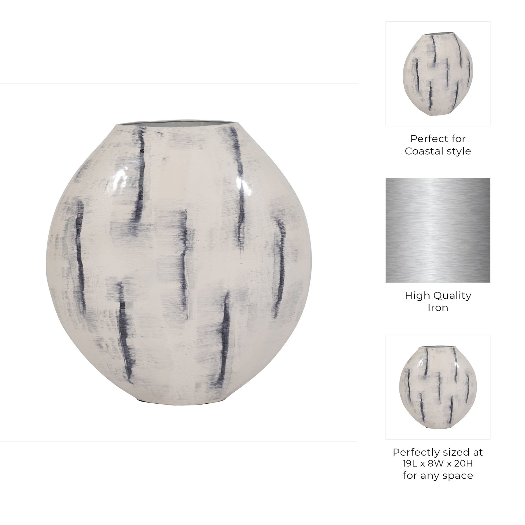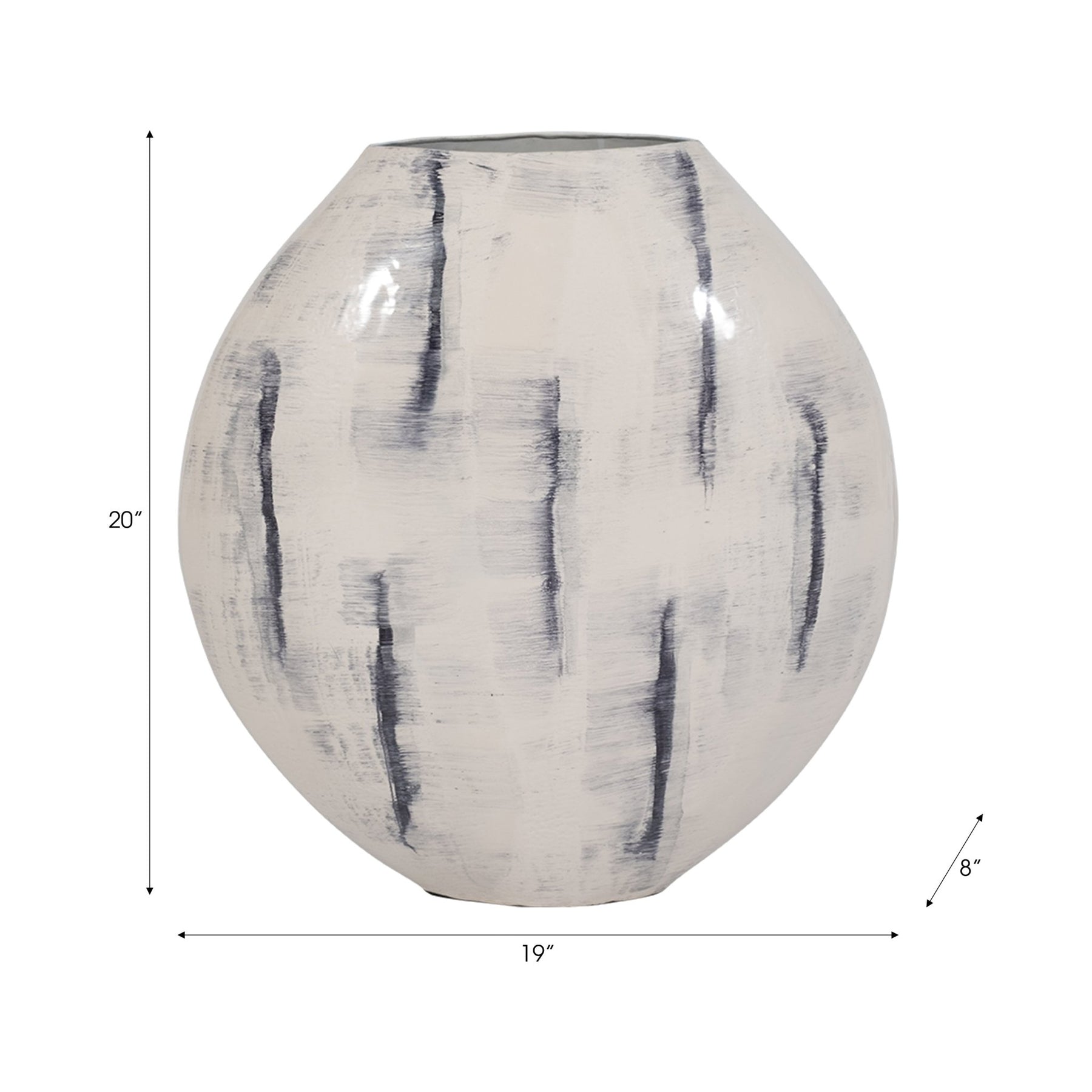 METAL, 20" ENAMELED ROUND VASE, DISTRESSED WHITE
