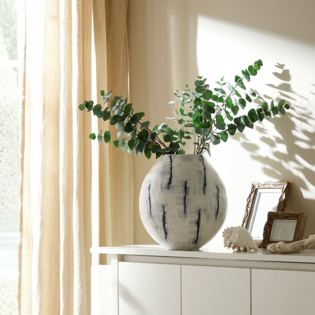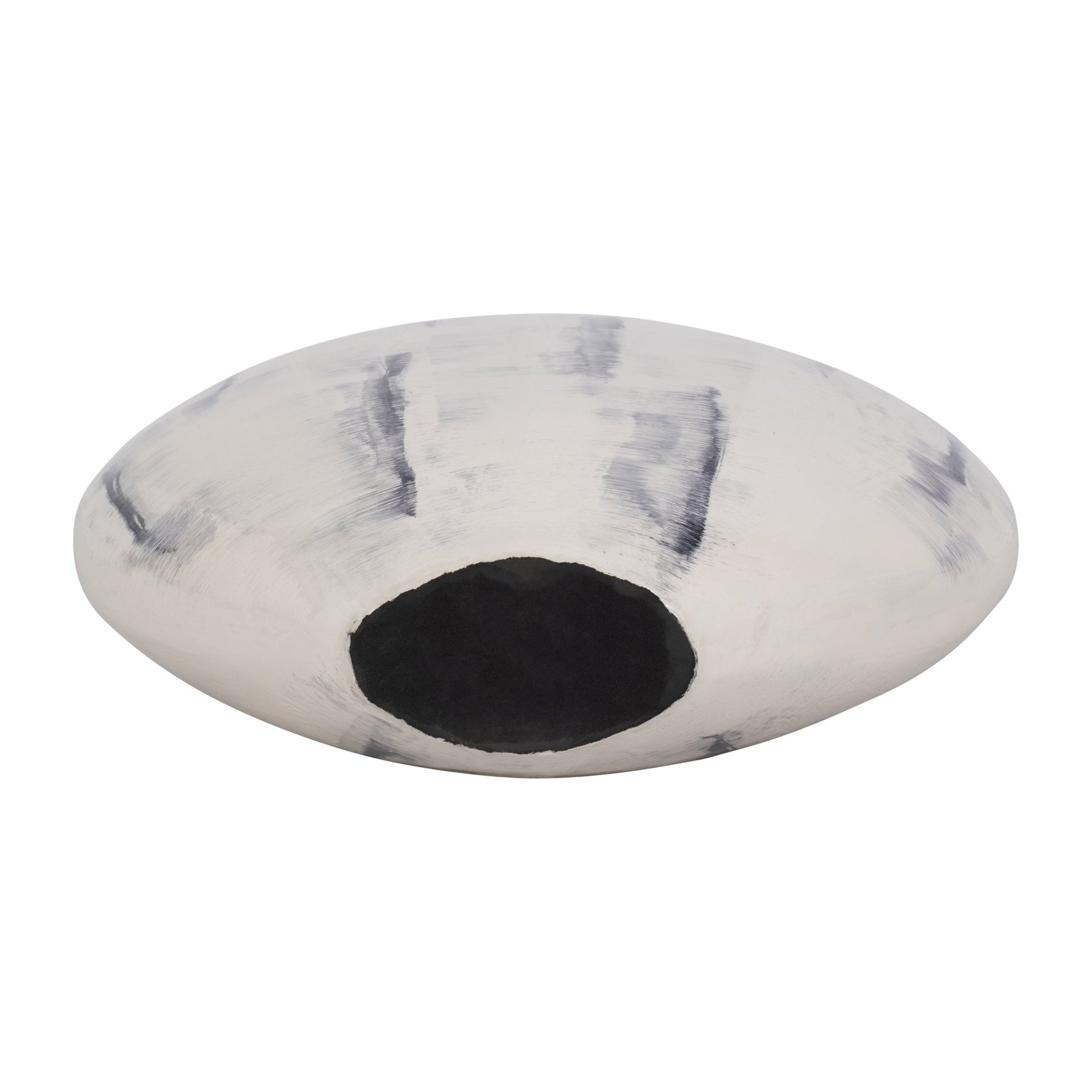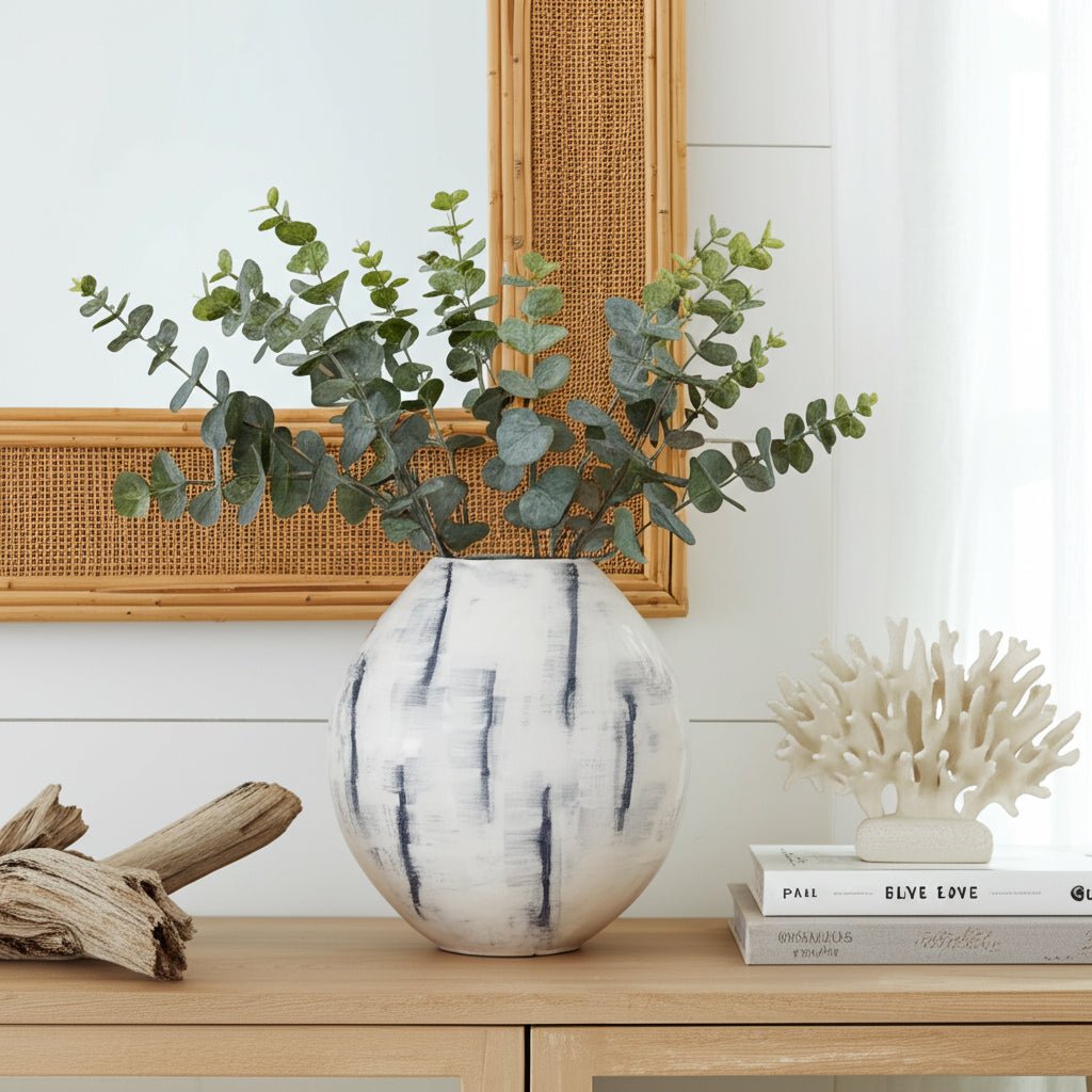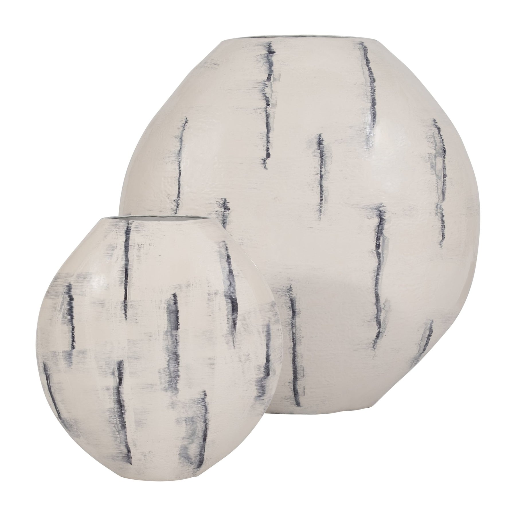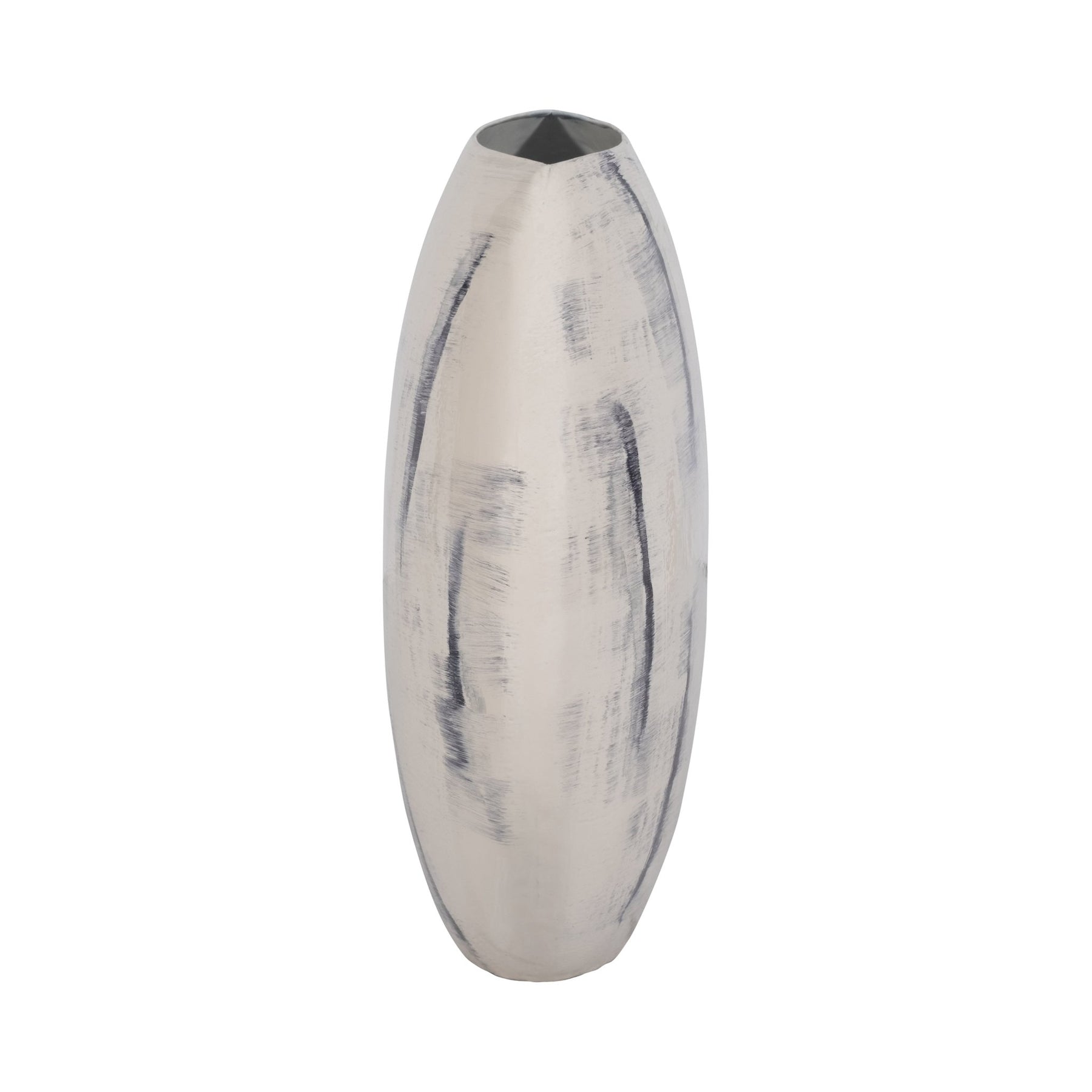 METAL, 20" ENAMELED ROUND VASE, DISTRESSED WHITE