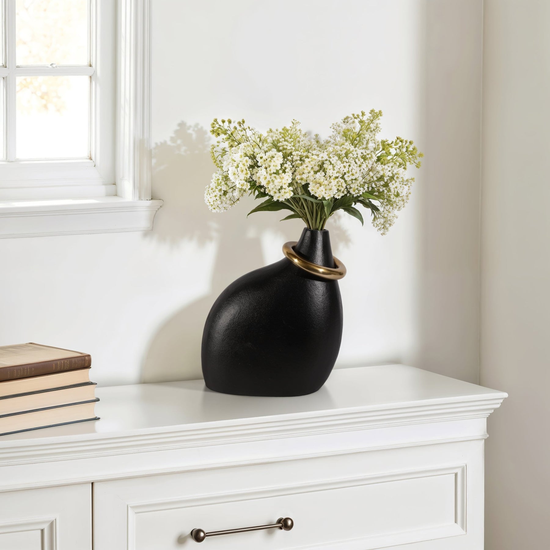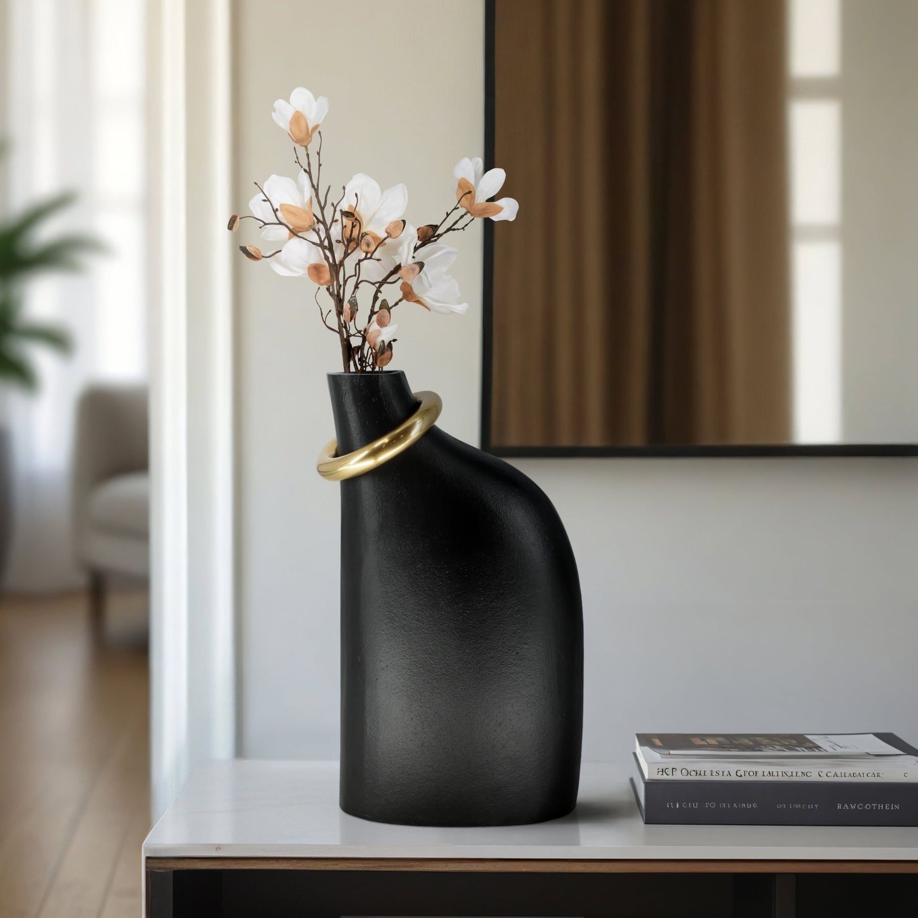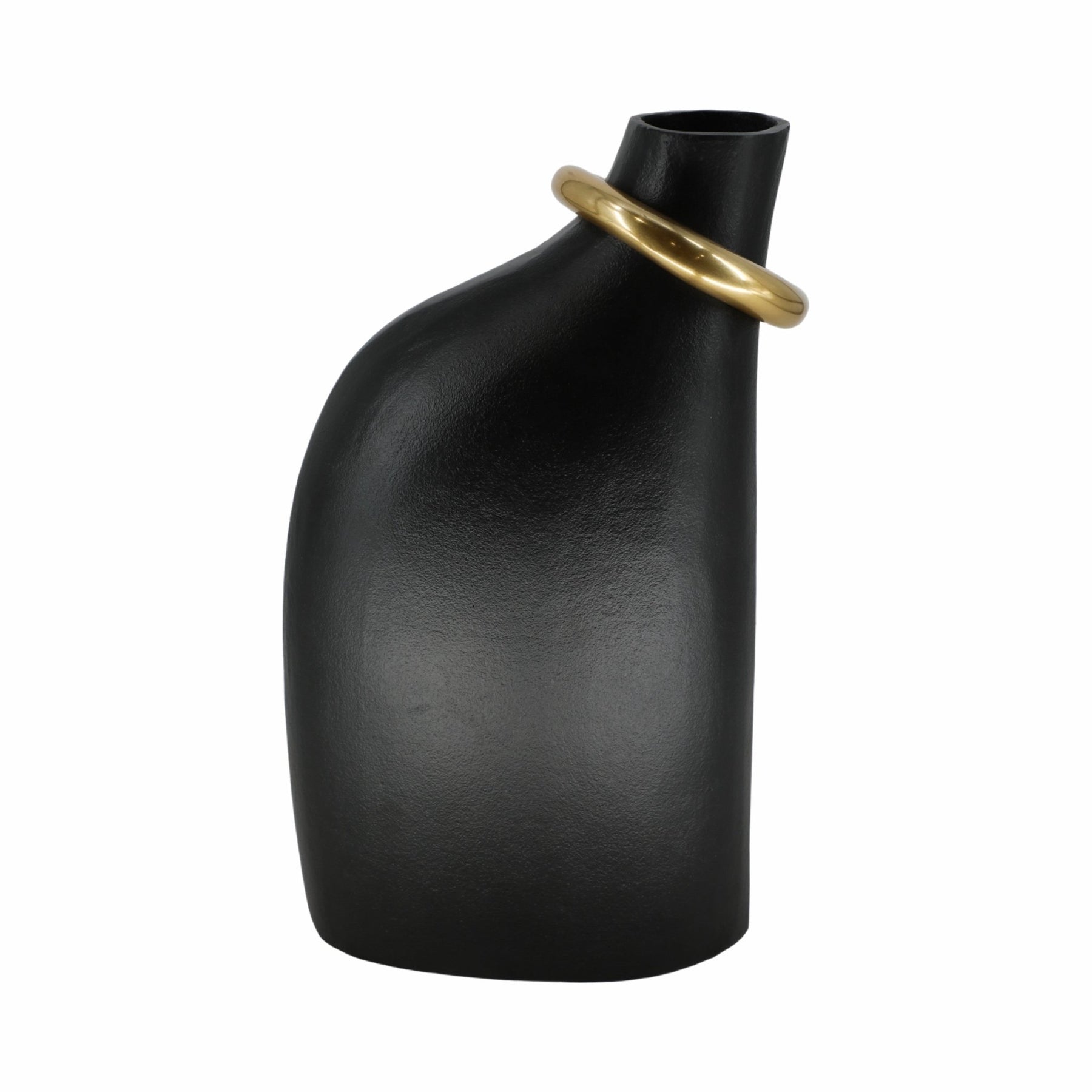 Rouen Black Vase With Ring - Al Rugaib Furniture