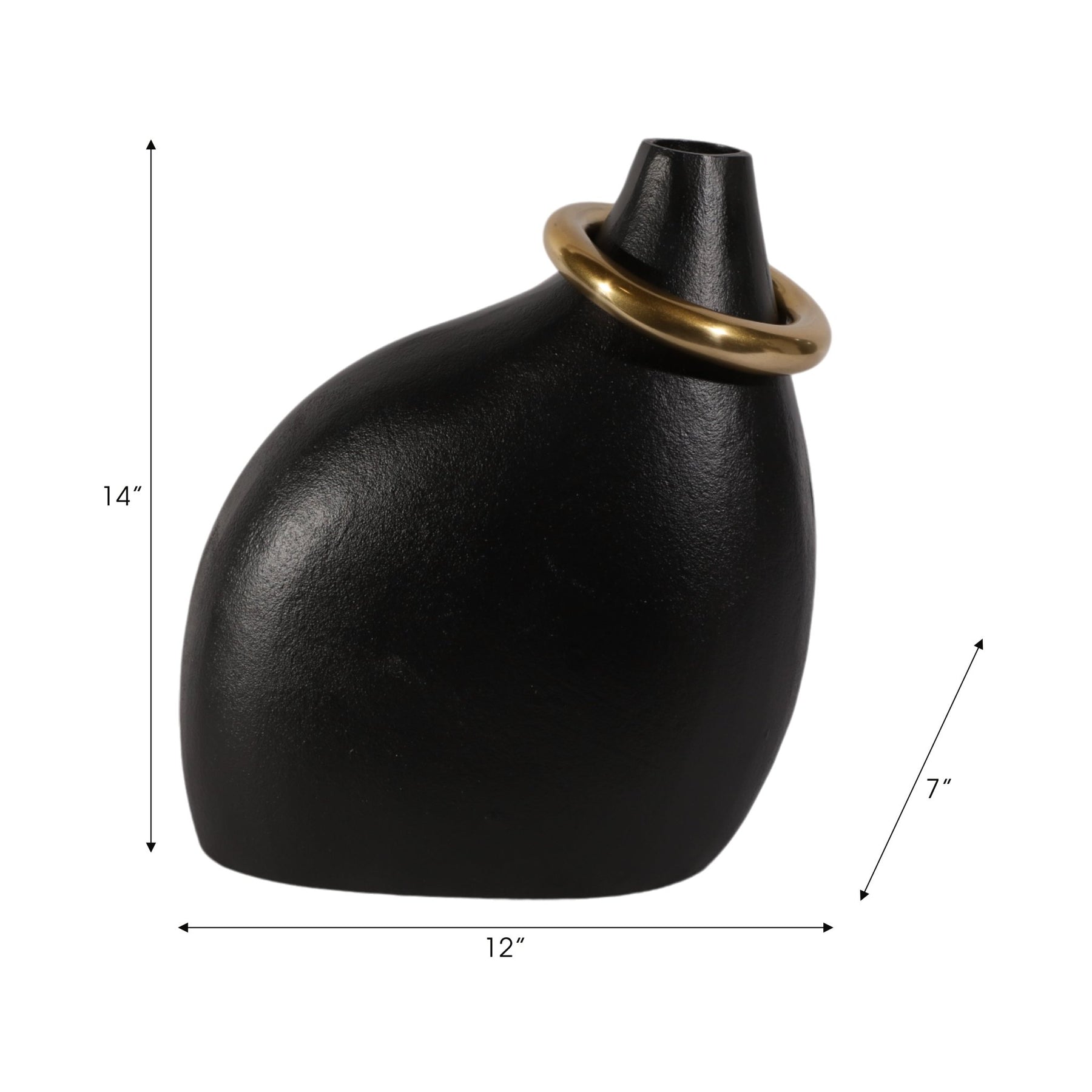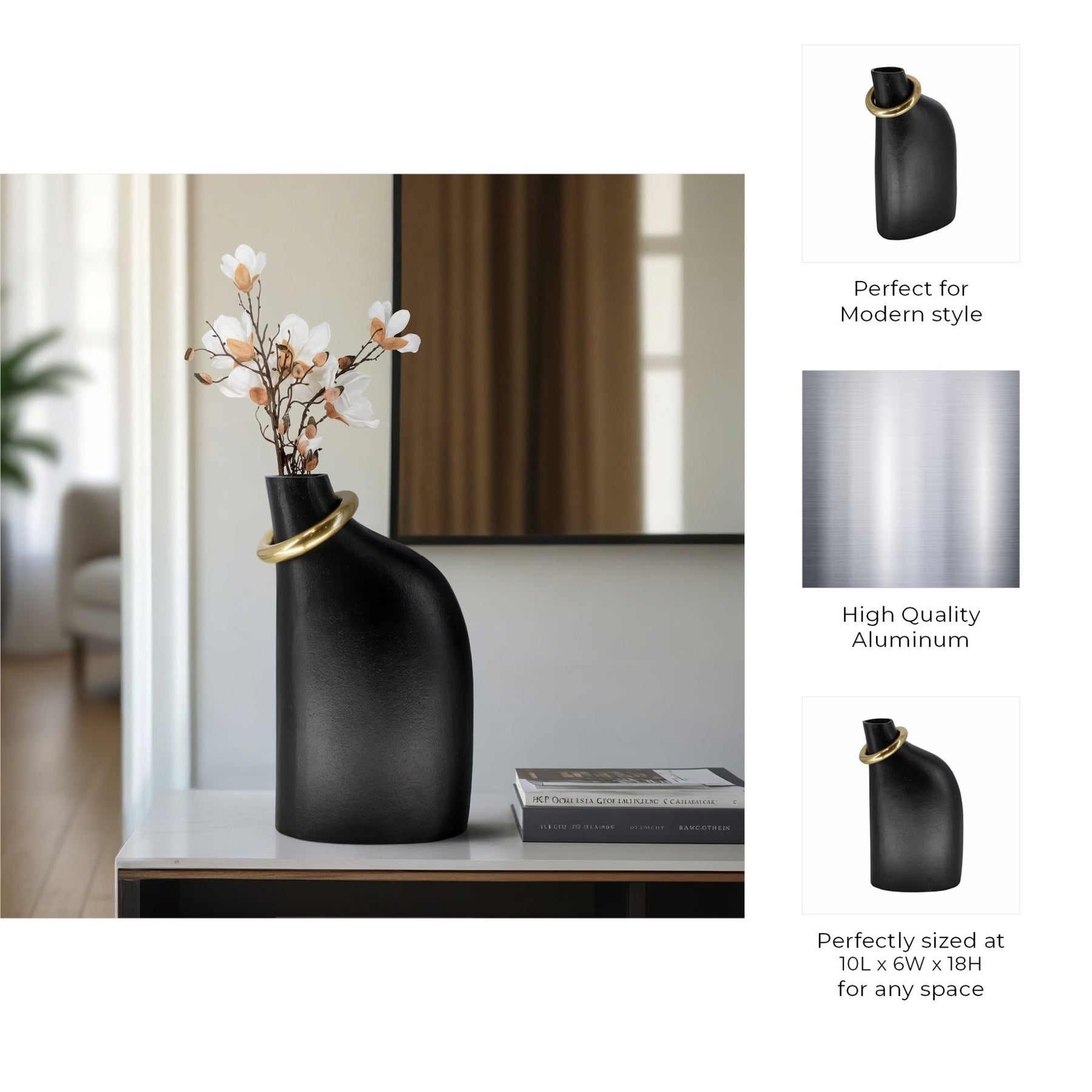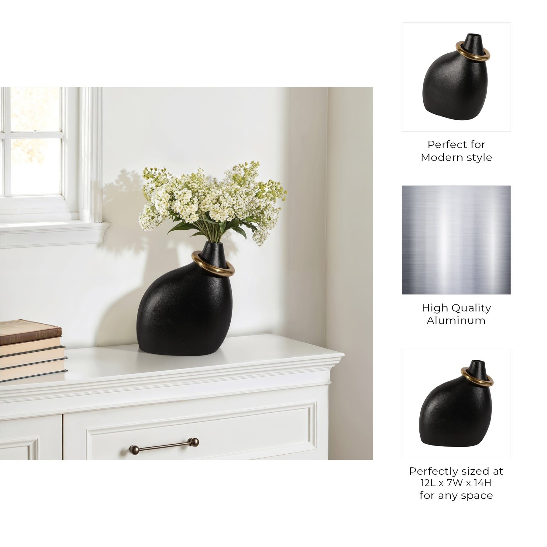 Rouen Black Vase With Ring - Al Rugaib Furniture