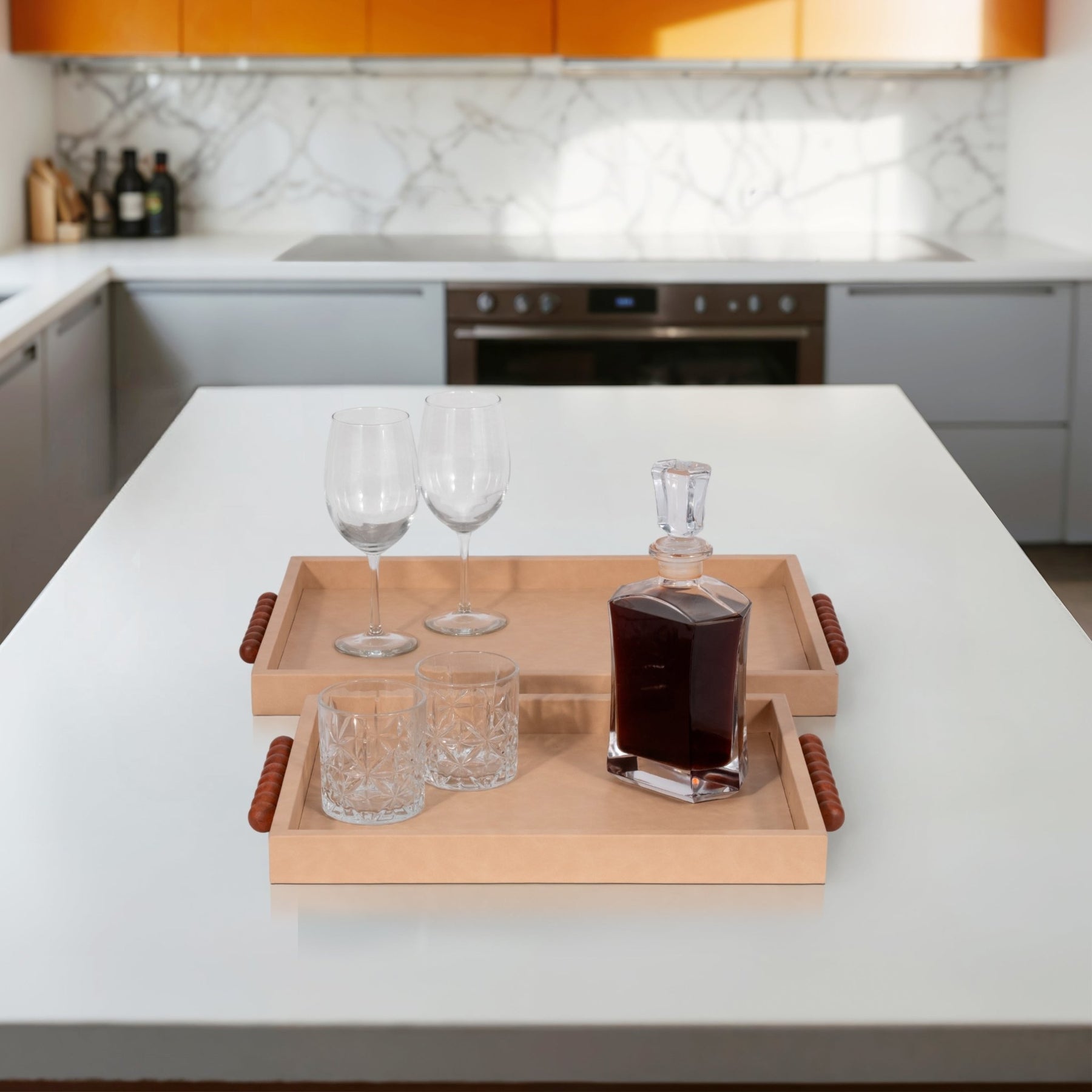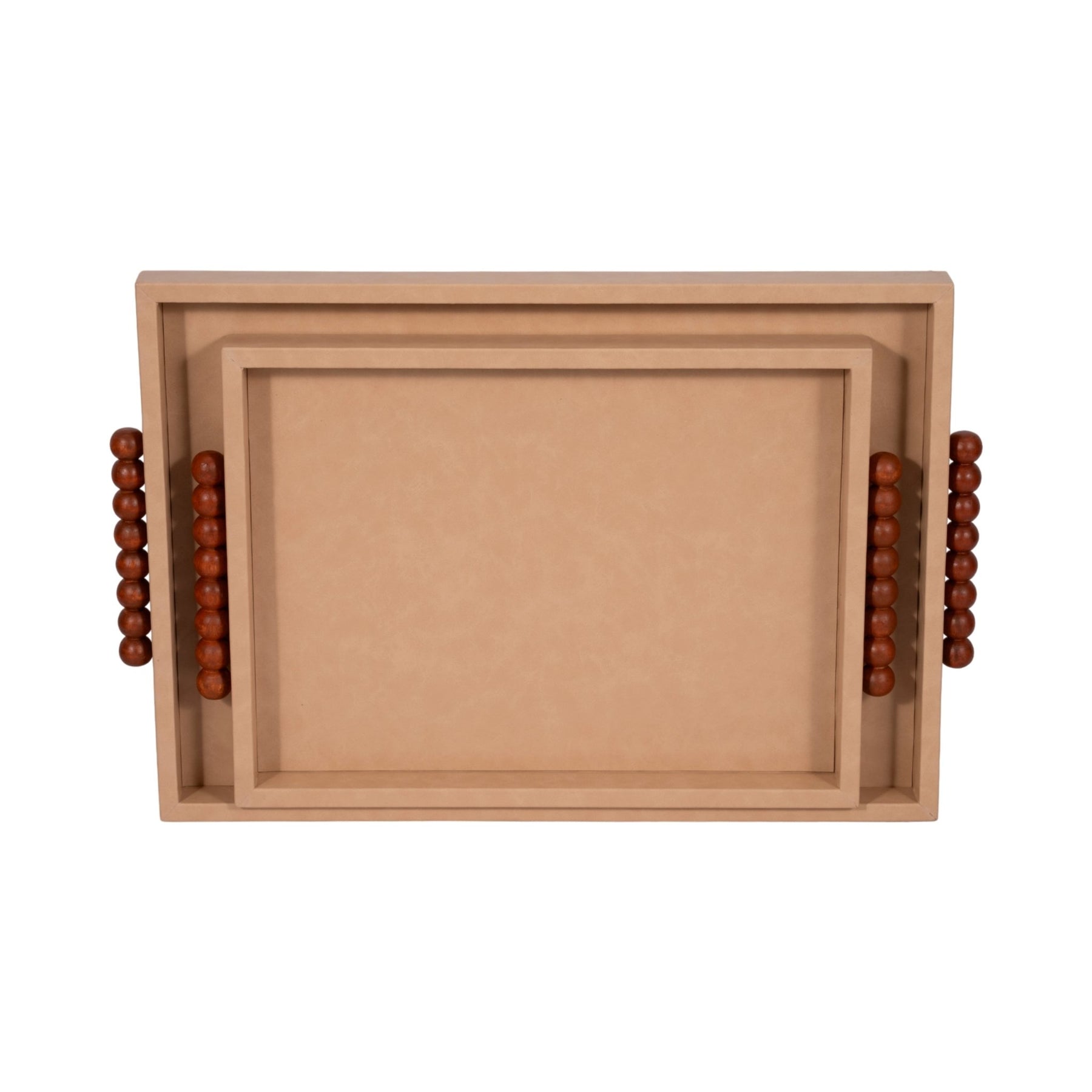 S/2 16/20" Beaded Handle Trays, Ivory - Al Rugaib Furniture