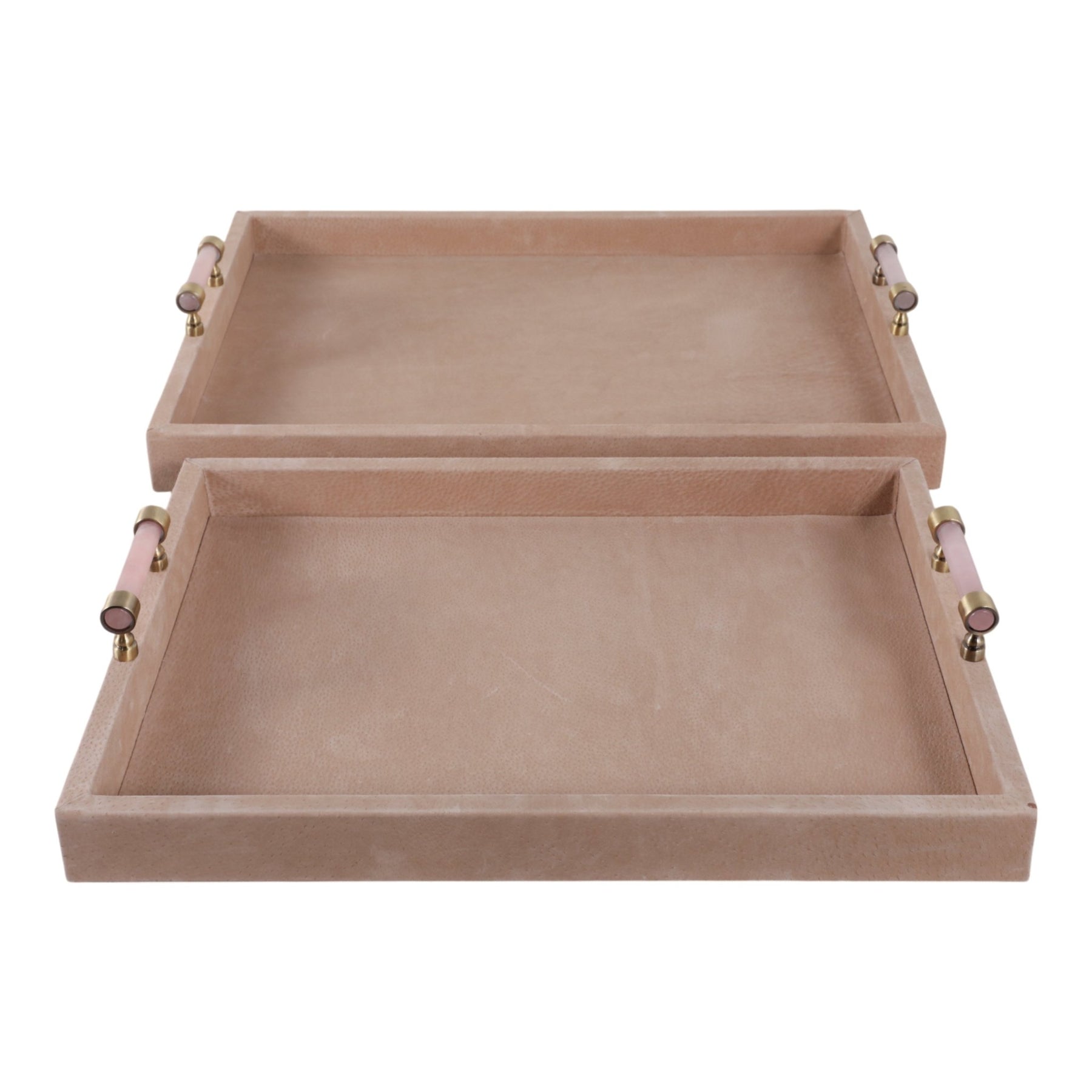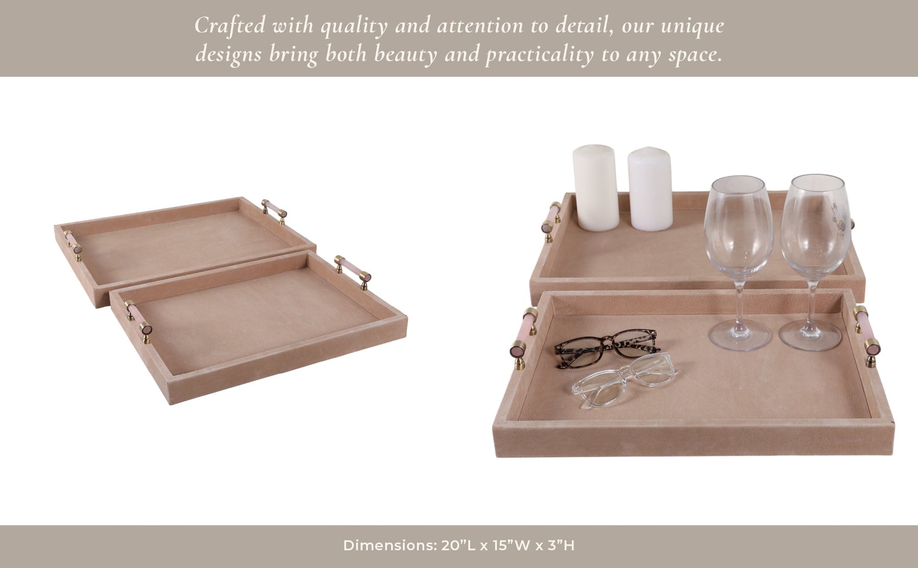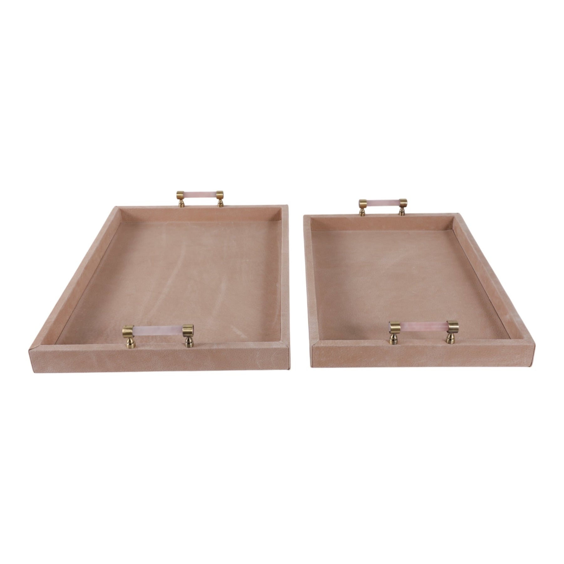 S/2 17/20halofax Tan Suede Selenite Hardware Trays
