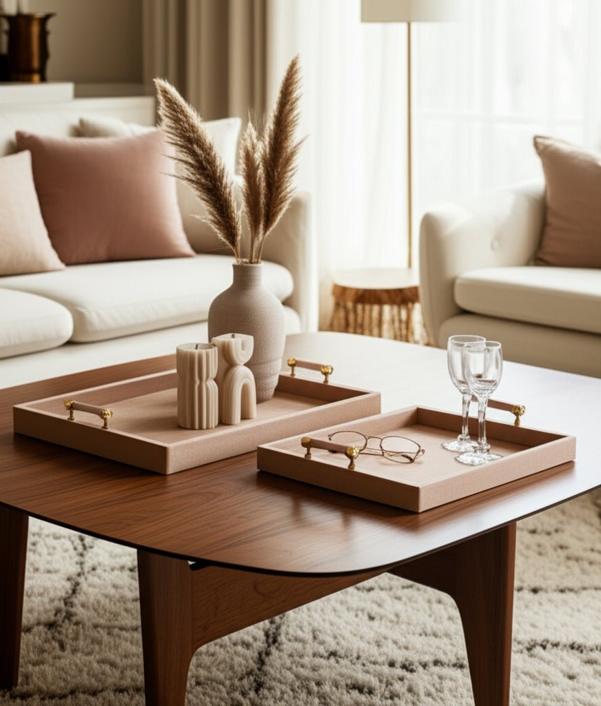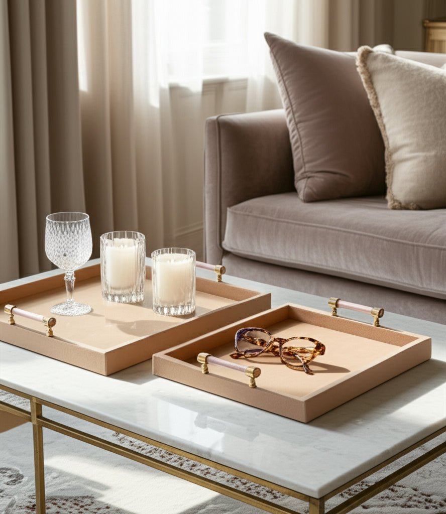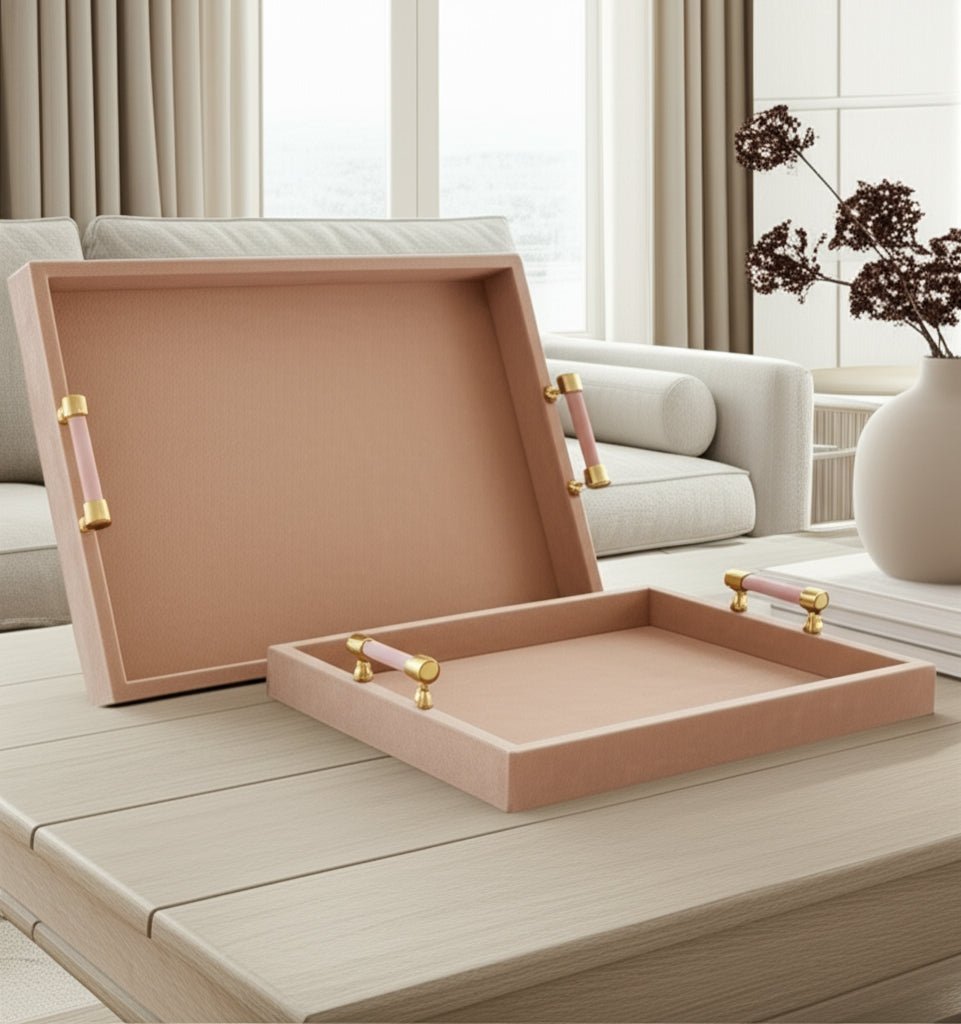 S/2 17/20halofax Tan Suede Selenite Hardware Trays