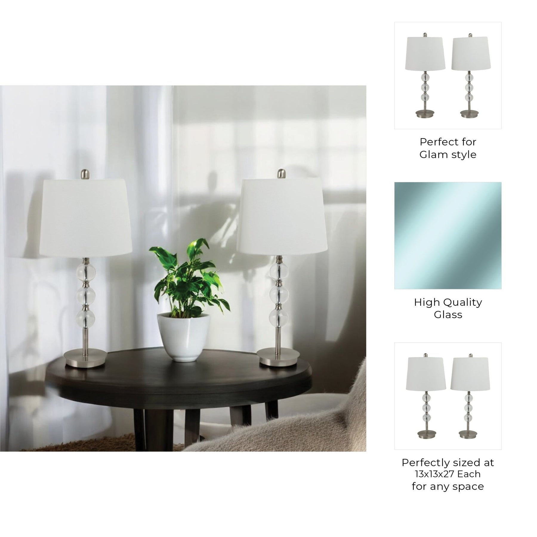 S/2, Crystal 27" Table Lamps, Silver - Al Rugaib Furniture