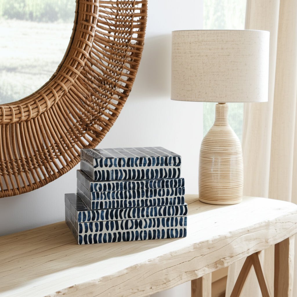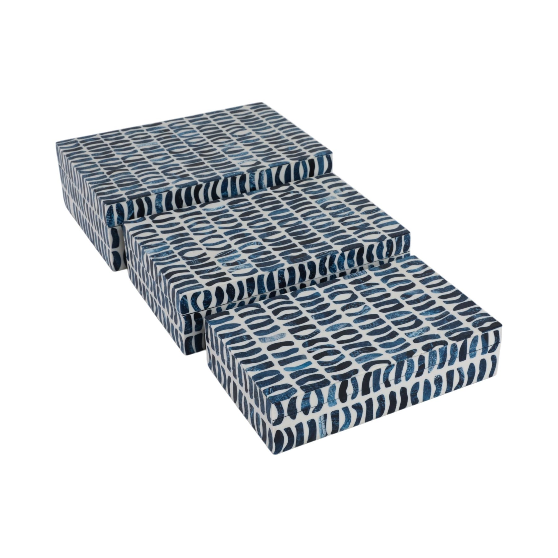 S/3 10/11/12" Boxes With Inlay Pieces, Blue/white - Al Rugaib Furniture
