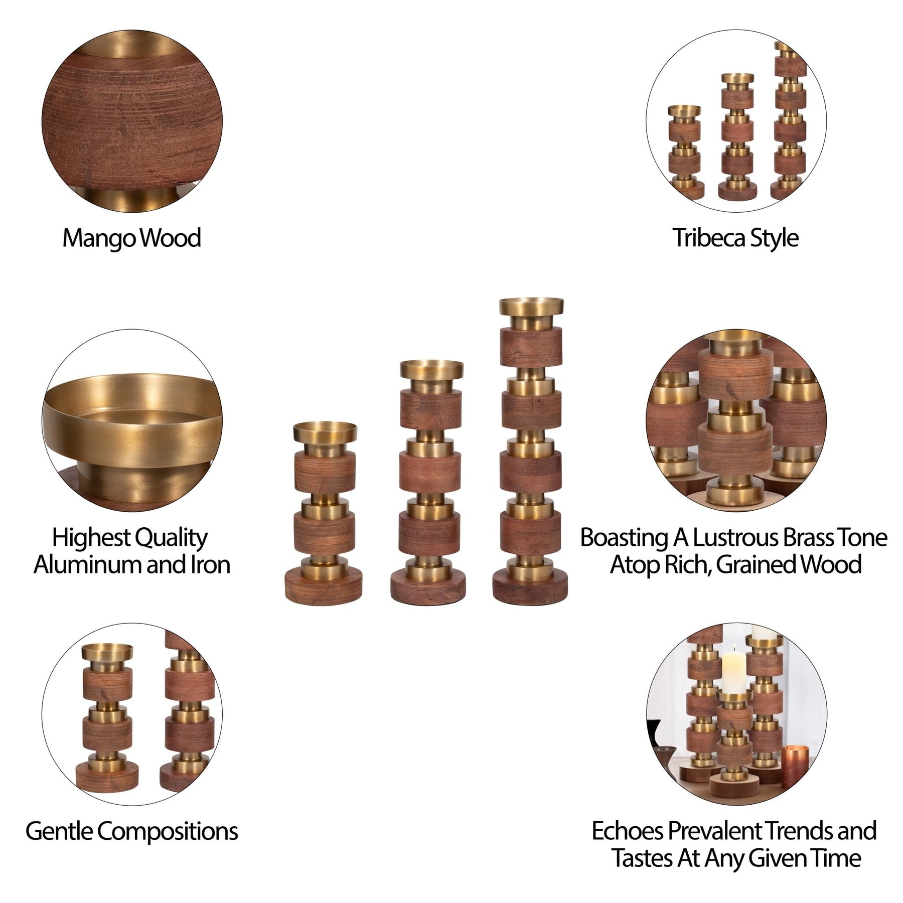 S/3 13/17/22" Hollis Wood Candle Sticks, Brown
