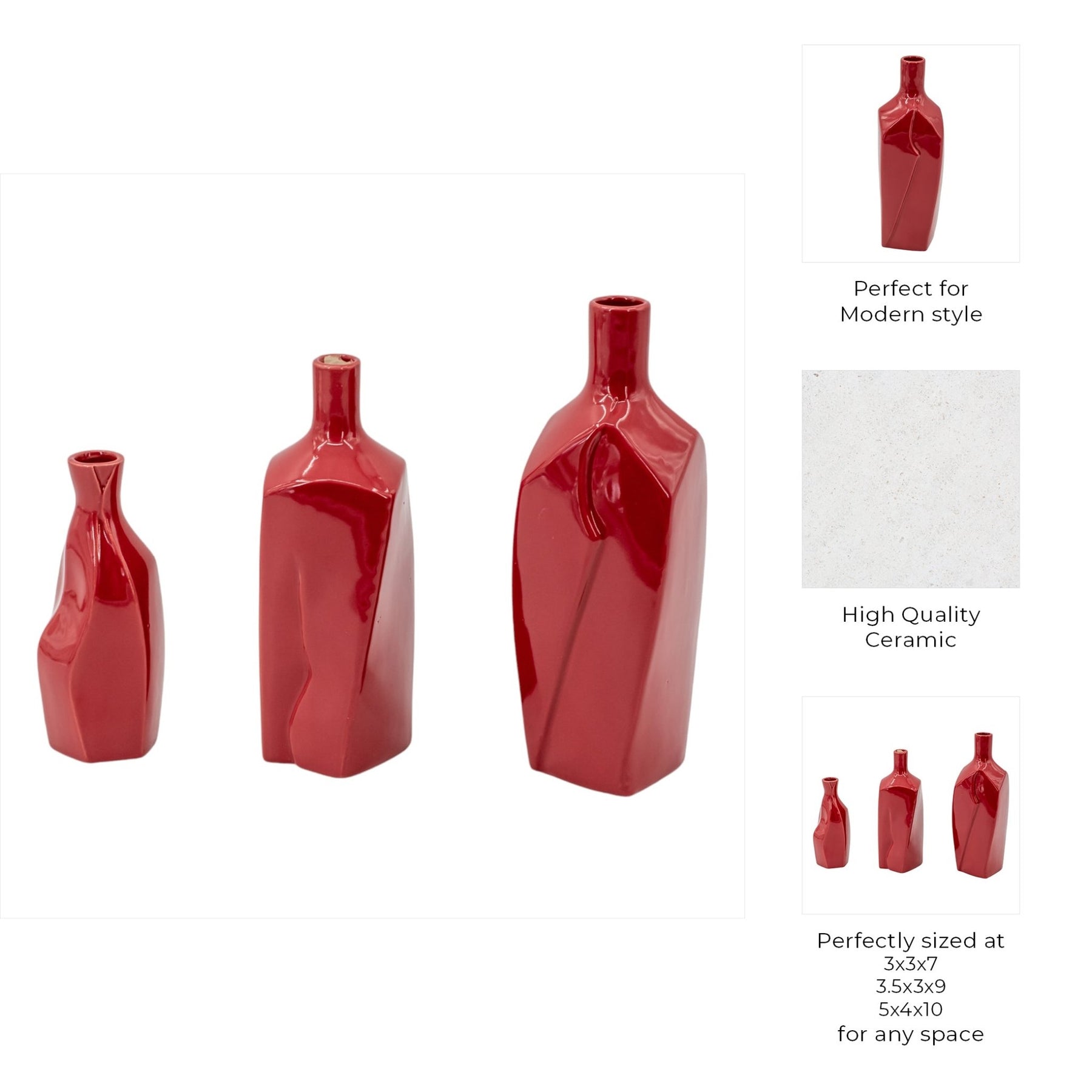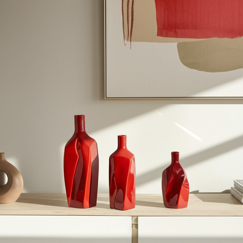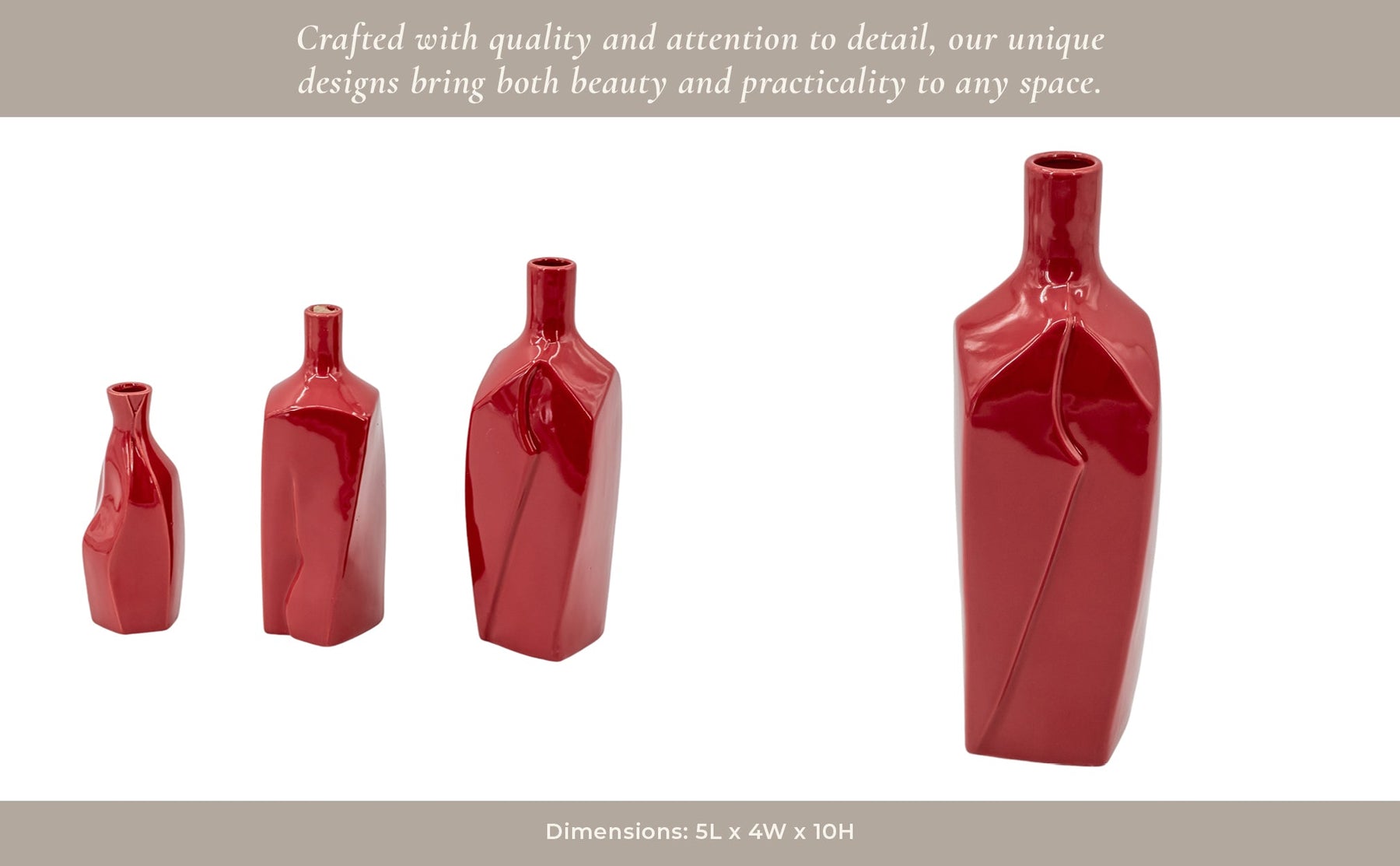 S/3 7/9/10" Varena Red Vases - Al Rugaib Furniture