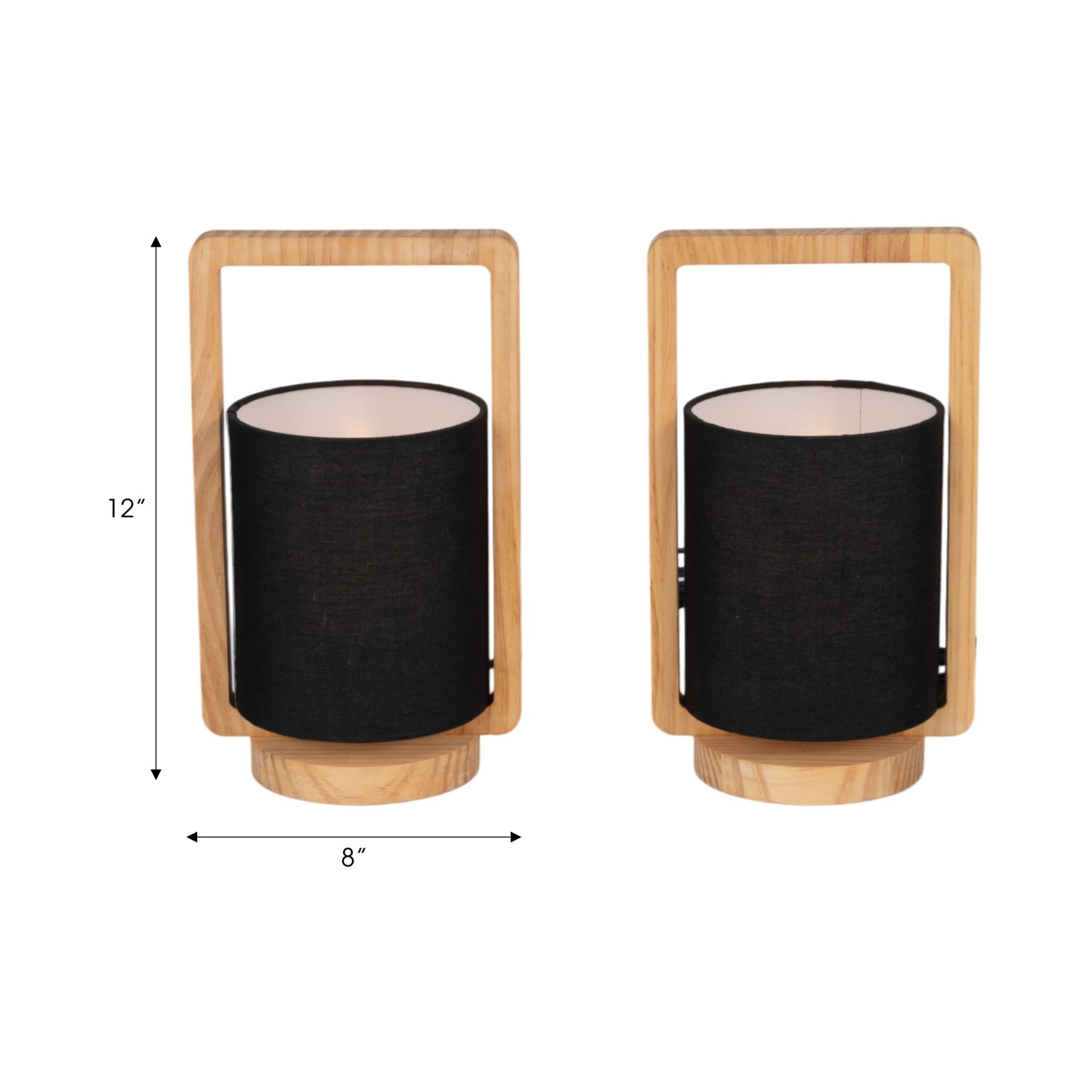 Wood,s/2,11"h, Cylndr Tbl Lmps,nature Wood/blk