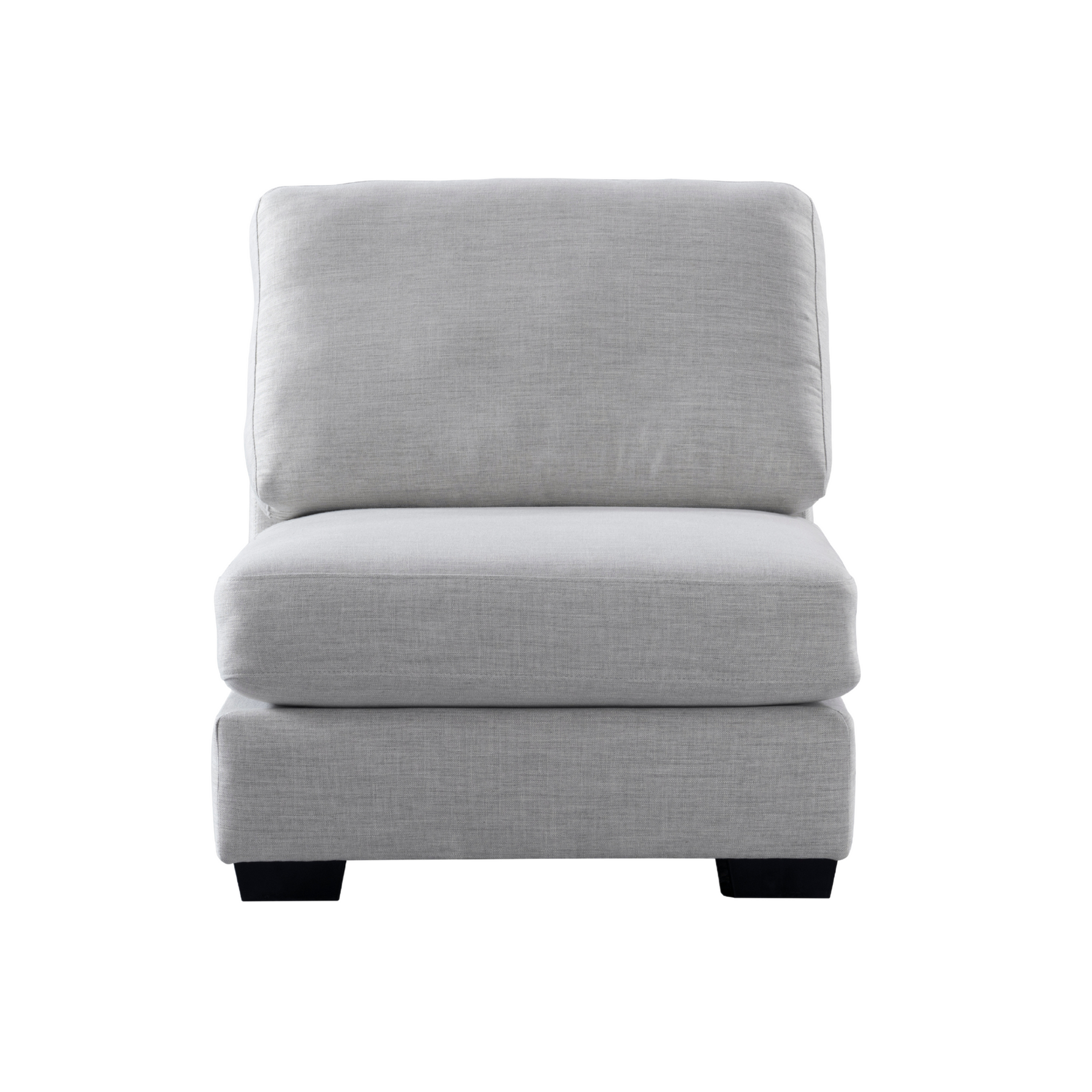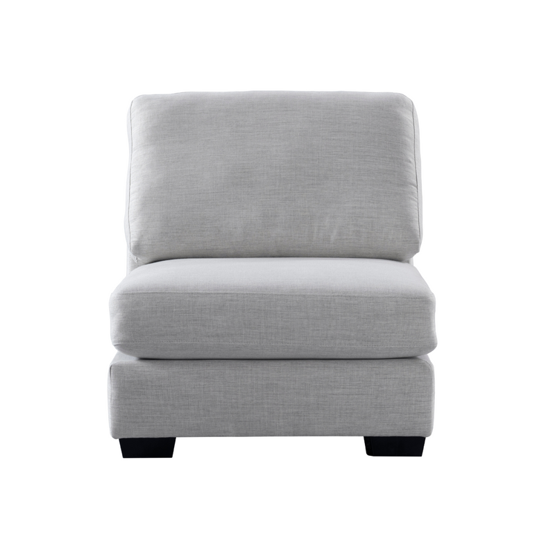 Get comfort in our trendy and spacious sectional, with its clean lines, sleek material and modern style. With plush grey fabric and charming cushions, this cozy and grand Sectional by Roots Furniture is definitely what you need in your home.