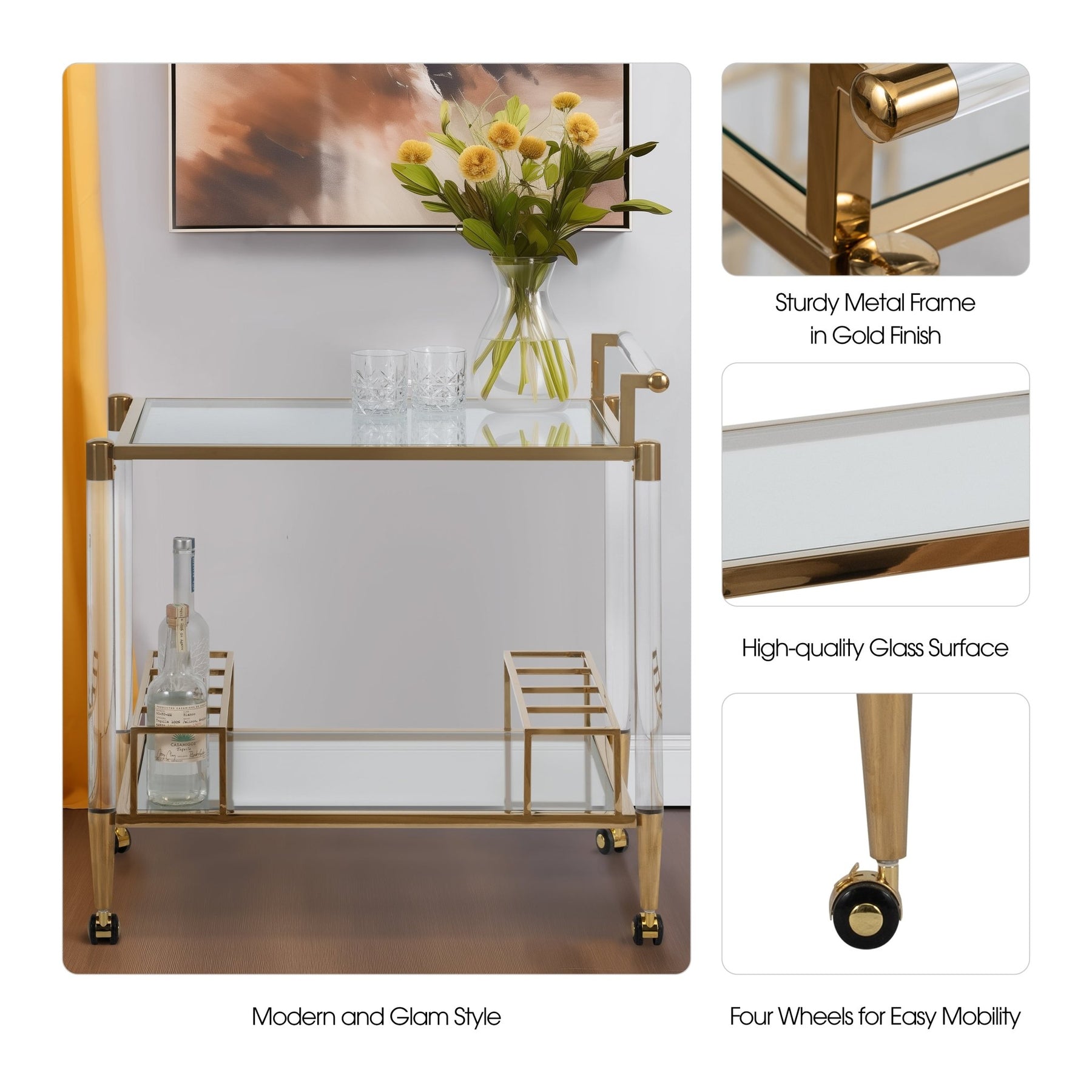32" Lushley Acrylic Drink Cart