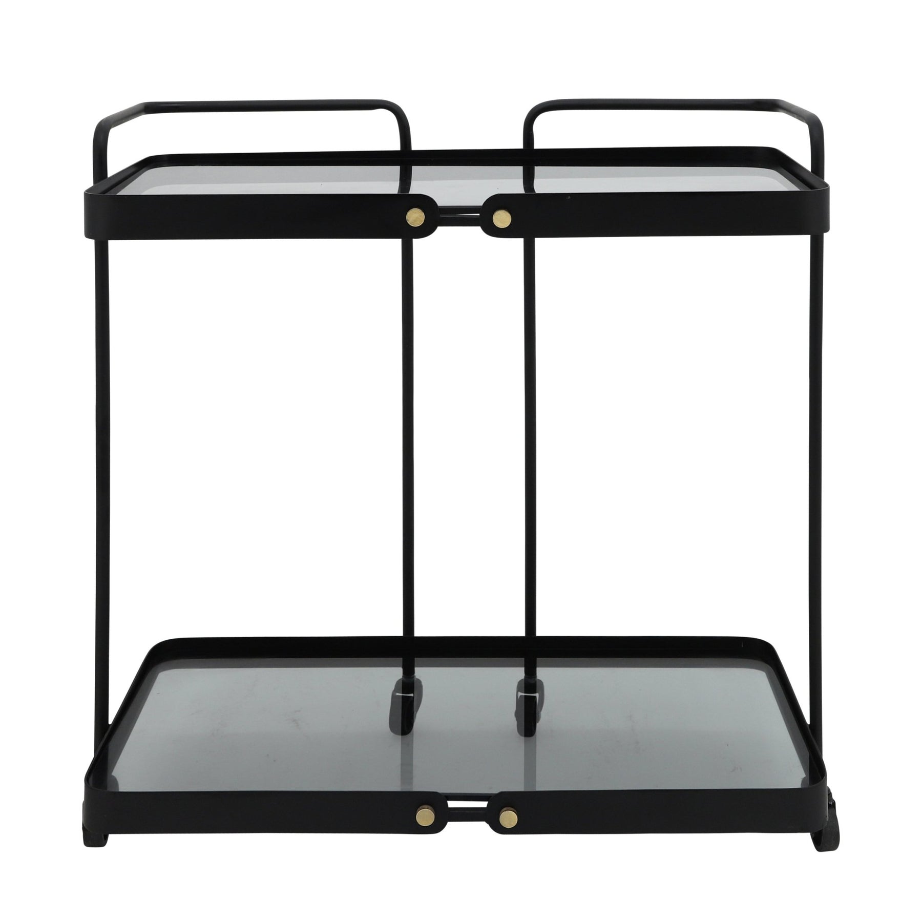 METAL, 27"H 2-LAYERED BAR CART W/ SMOKEY GLASS, BL