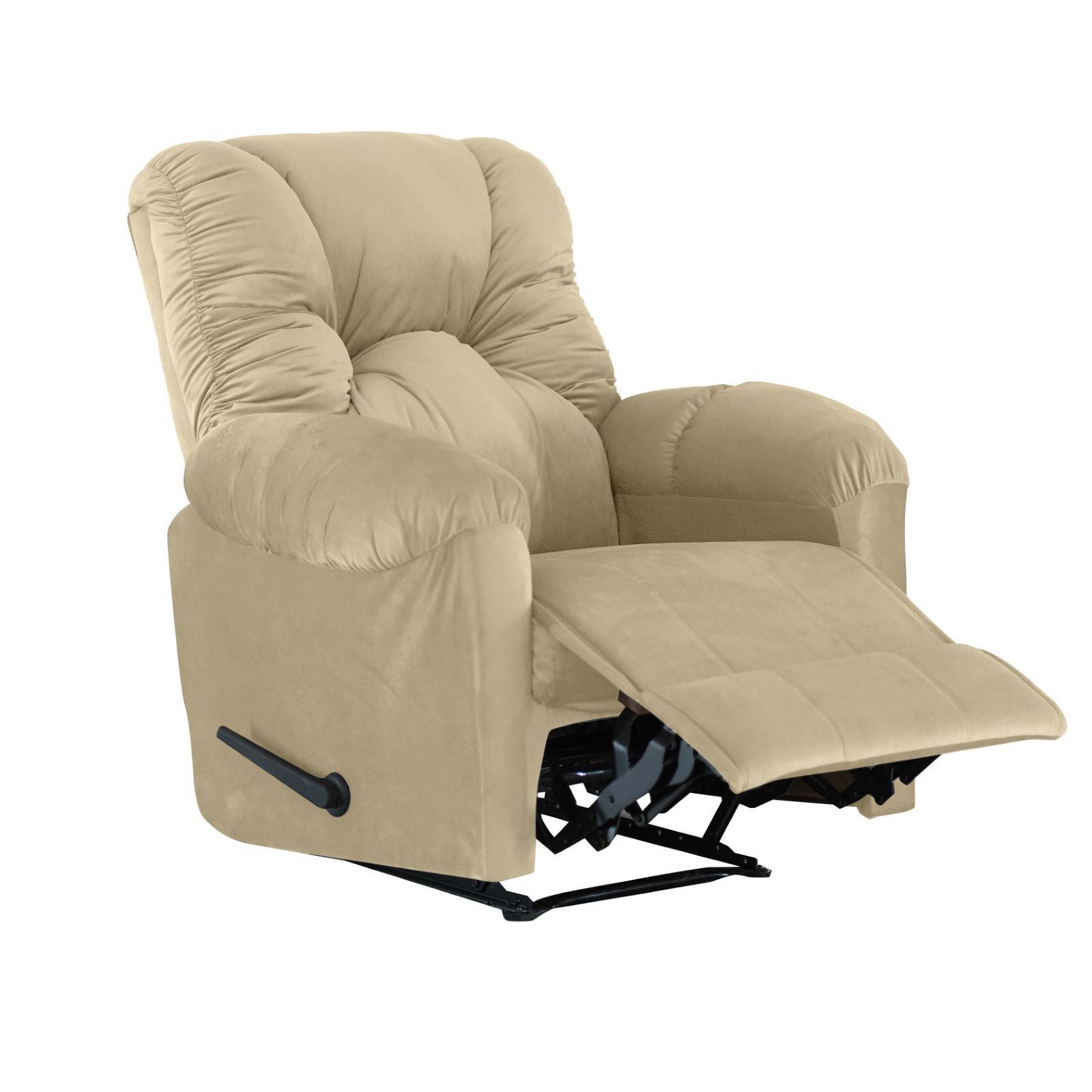 Velvet Upholstered Rocking & Rotating Recliner Chair With Bed Mode from American Polo - Light Beige