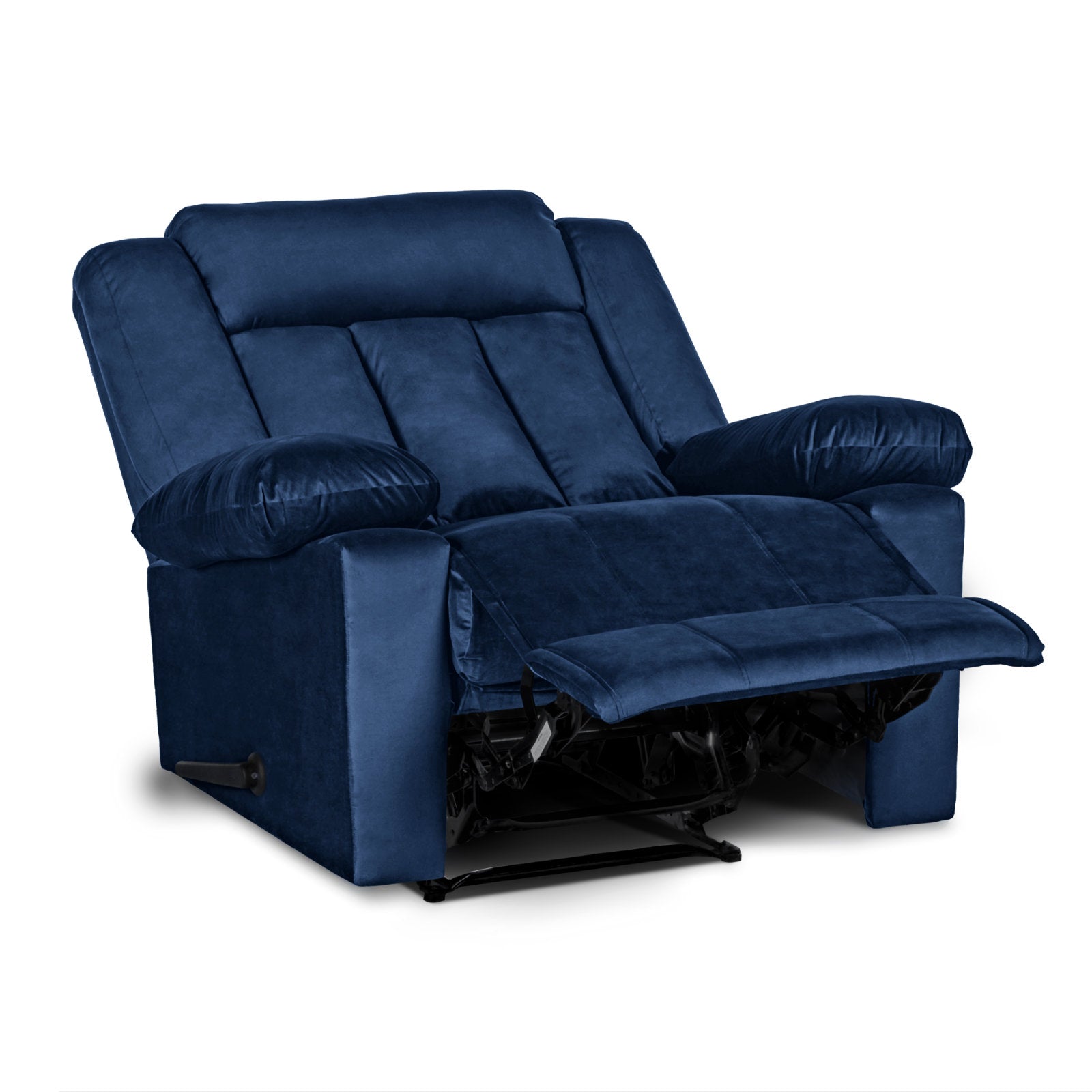 Velvet Upholstered Classic Recliner Chair With Bed Mode From In House - Dark Blue - AB05
