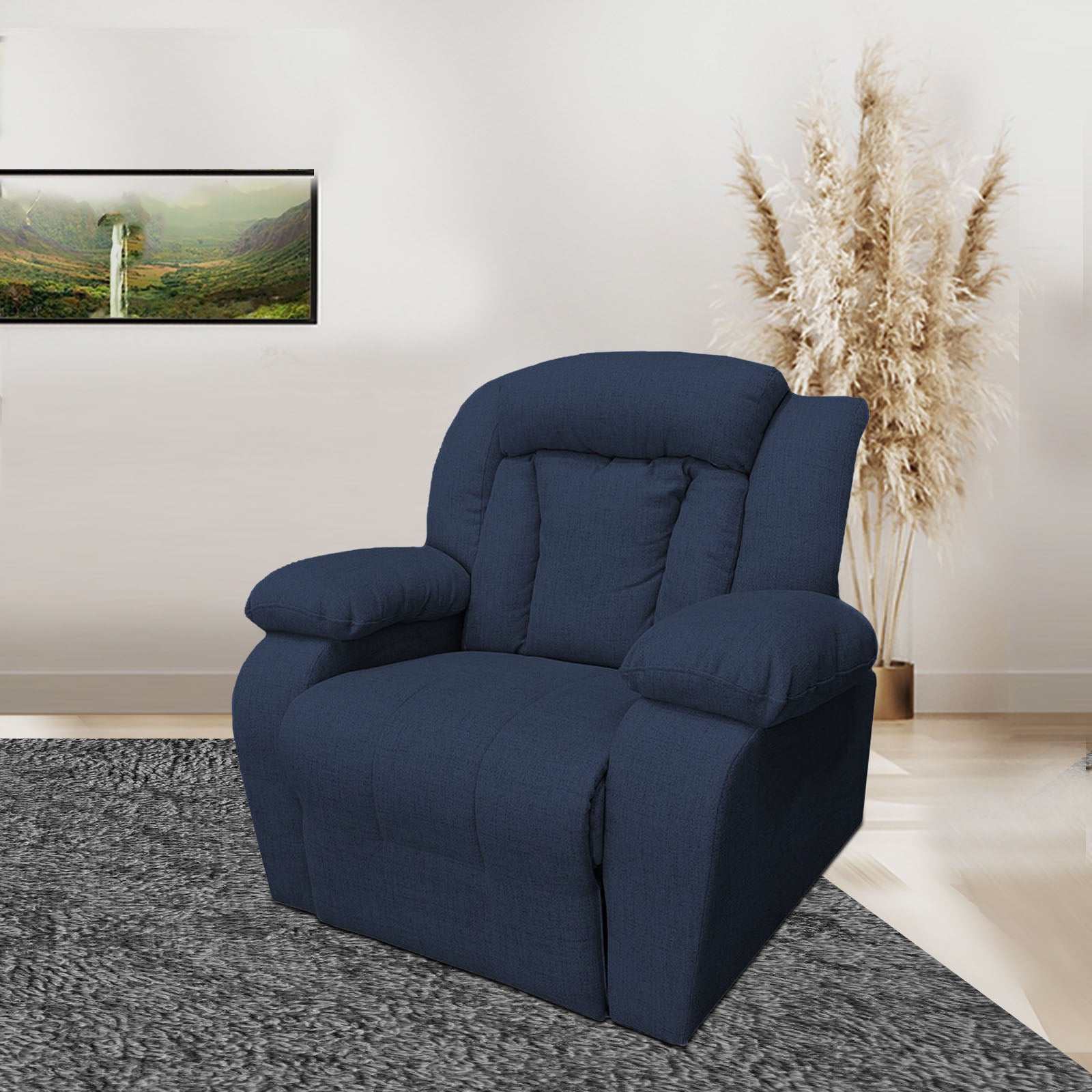 Linen Upholstered Rocking Recliner Chair With Bed Mode From In House - Navy Blue - NZ50