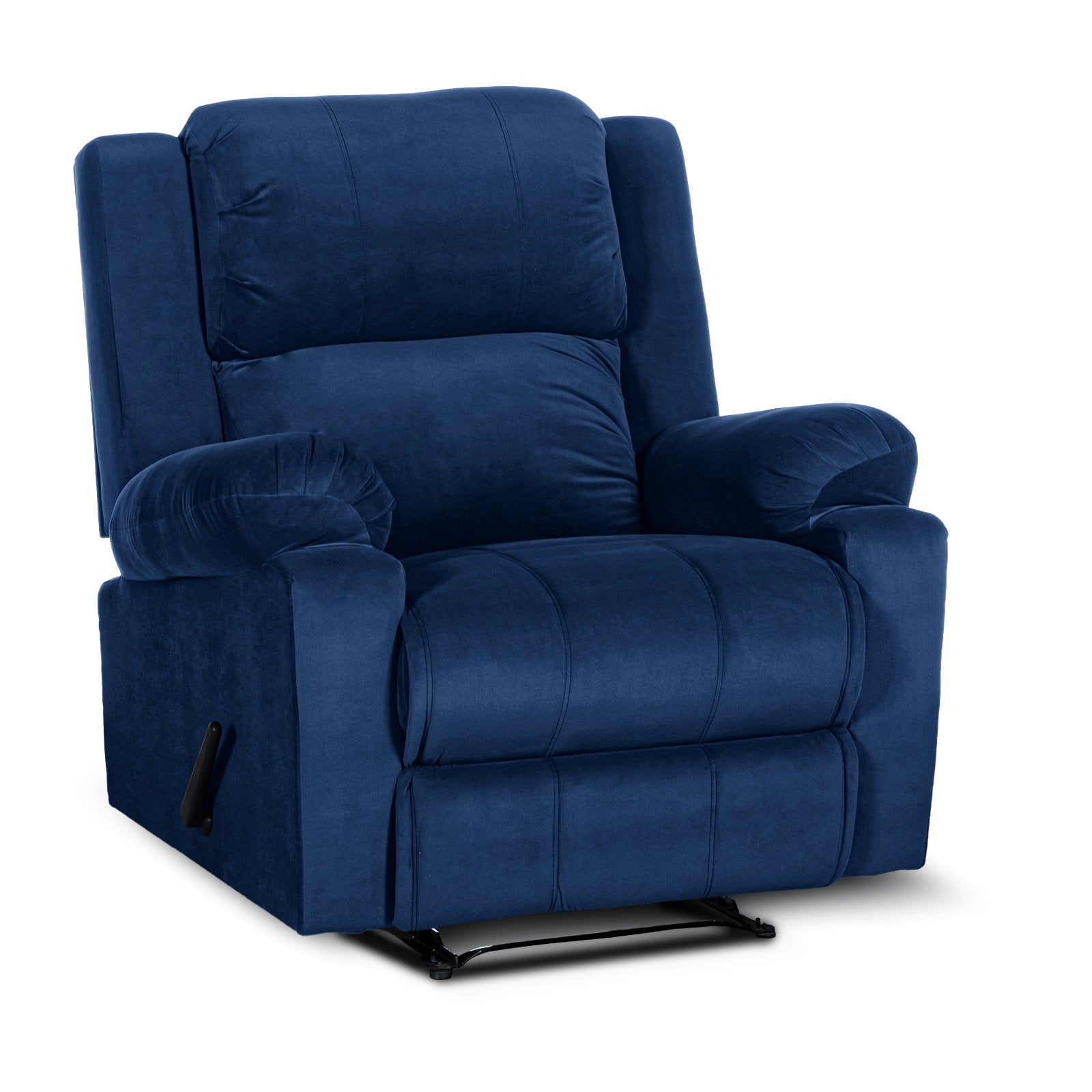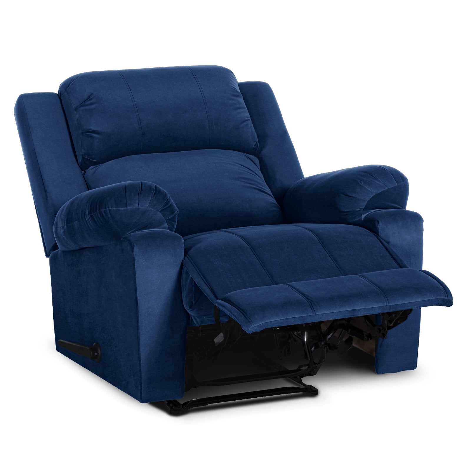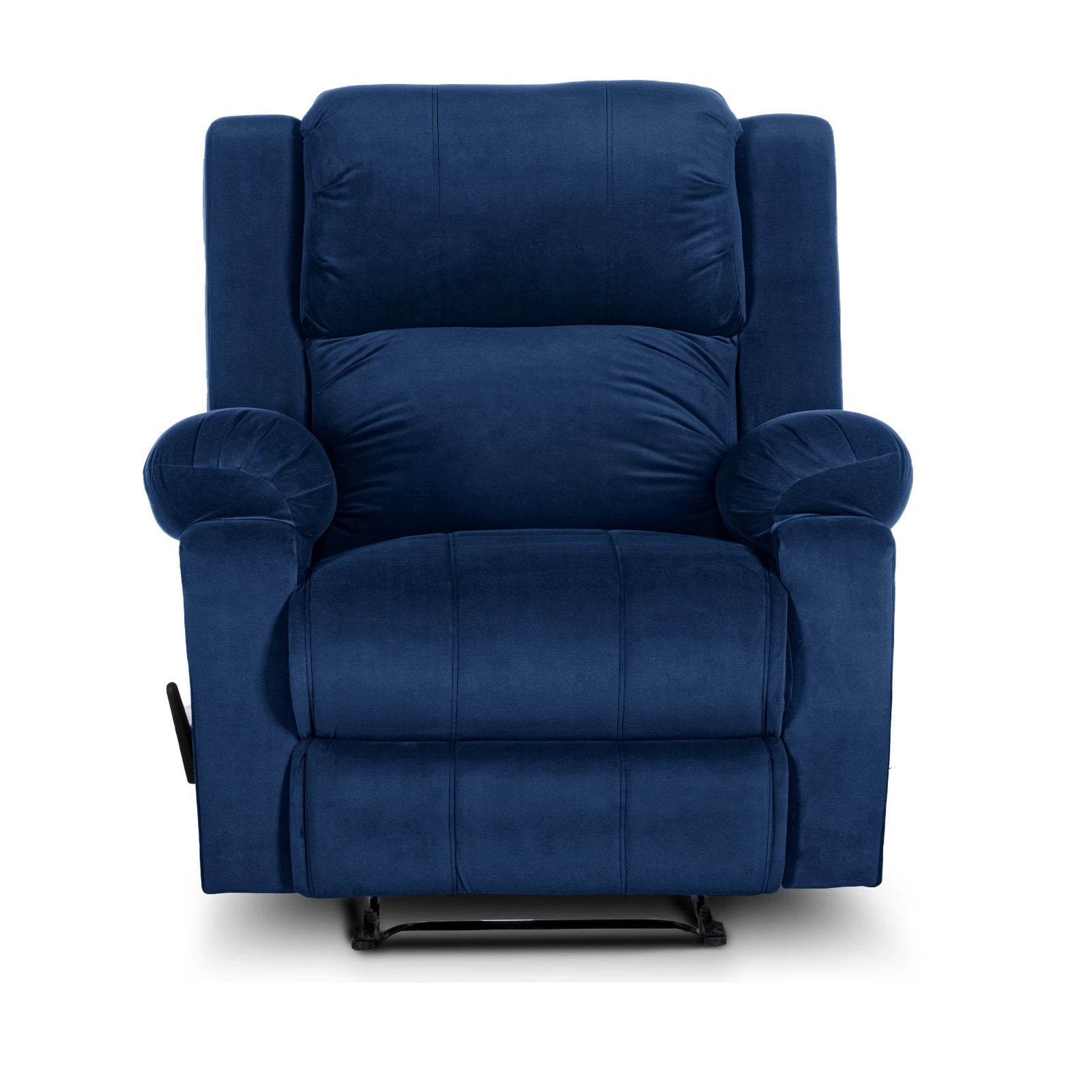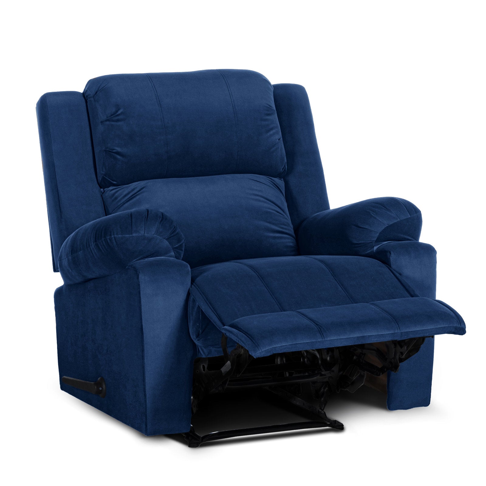 Velvet Upholstered Rocking Recliner Chair With Bed Mode From In House - Dark Blue - AB02