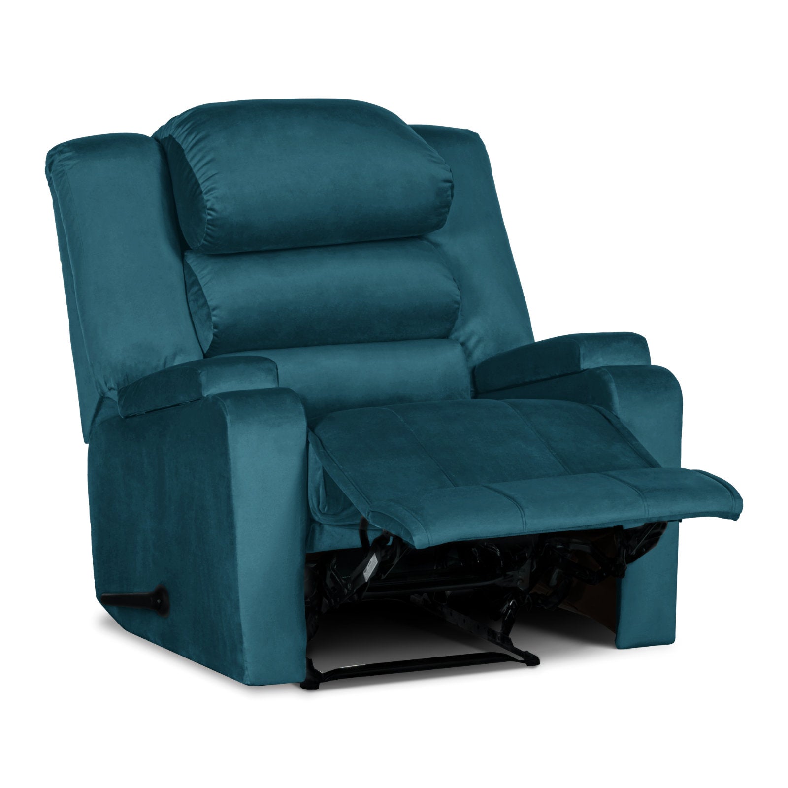 Velvet Upholstered Rocking Recliner Chair With Bed Mode From In House - Dark Turquoise - AB07