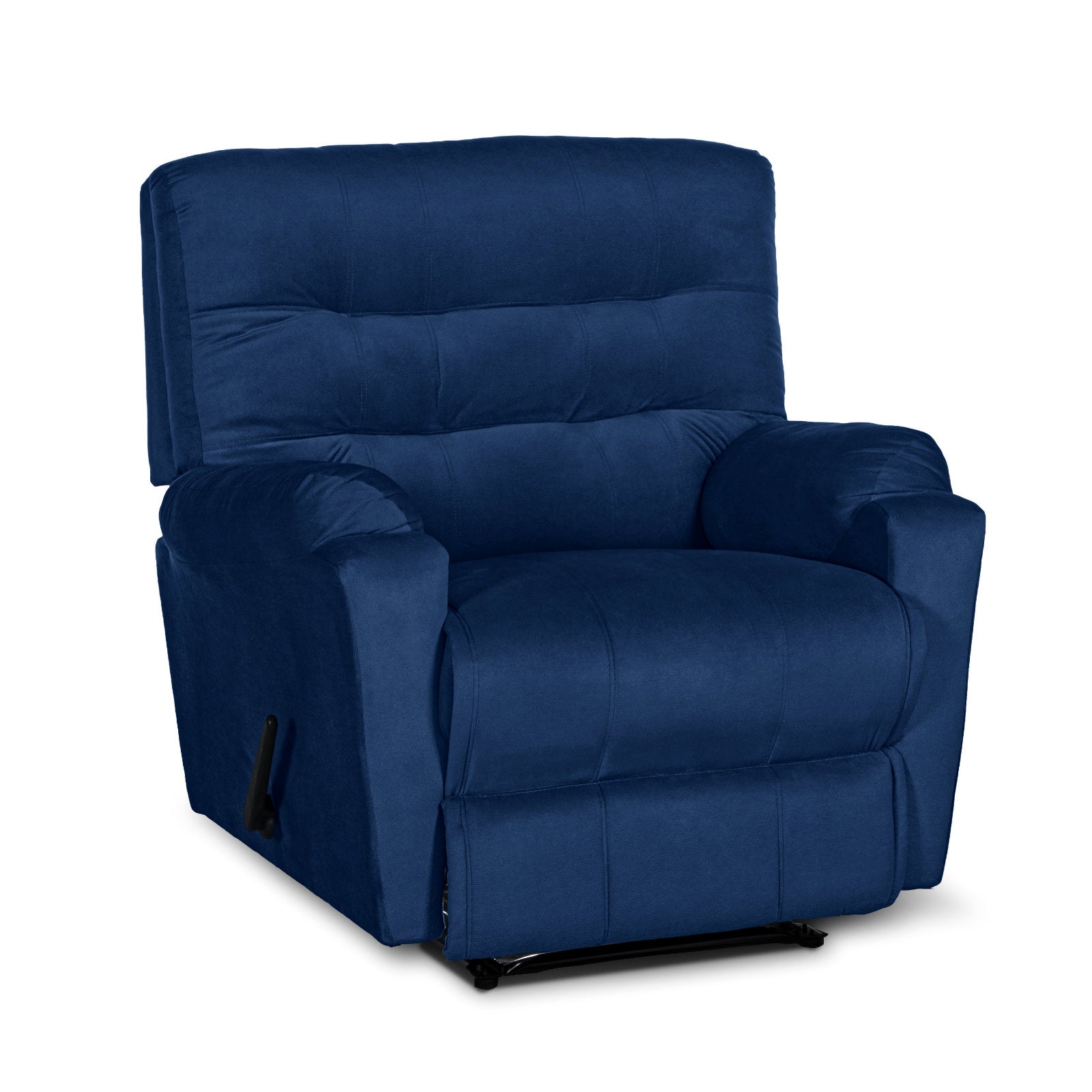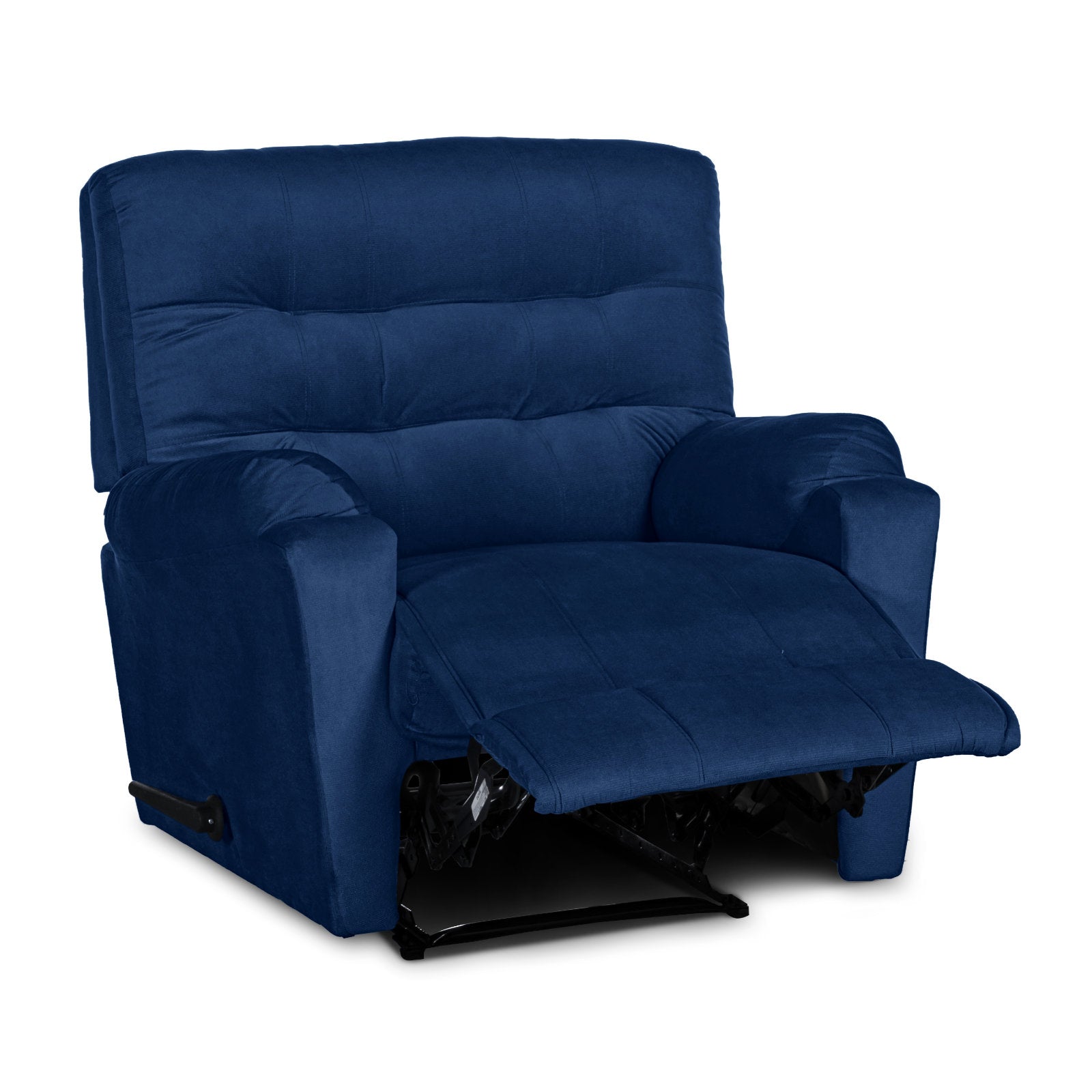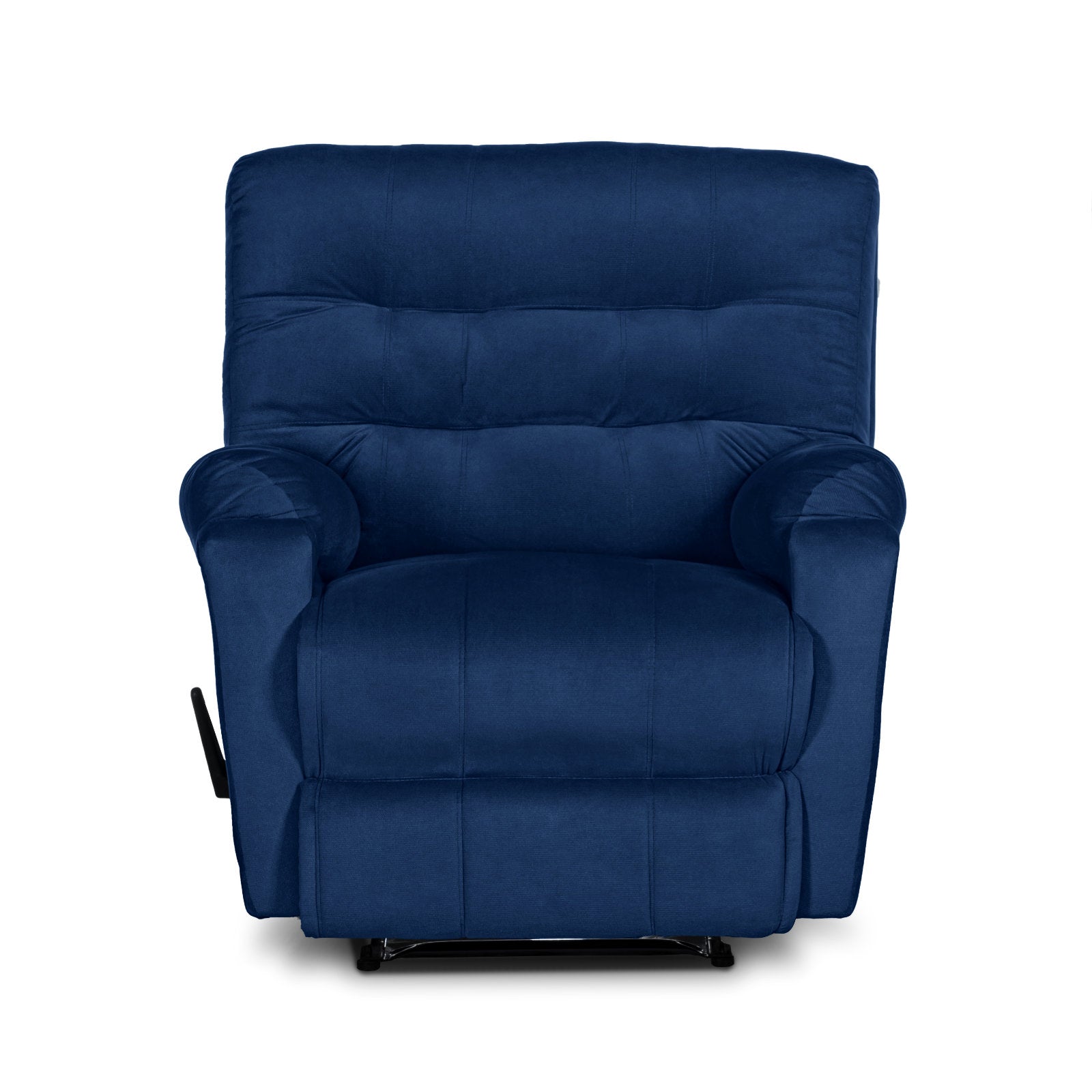 Velvet Upholstered Rocking & Rotating Recliner Chair With Bed Mode From In House - Dark Blue - AB03