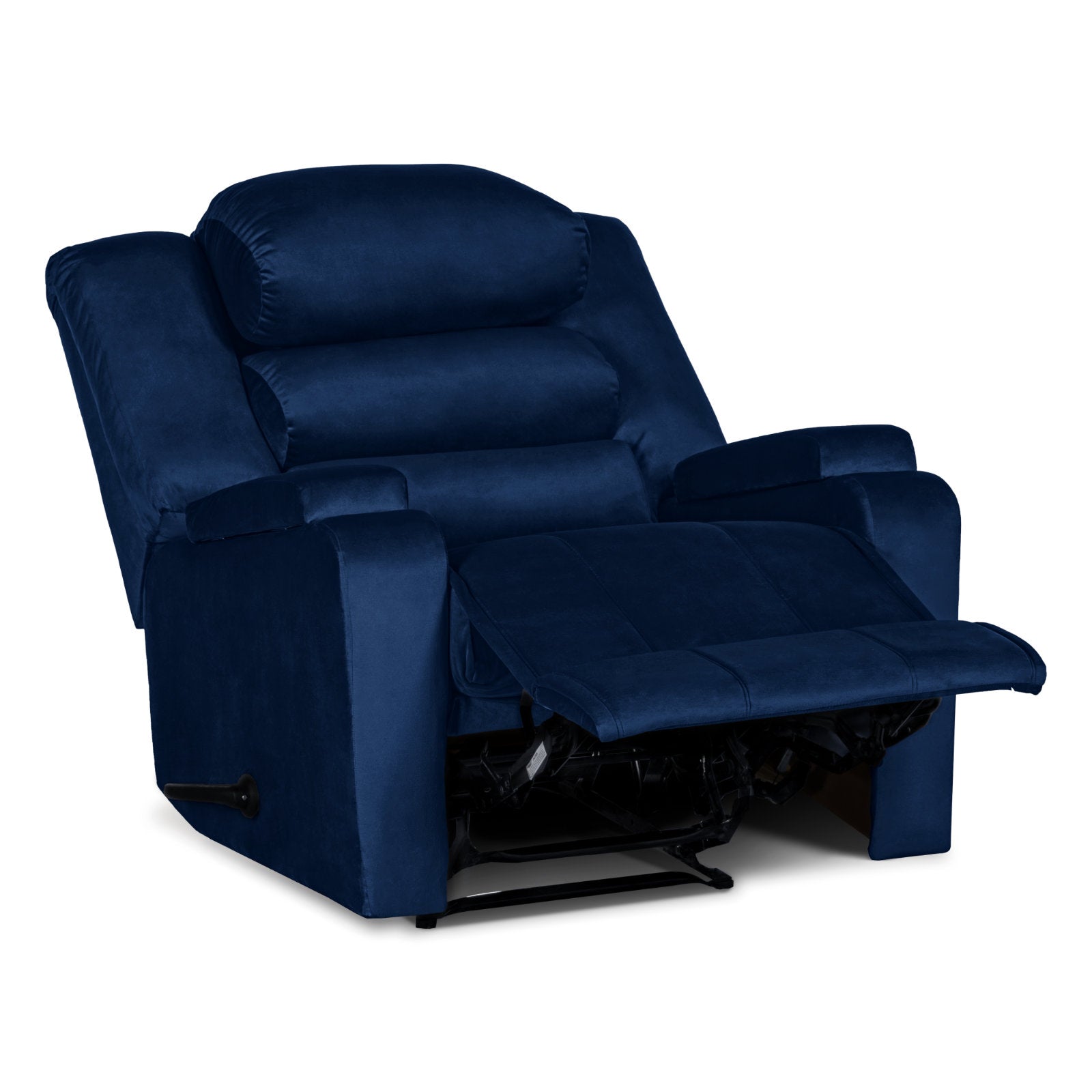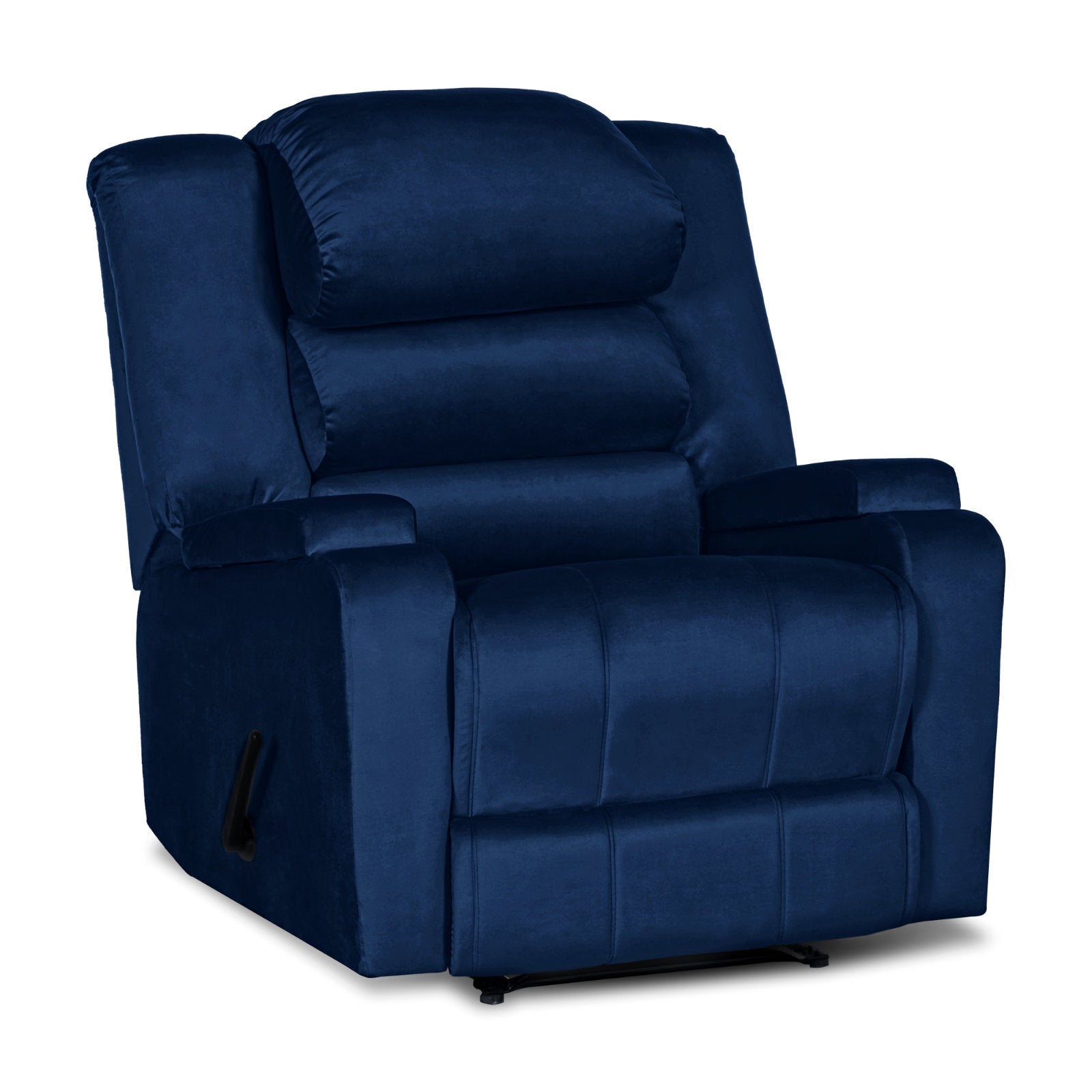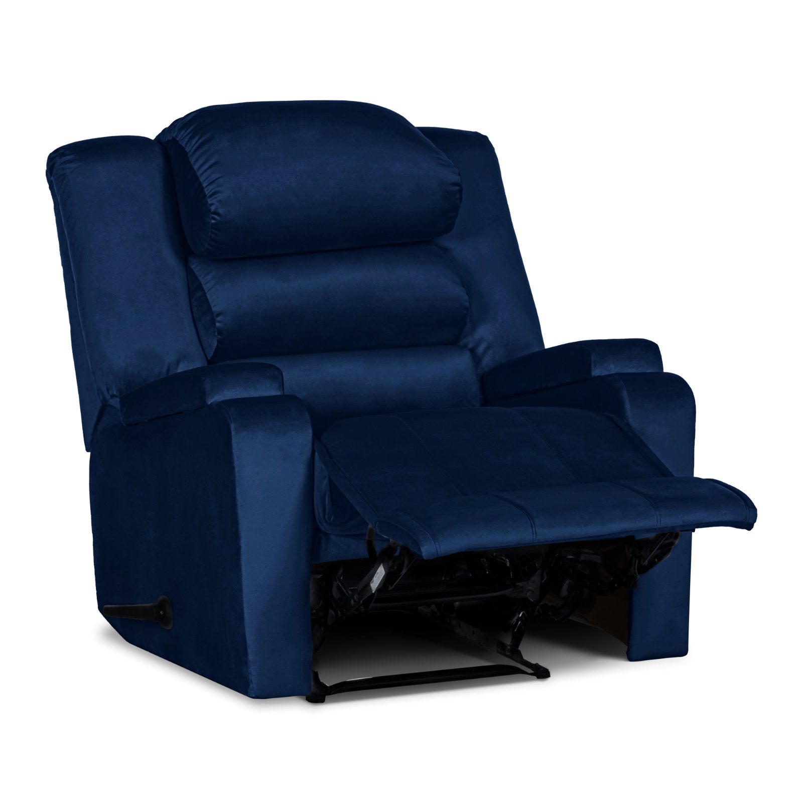Velvet Upholstered Rocking & Rotating Recliner Chair With Bed Mode From In House - Dark Blue - AB07
