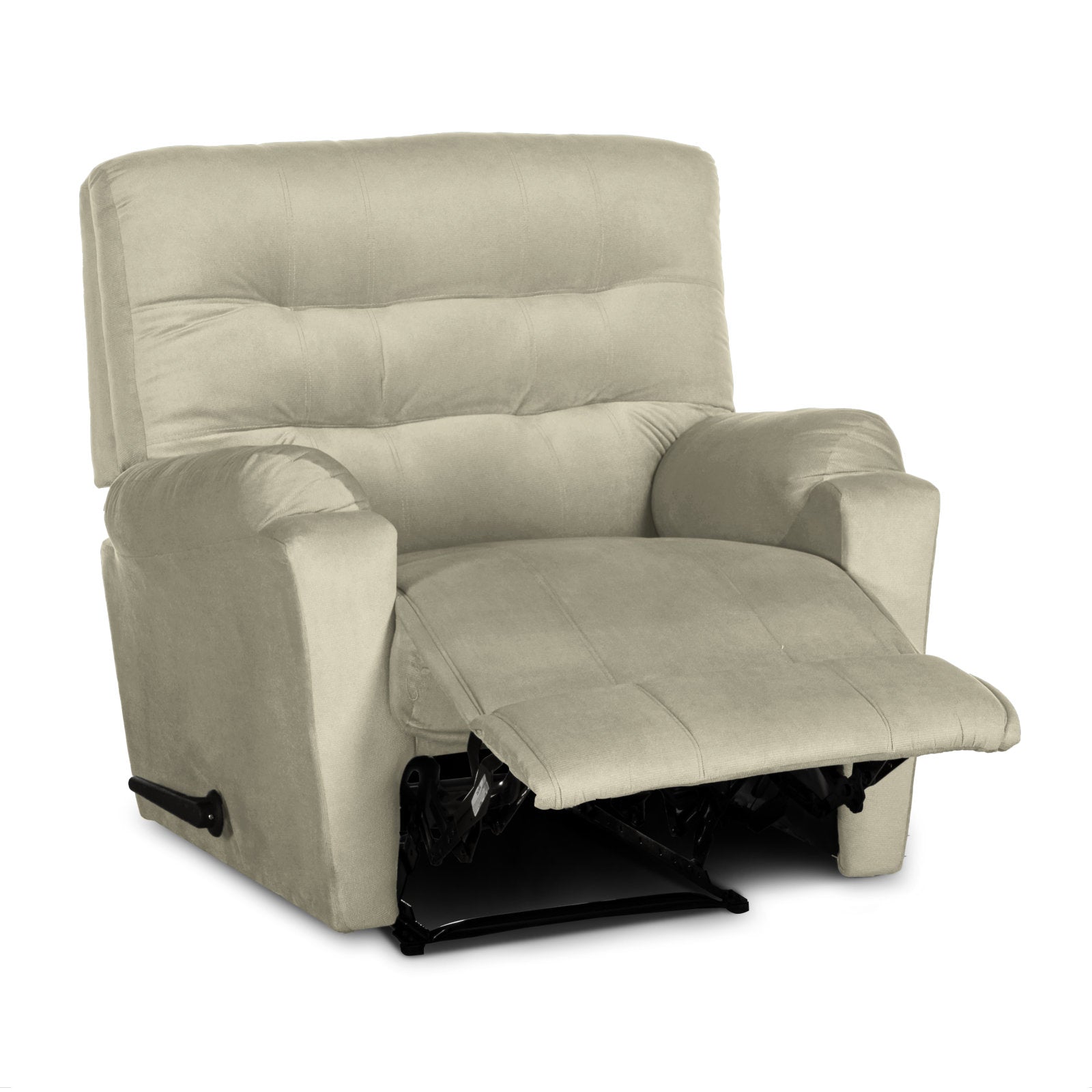 Velvet Upholstered Rocking & Rotating Recliner Chair With Bed Mode From In House - Light Beige - AB03