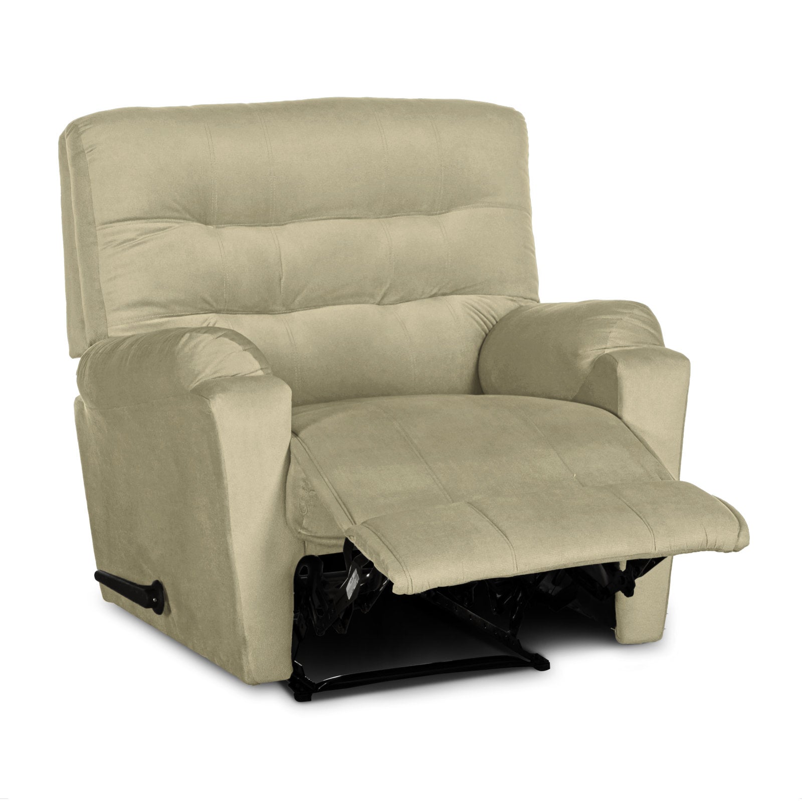 Velvet Upholstered Rocking & Rotating Recliner Chair With Bed Mode From In House - Dark Ivory - AB03