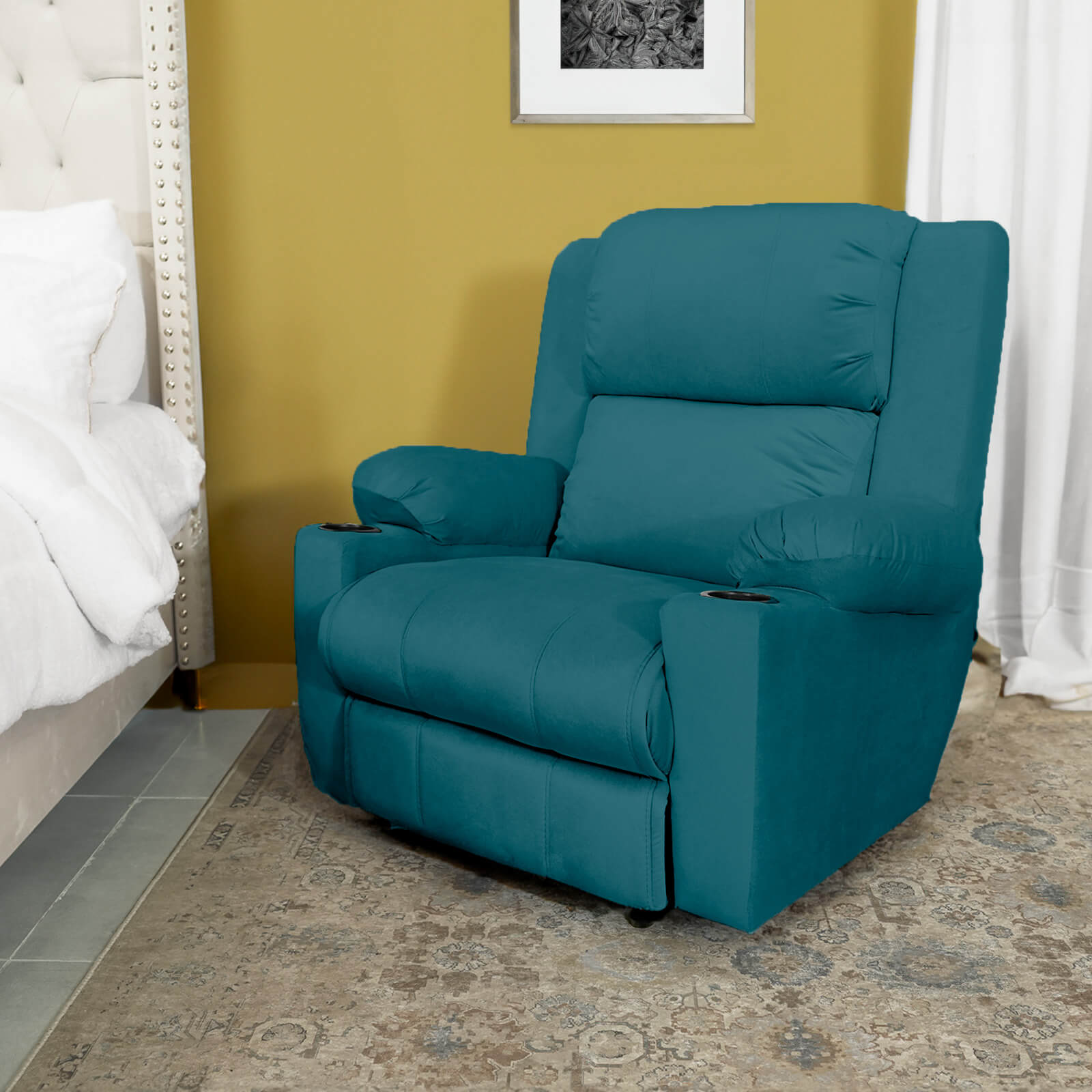 Velvet Classic Cinematic Recliner Chair with Cups Holder - Dark Turquoise - Lazy Troy