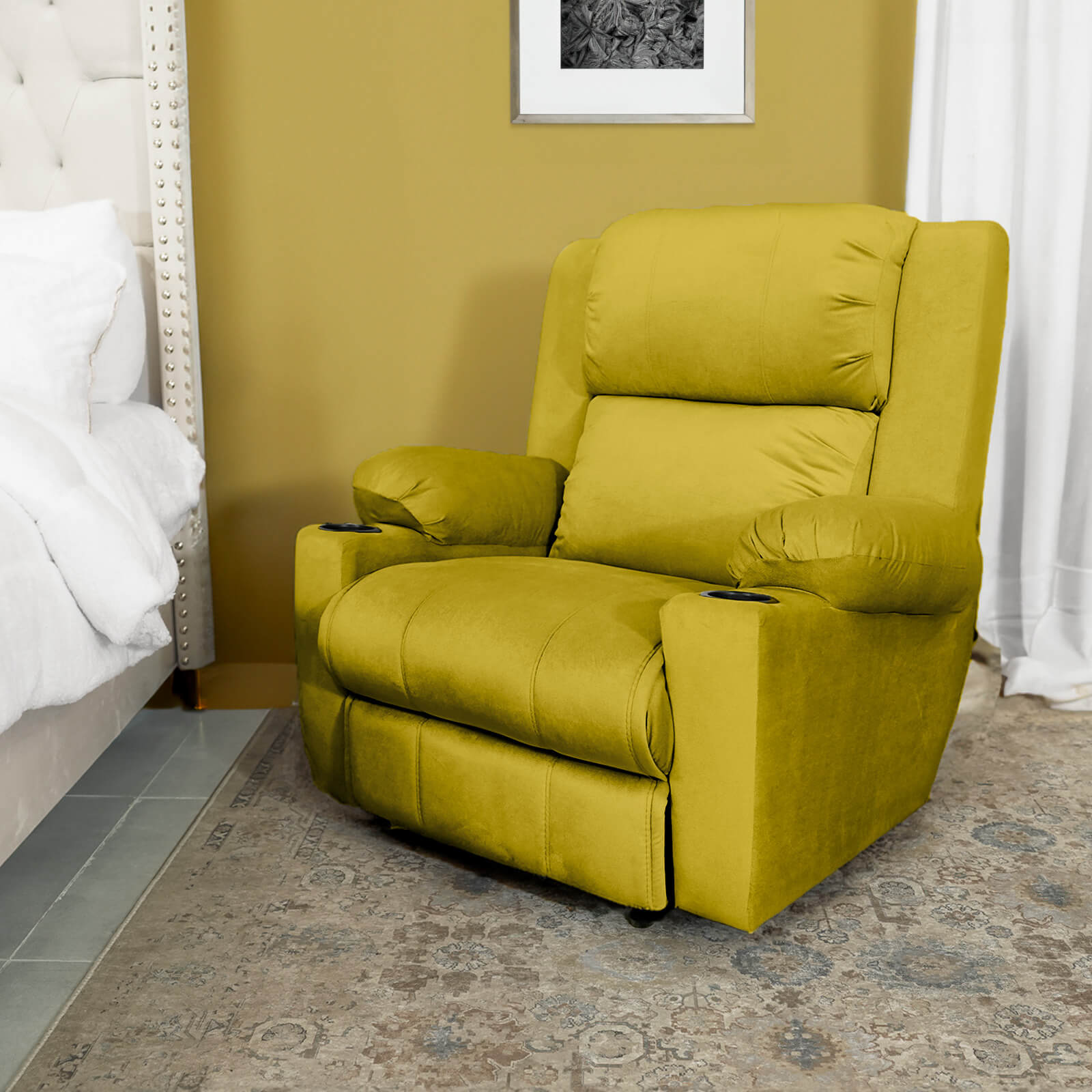 Velvet Classic Cinematic Recliner Chair with Cups Holder - Gold - Lazy Troy