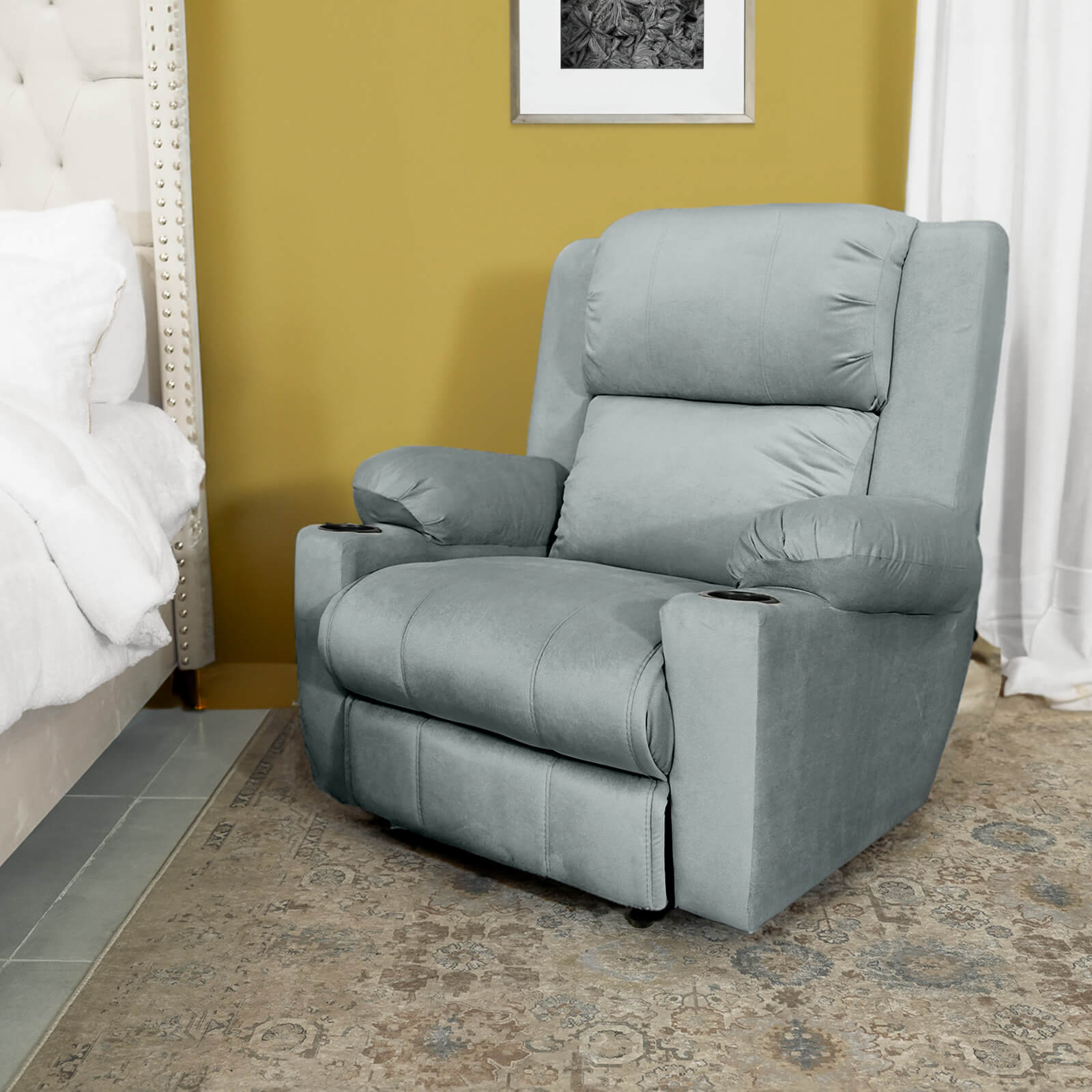 Velvet Classic Cinematic Recliner Chair with Cups Holder - Grey - Lazy Troy