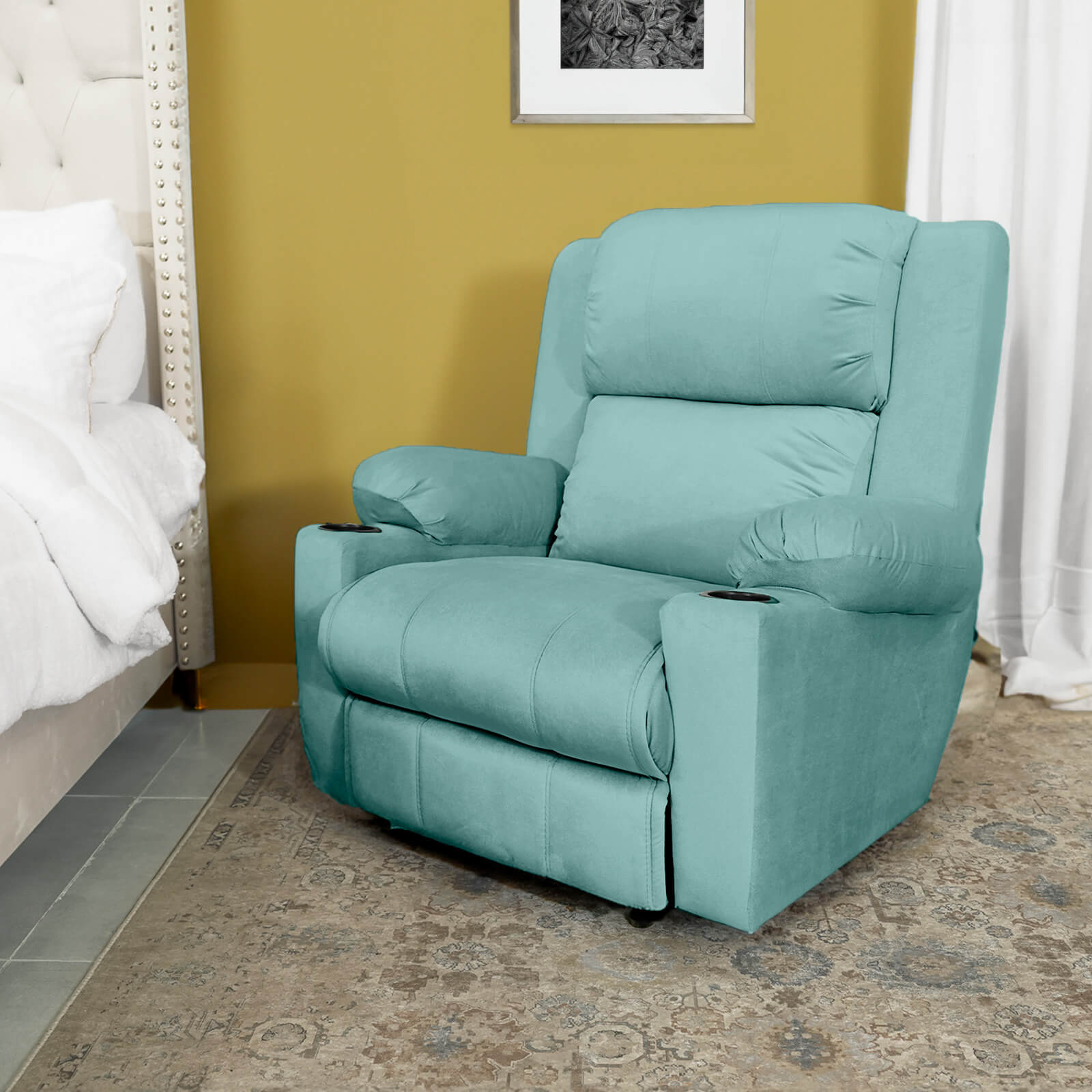 Velvet Classic Cinematic Recliner Chair with Cups Holder - Light Turquoise - Lazy Troy