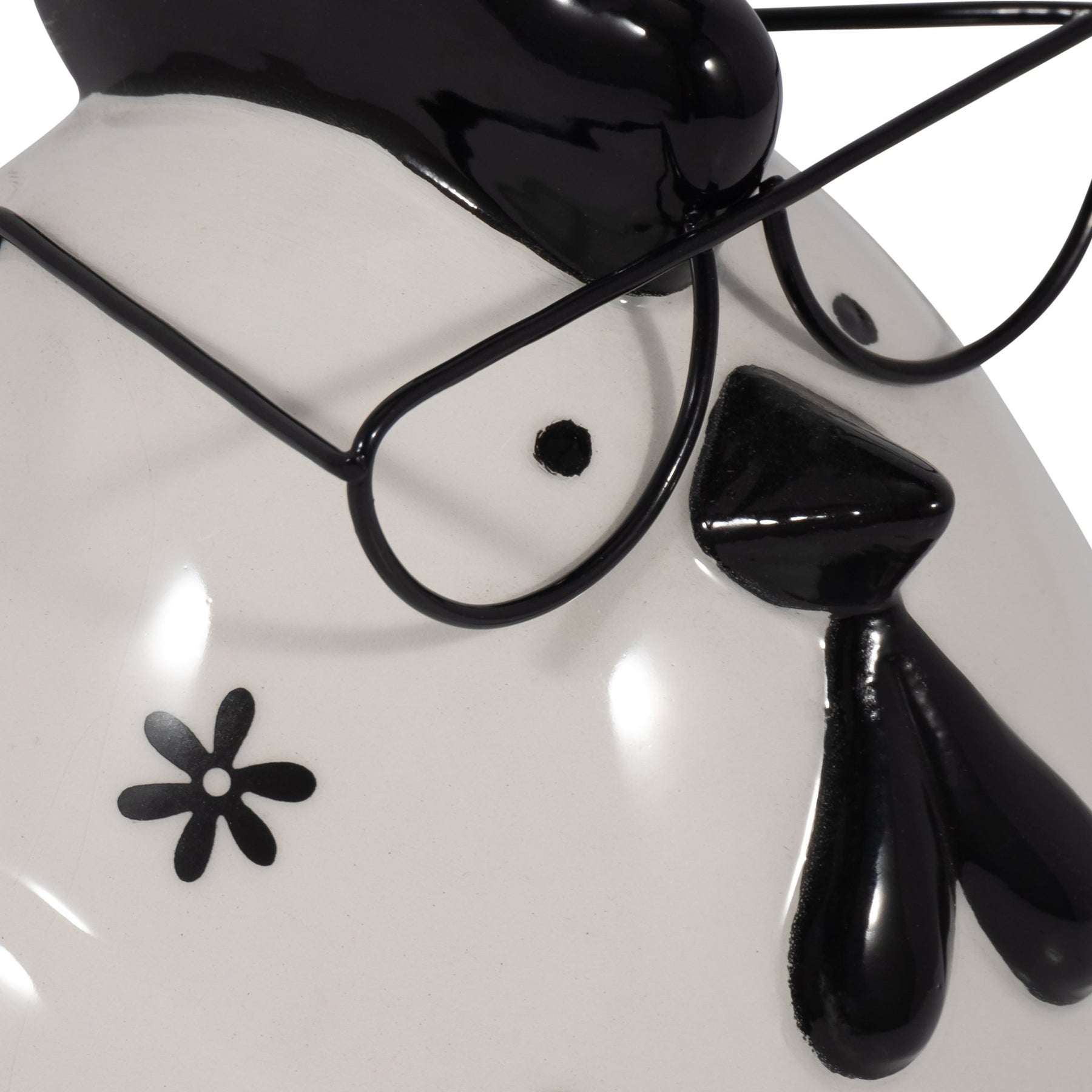 CER, 7" CHUBBY ROOSTER WITH GLASSES, BLACK/WHITE