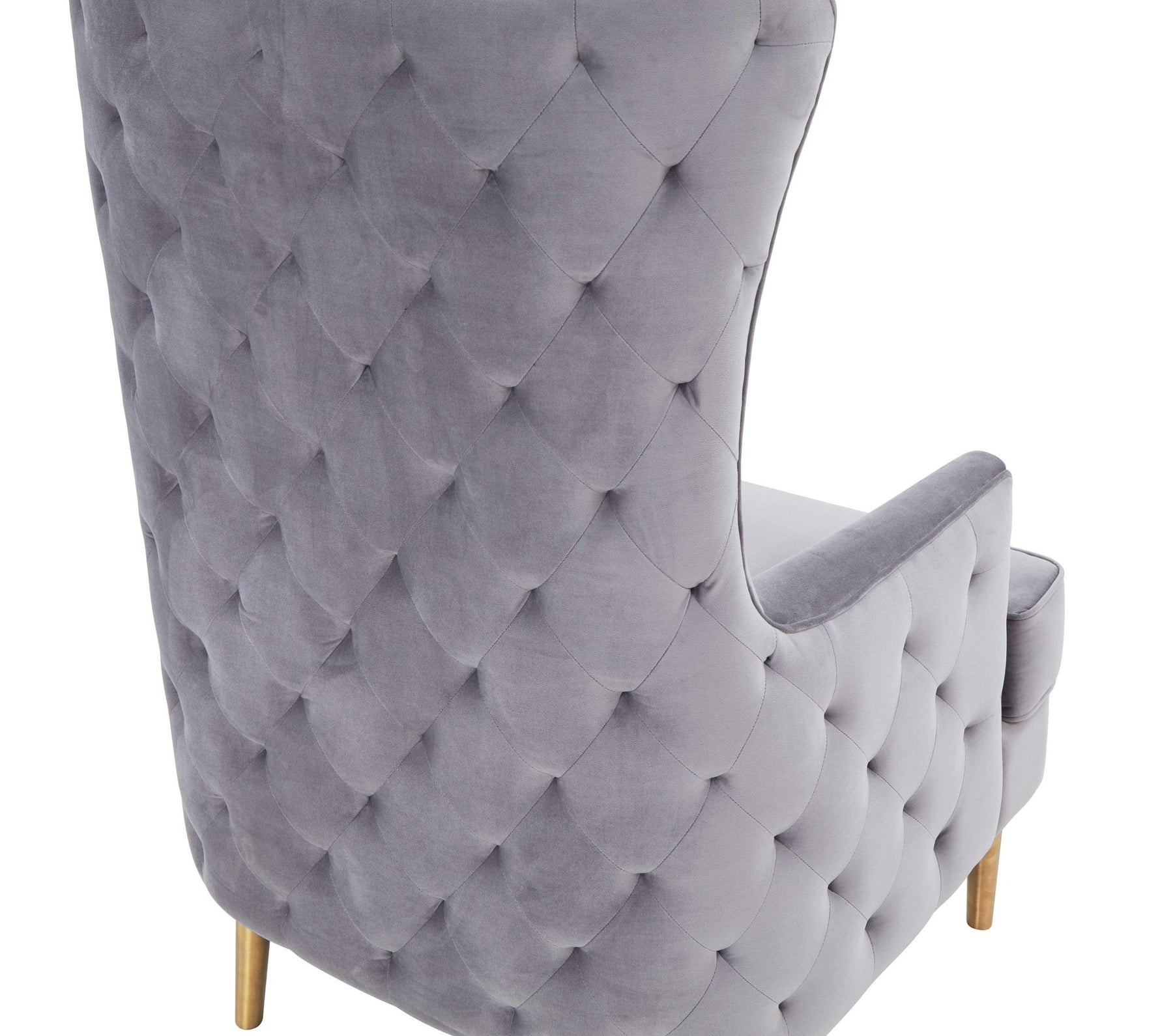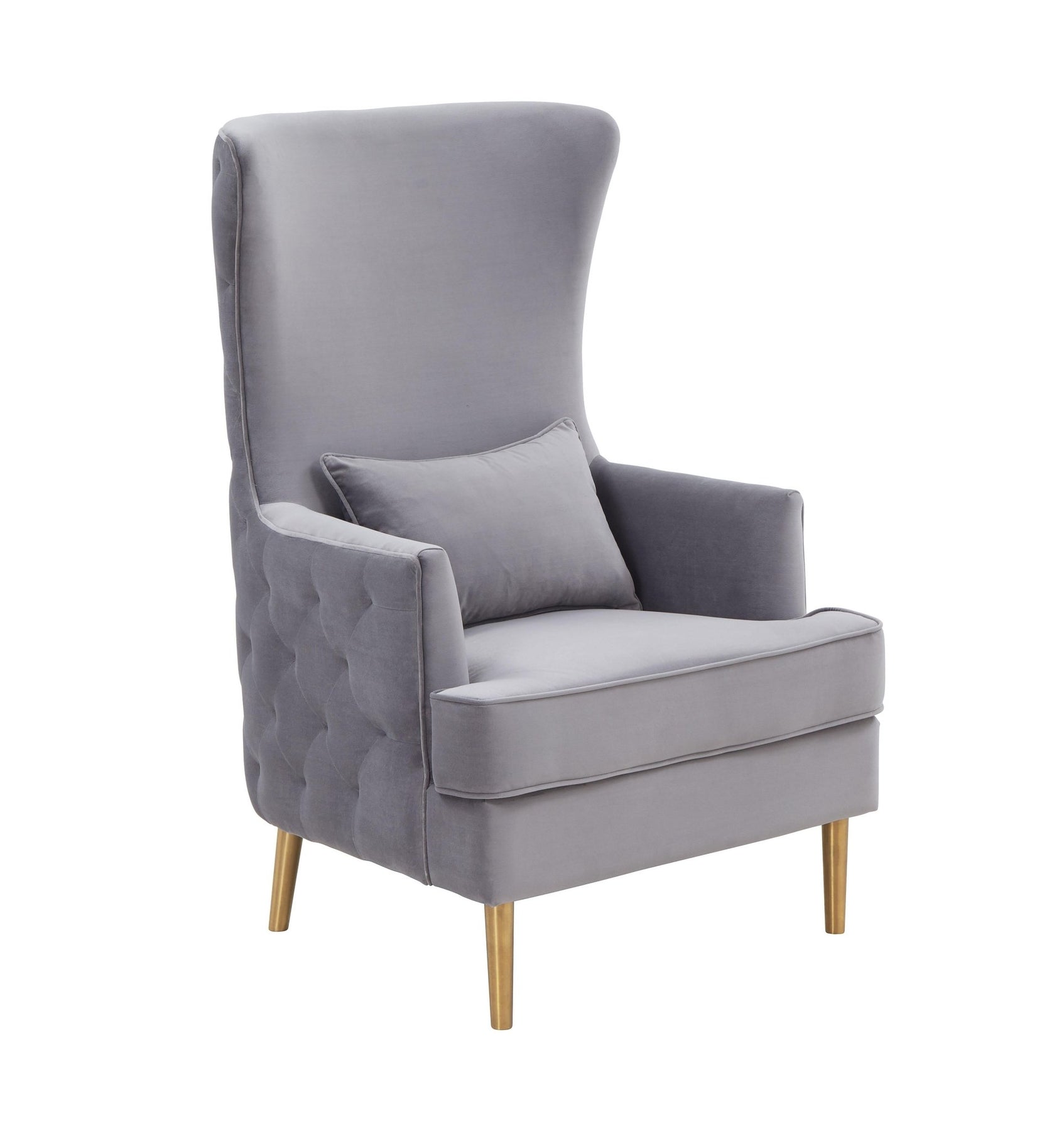 Boasting a high back, rich upholstery and diamond button tufting, the Alina chair adds flair to any room with an authoritative presence. Designed in collaboration by Inspire Me! Home Decor and TOV, this impressive wingback chair is available in multiple popular colors and complemented by brushed gold legs.