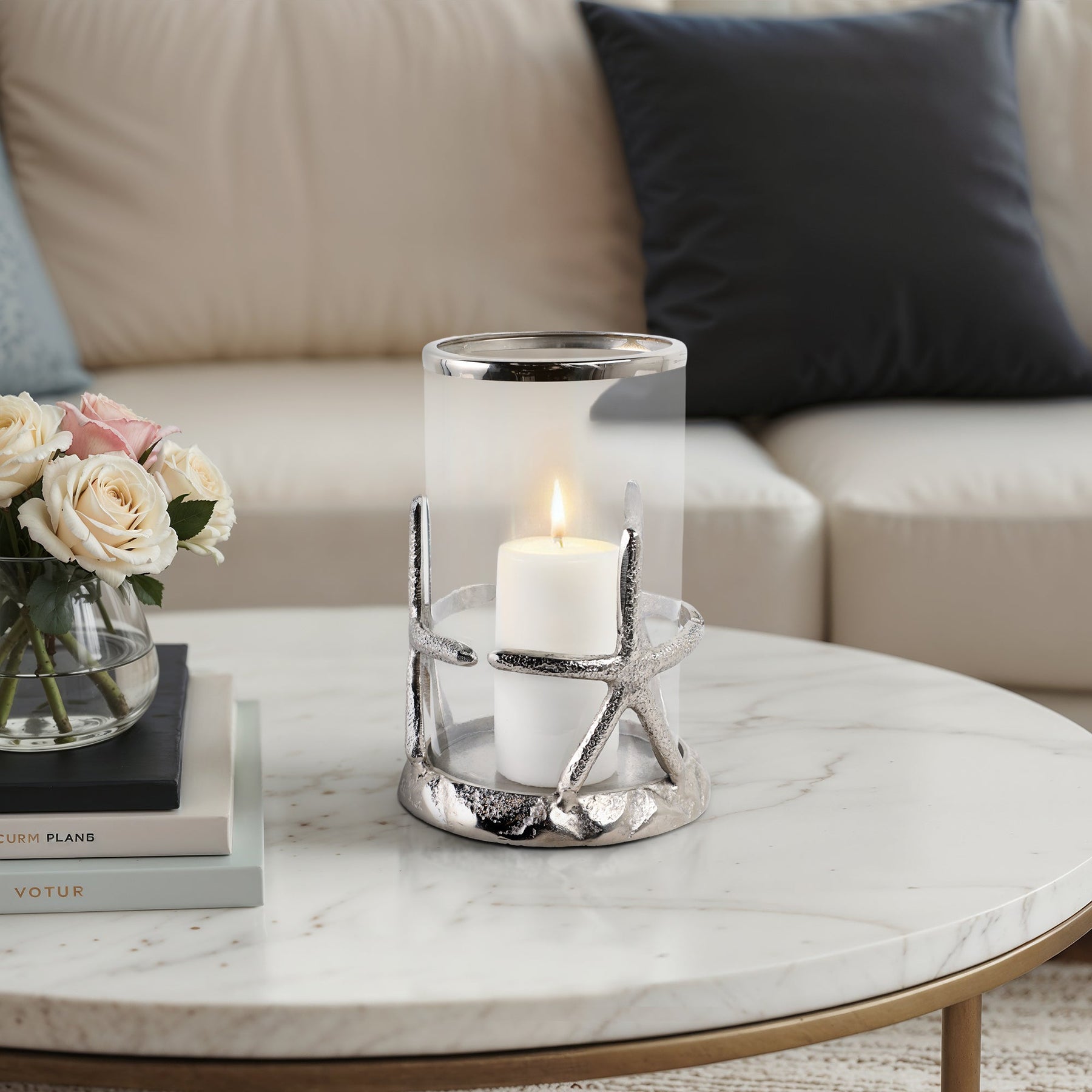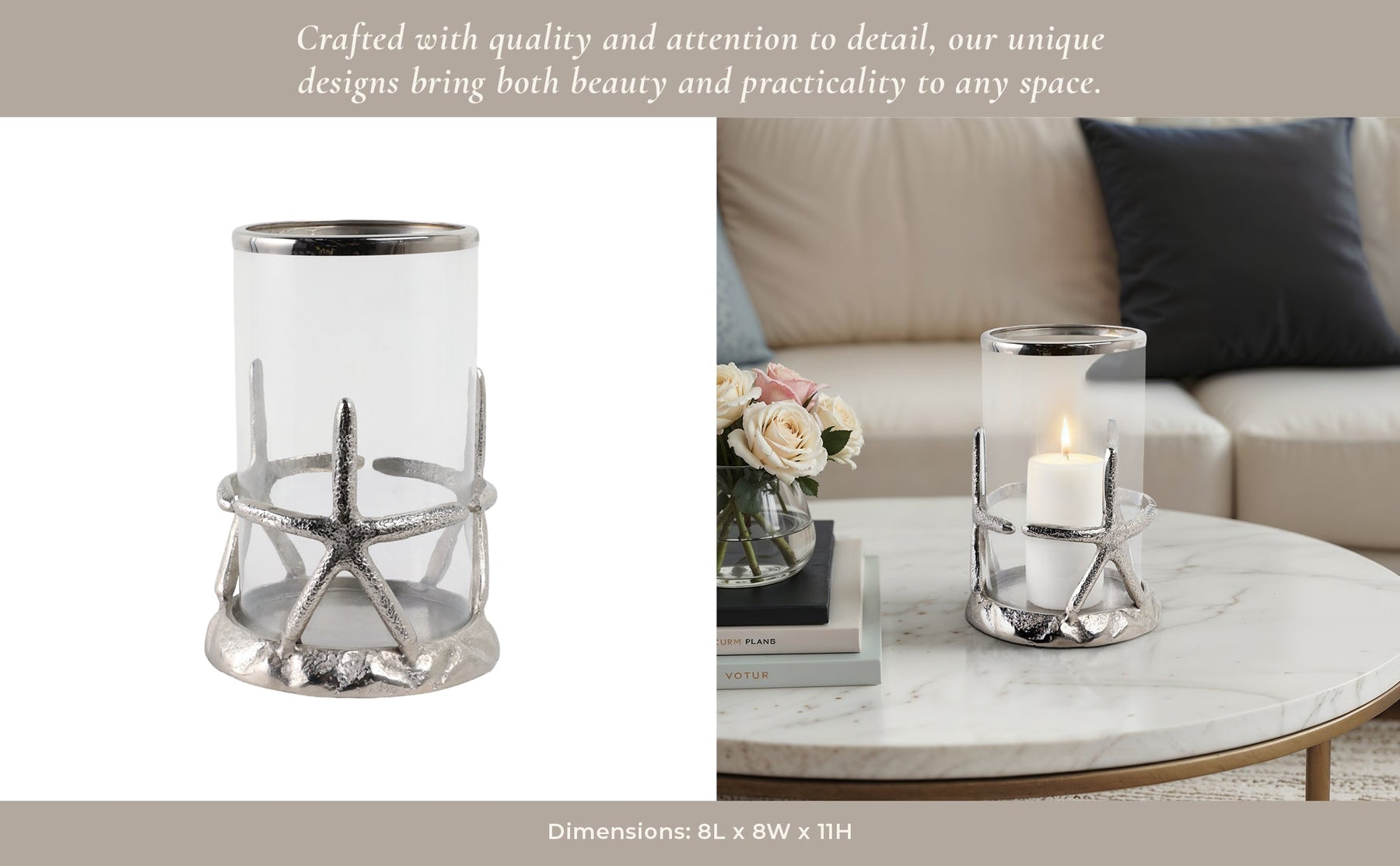 11x8" Starfish Hurricane, Silver - Al Rugaib Furniture