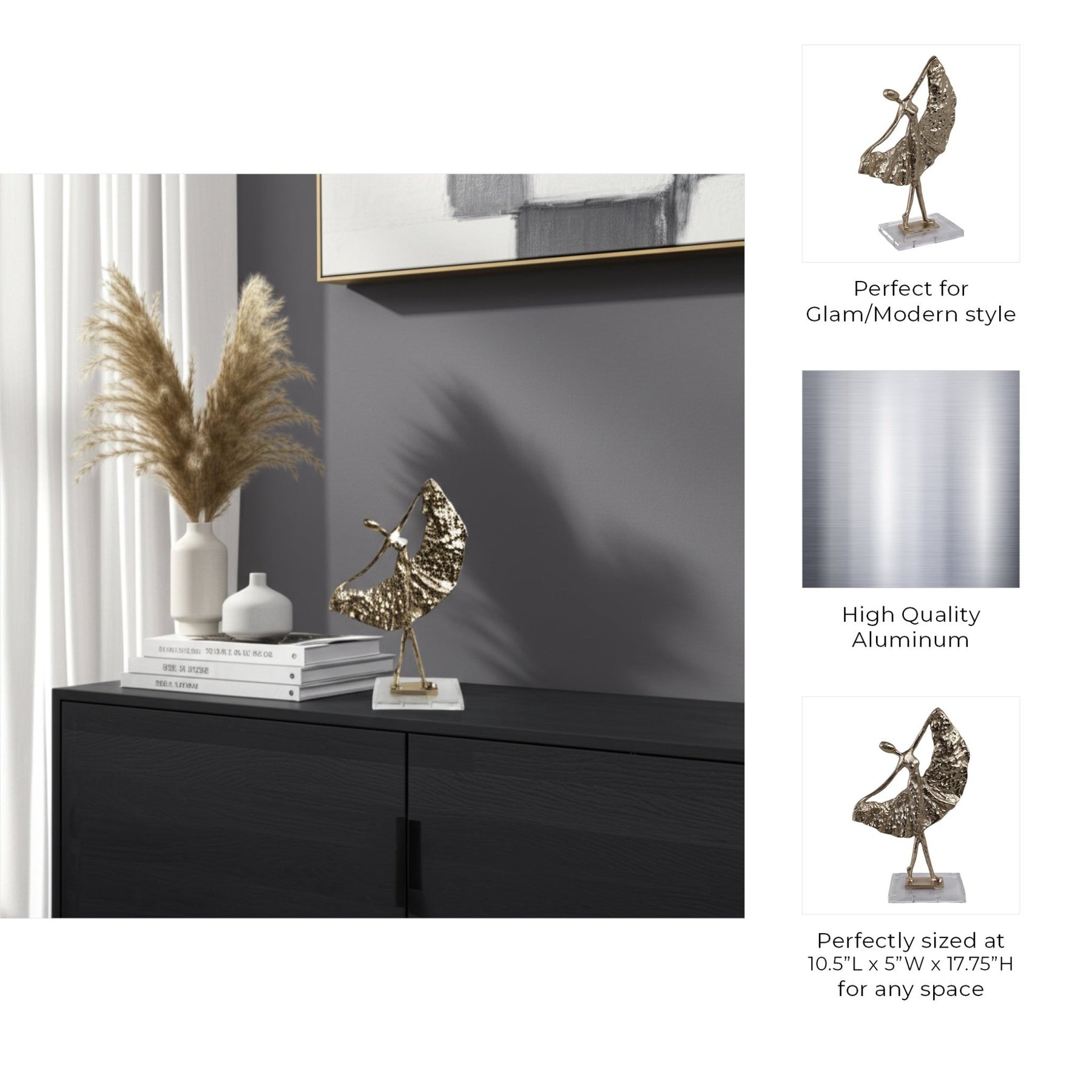 18" Covington Dancer Statuary, Gold - Al Rugaib Furniture