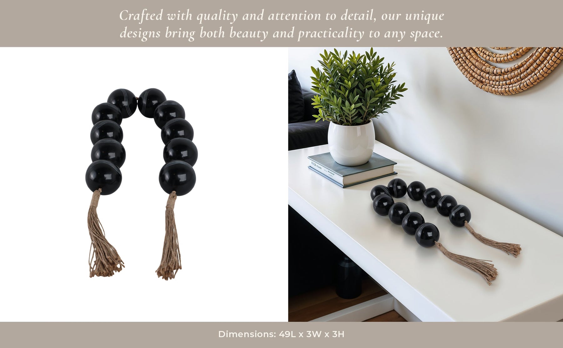49x3" Carved Bead Garland, Black - Al Rugaib Furniture