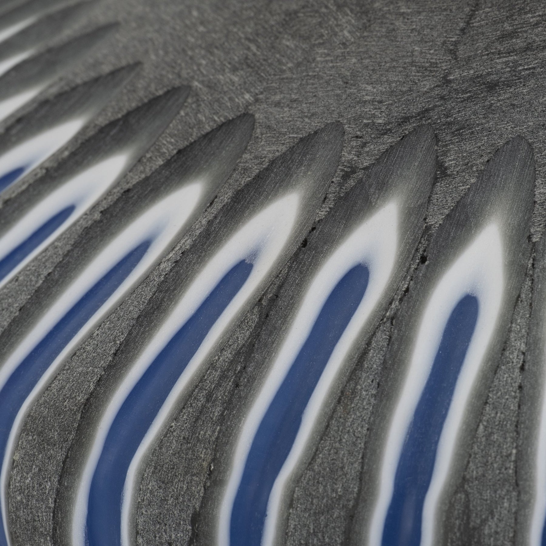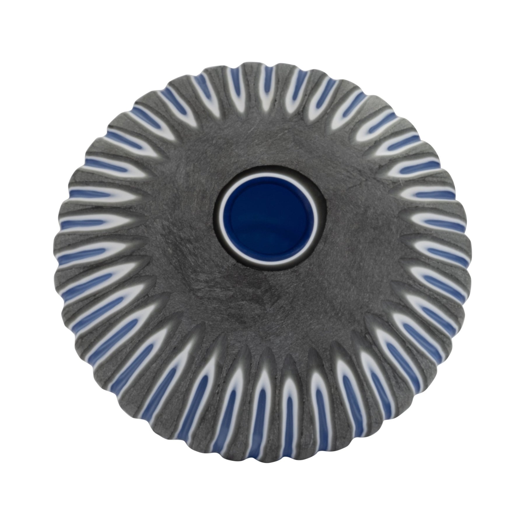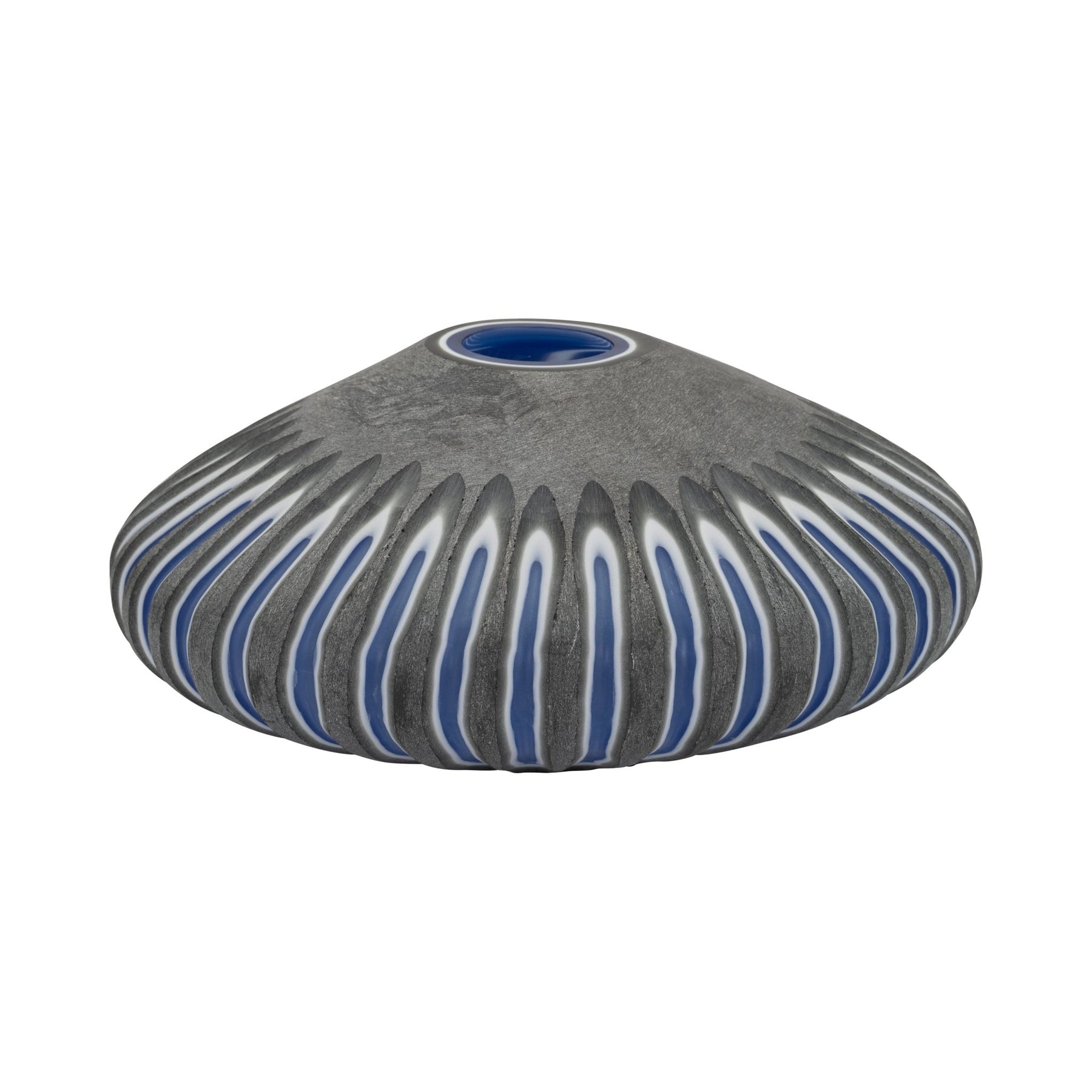 GLASS, 7" RIDGED VASE, BLUE/GRAY - Al Rugaib Furniture