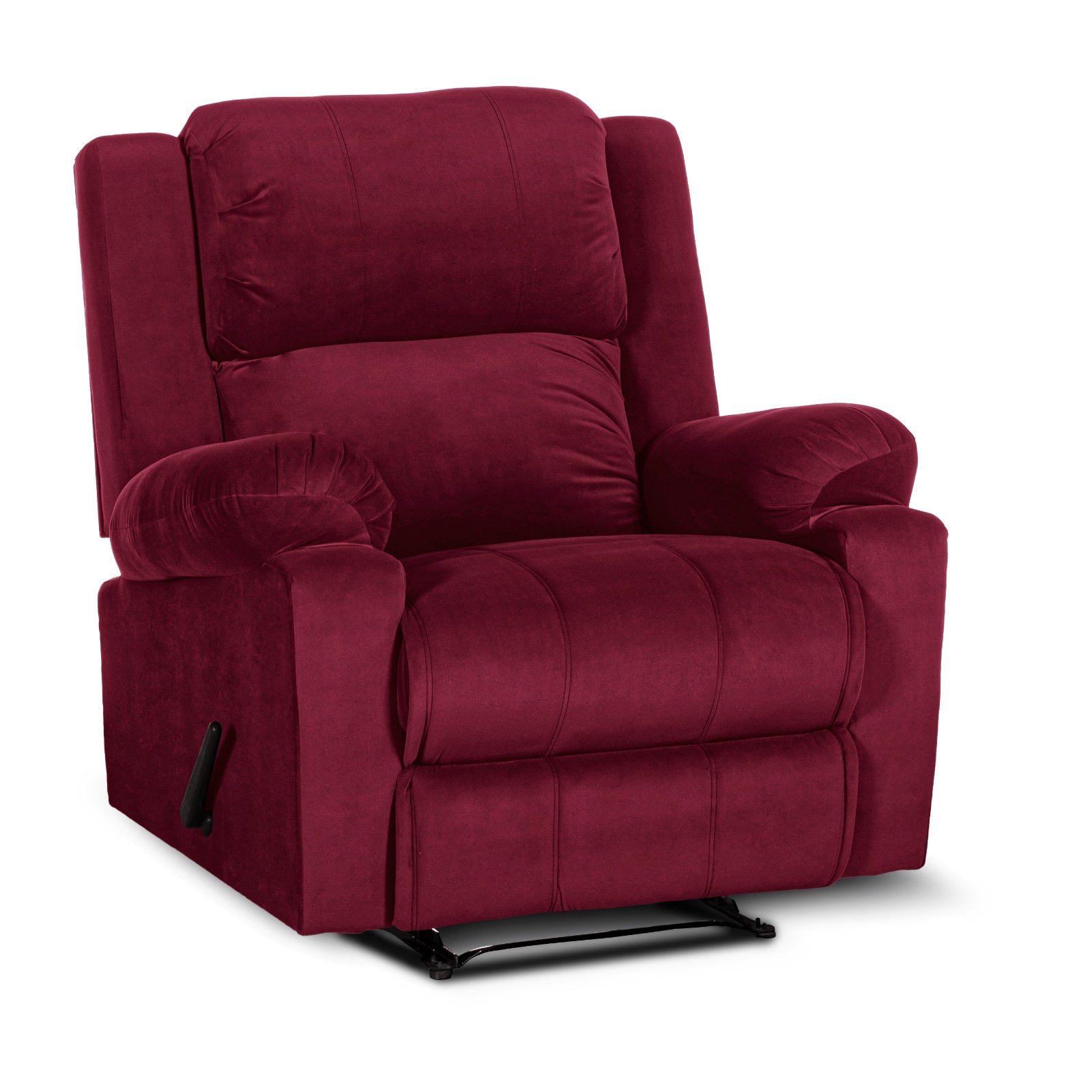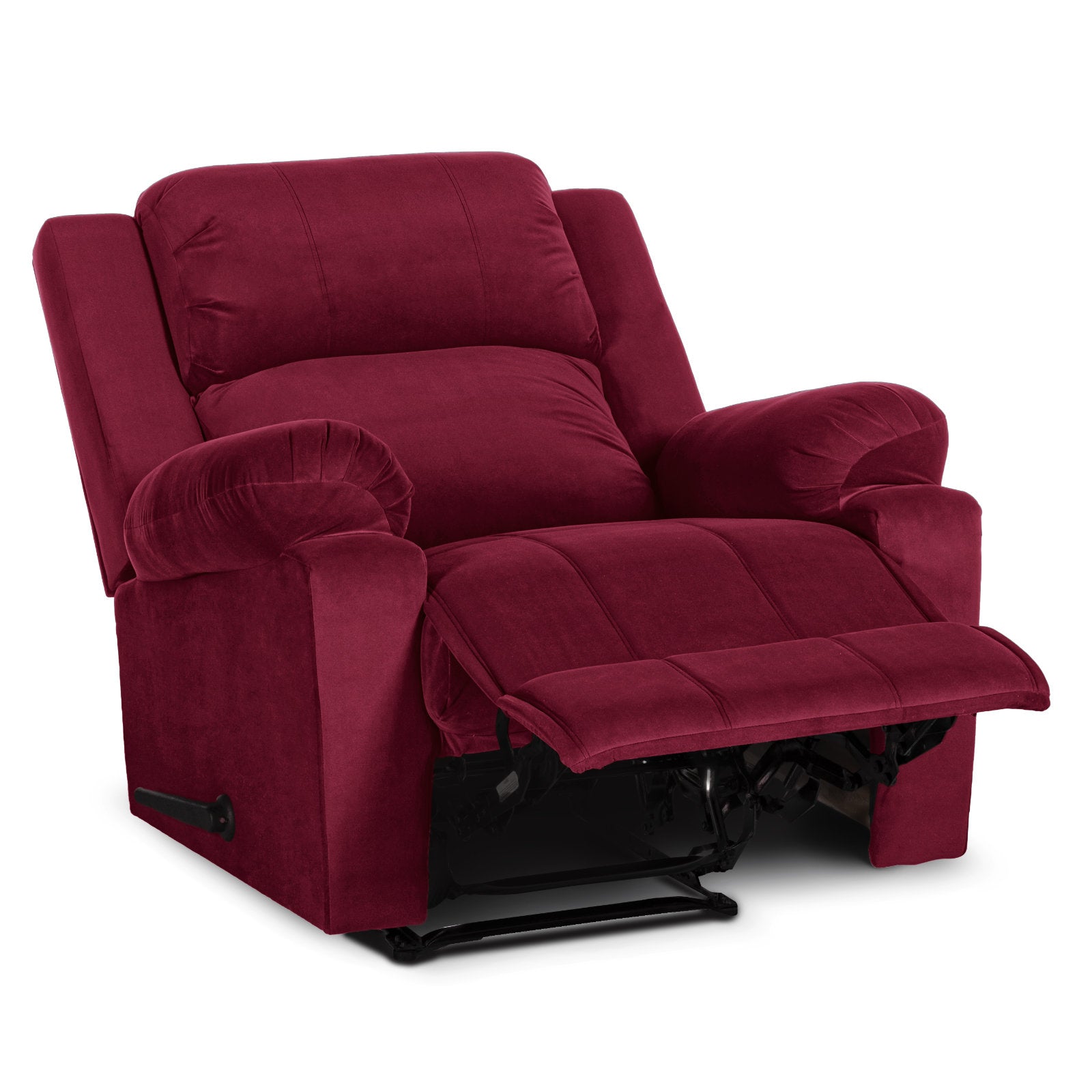 Velvet Upholstered Rocking & Rotating Recliner Chair With Bed Mode From In House - Burgundy - AB02