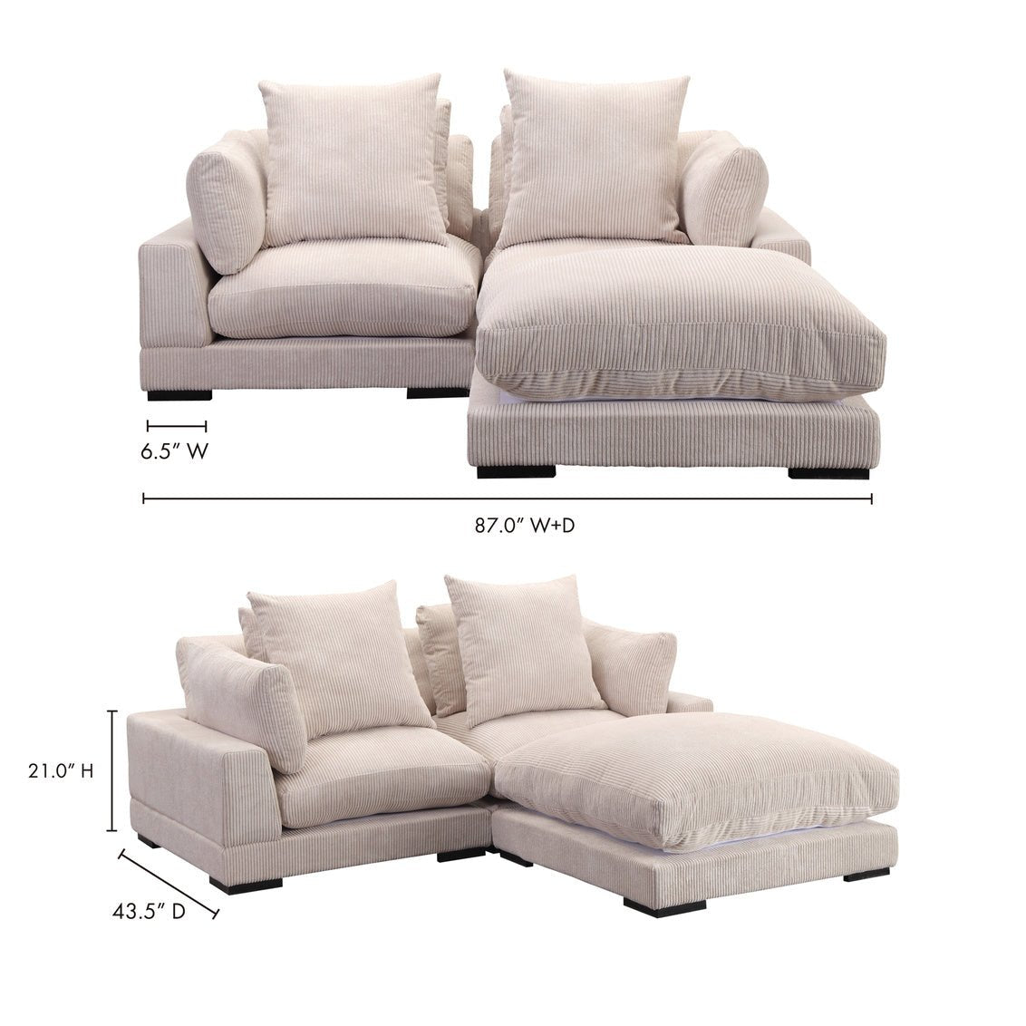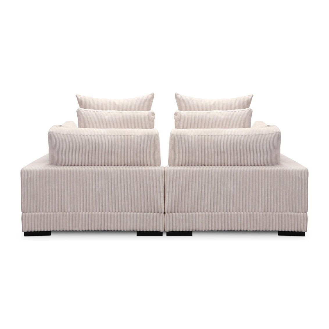 Seriously comfortable, seriously stylish. Either at home or in your commercial space, you can get cozier & cushier using furniture that encourages the softer moments of calm and focus - just like Tumble's mix and match modular pieces. Tumble's corduroy naturally softens the sharp edges and hard lines of other accents like coffee and end tables with its inherent plushness. Framed in solid eucalyptus wood with extra, fully down-filled, removable back cushions, the Tumble Nook is an ideal modular dream. This sectional’s soft corduroy will immediately add dimension, intrigue, lift, and comfort to any environment.