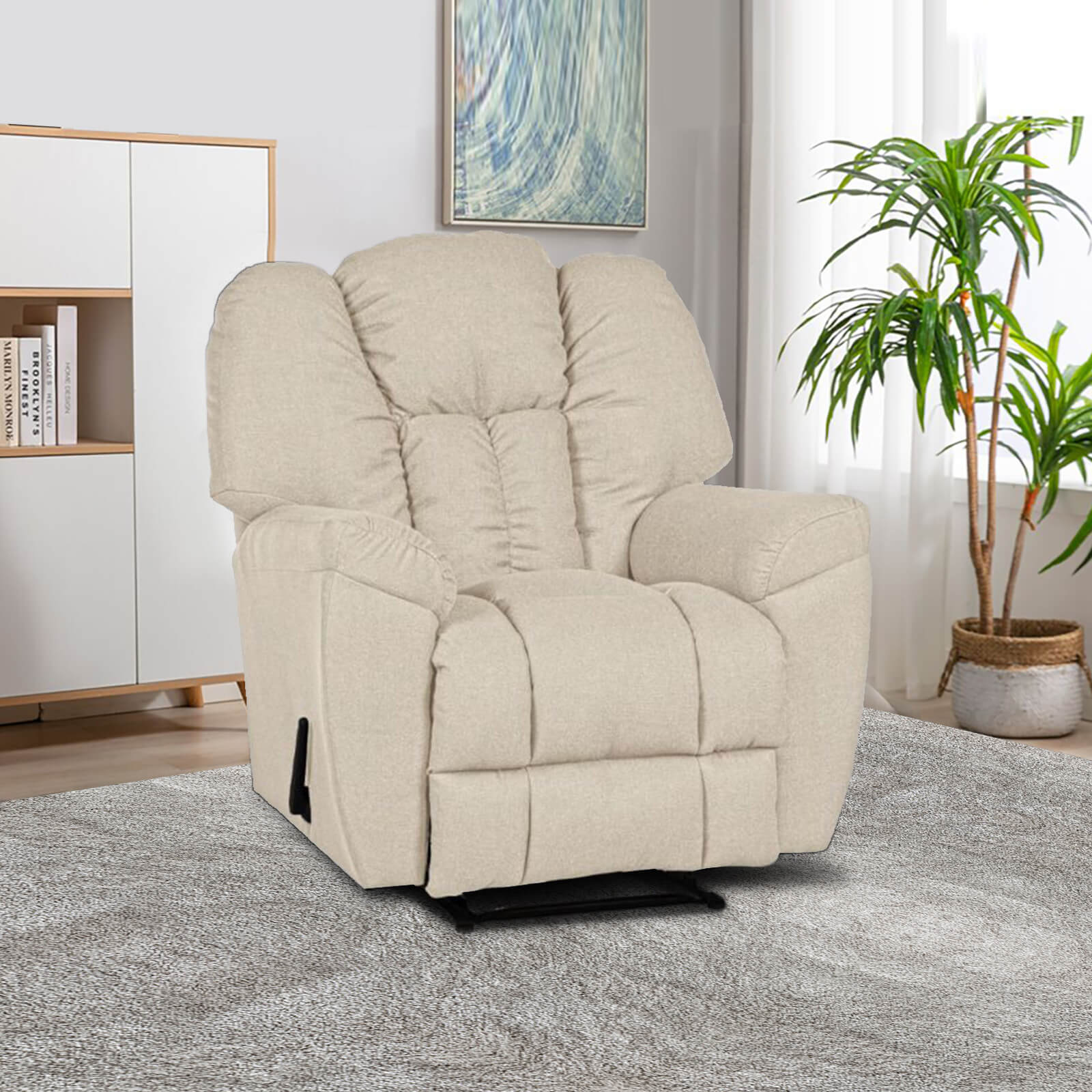 Linen Upholstered Rocking & Rotating Recliner Chair With Bed Mode - Light Beige - Penhaligon's