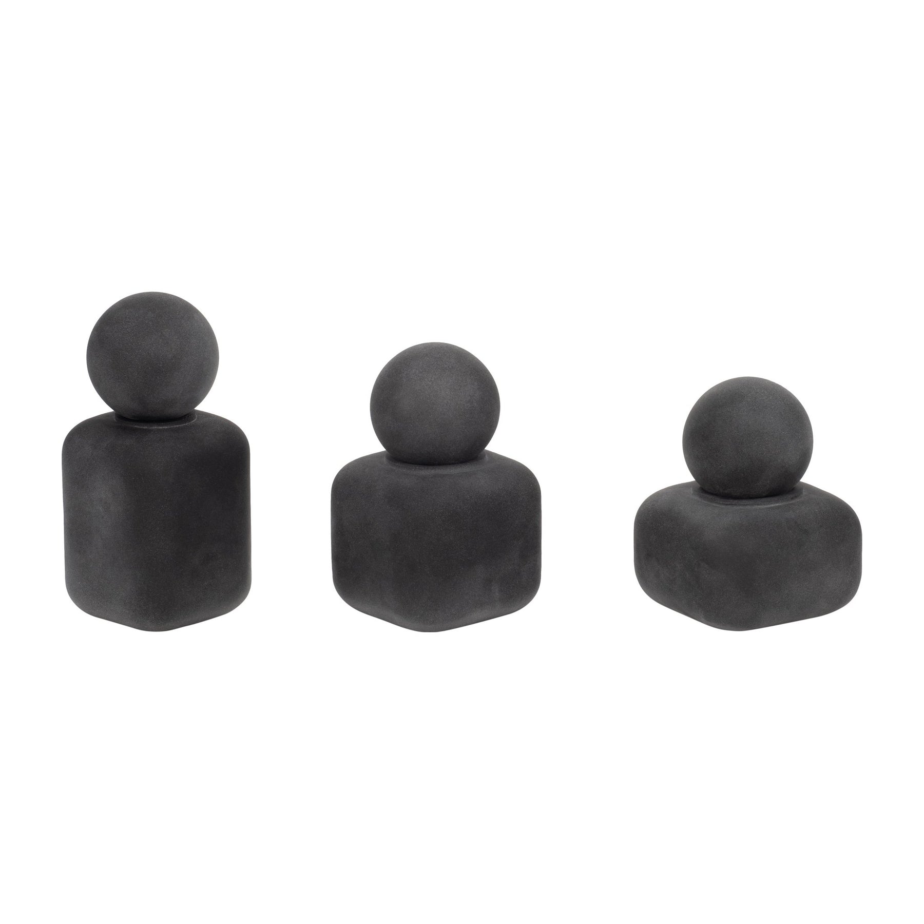 S/3 4/5/6" Mason Black Glass Lidded Bottles