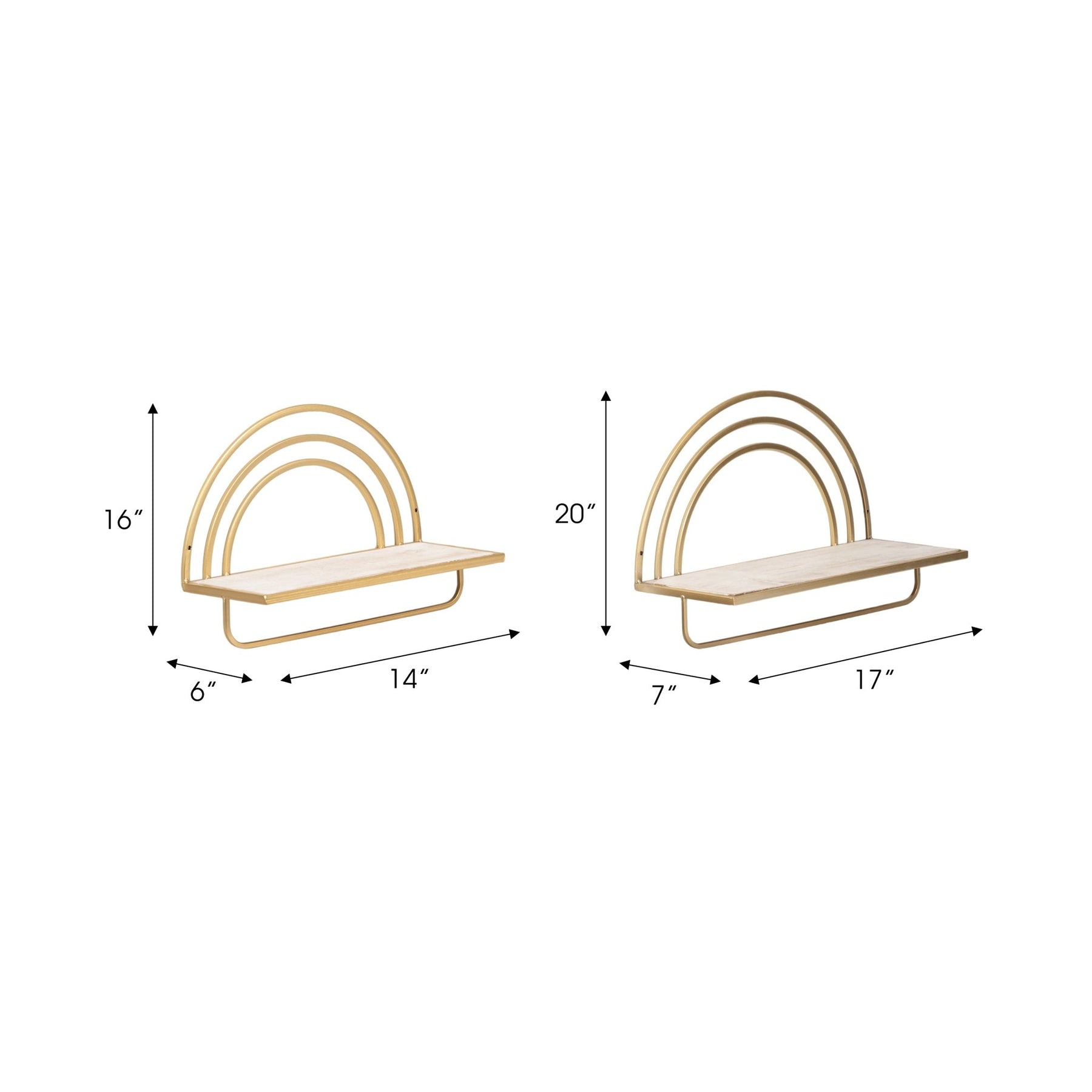 SET/2 WOOD/METAL RAINBOW STYLE SHEVES, WHT/GLD
