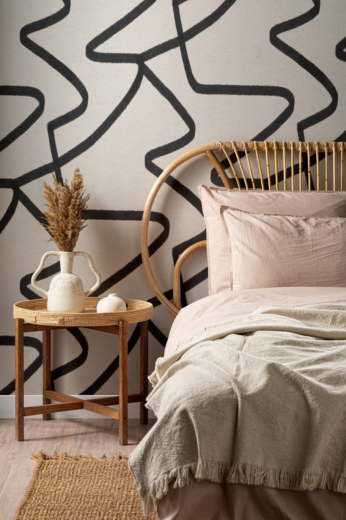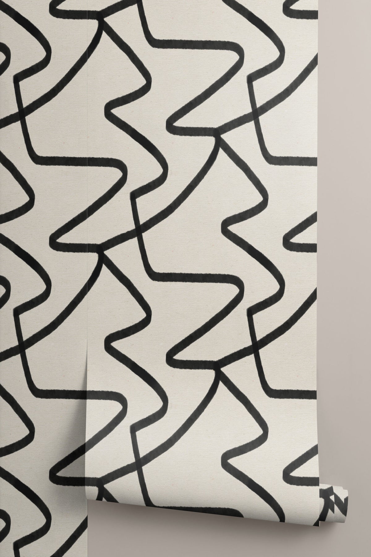 Black and Neutral Abstract Lines Repeat Pattern Wallpaper
