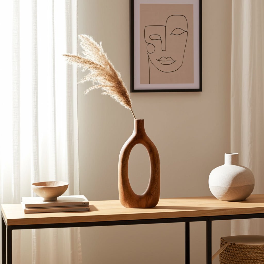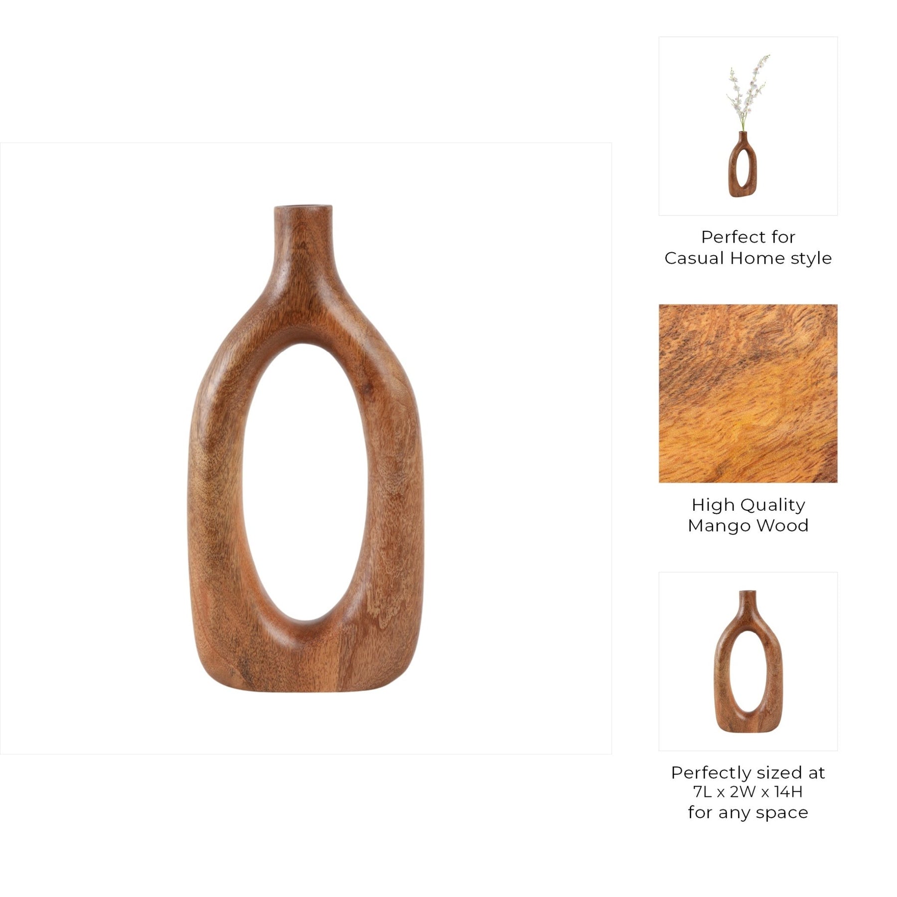 14x7" Open Cut - out Wood Vase, Natural - Al Rugaib Furniture