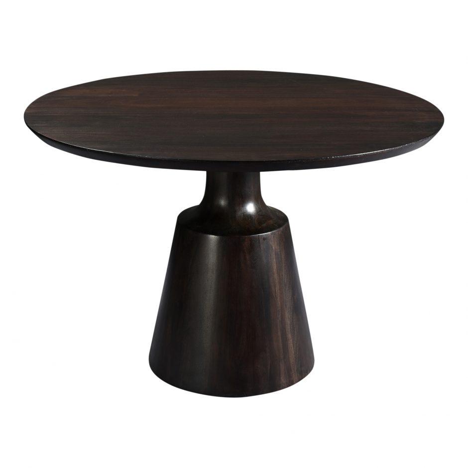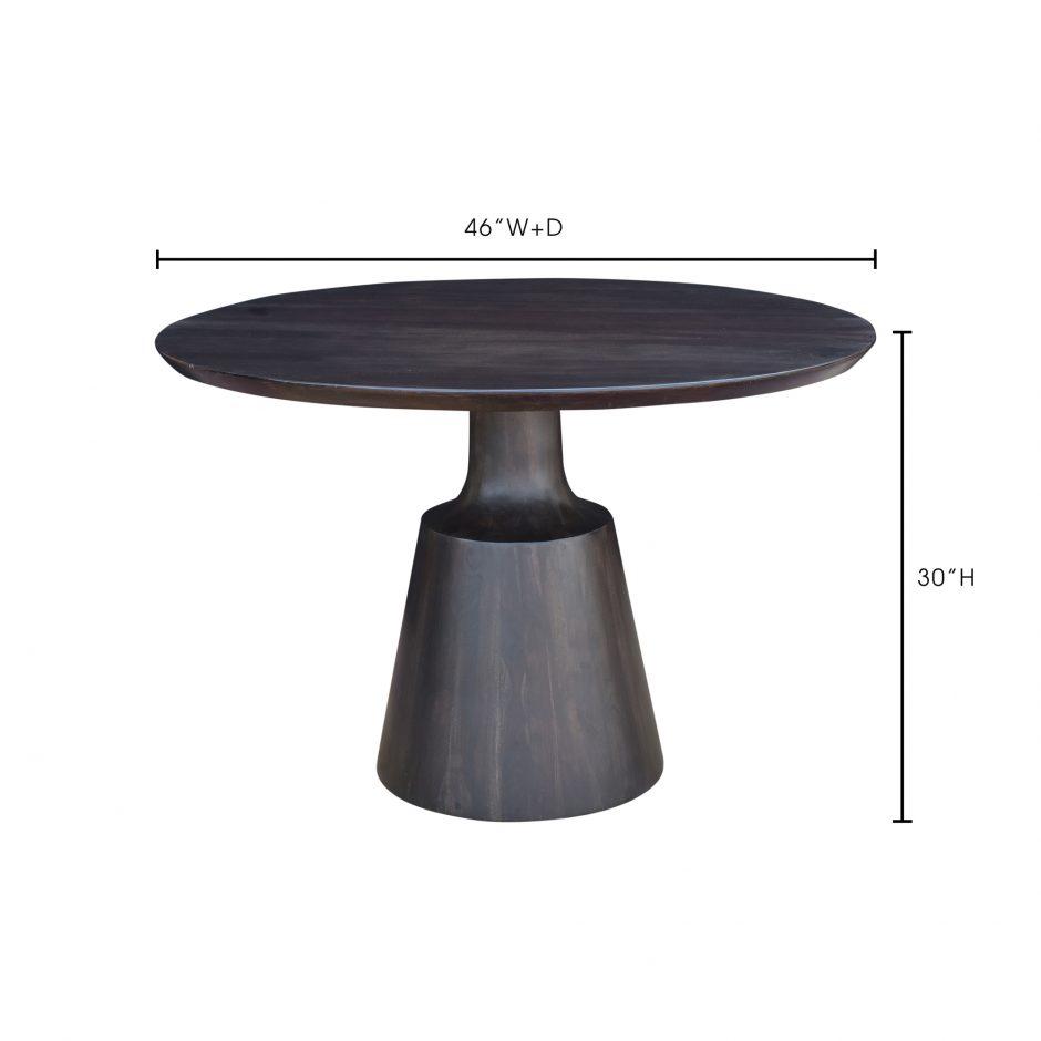 Gather around great design. The Myron Dining Table's dark finish adds subtle sophistication to the contemporary design. Made from solid Sheesham wood, this table will stand the test of time. طااولة مرتفعة Item Material: Solid Sheesham Item Color: Dark Grey Item Height: 76.2 Item Width: 116.84 Item Depth: 116.84