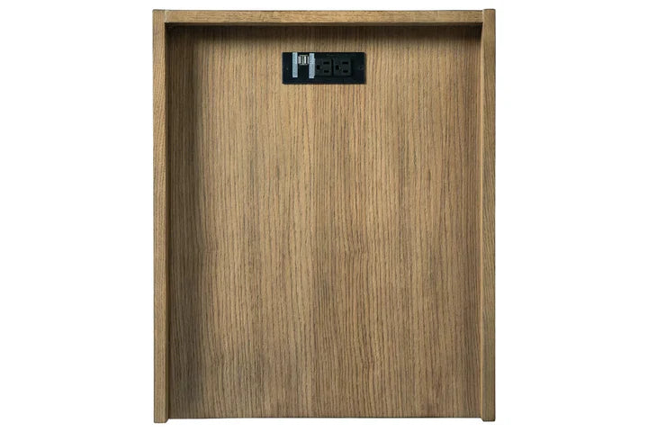 Made with oak veneer and engineered wood;Light, natural finish;Metal frame with black finish;Lower shelf;Assembly required