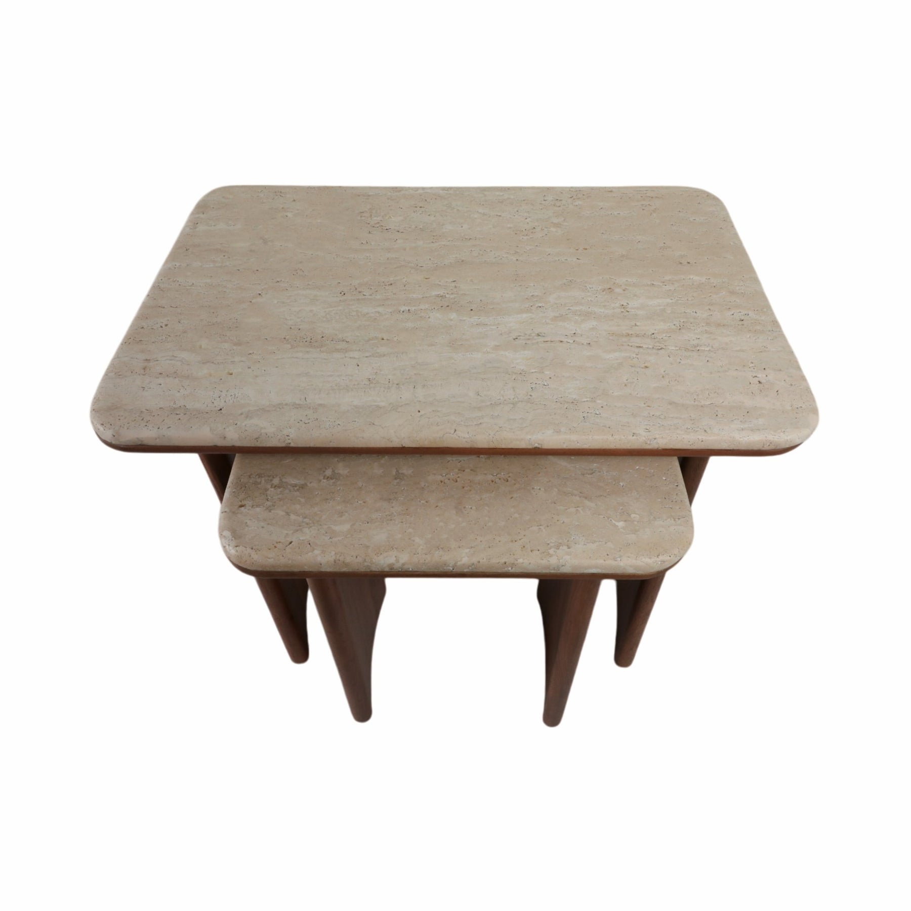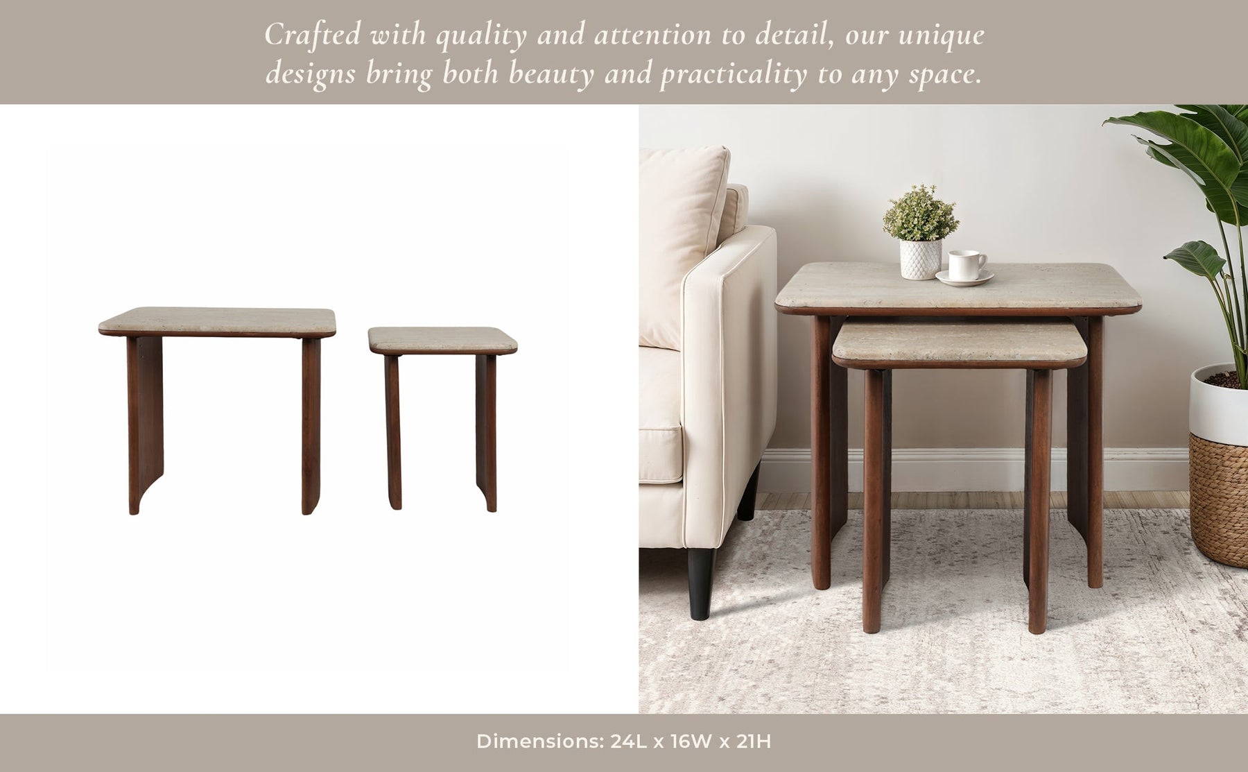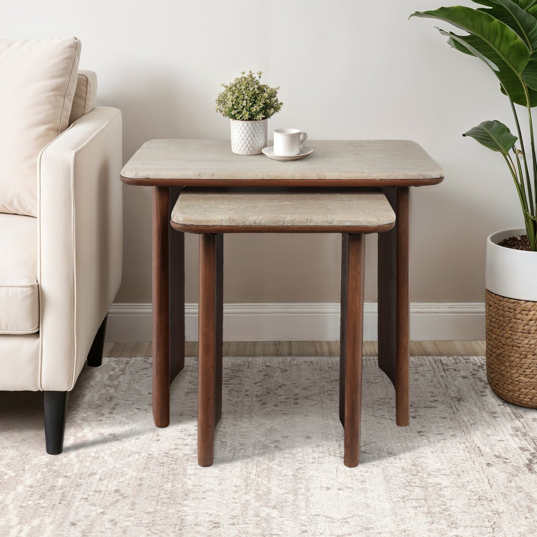 S/2 18/20" NESTED TRAVERTINE SIDE TABLES,BROWN, KD