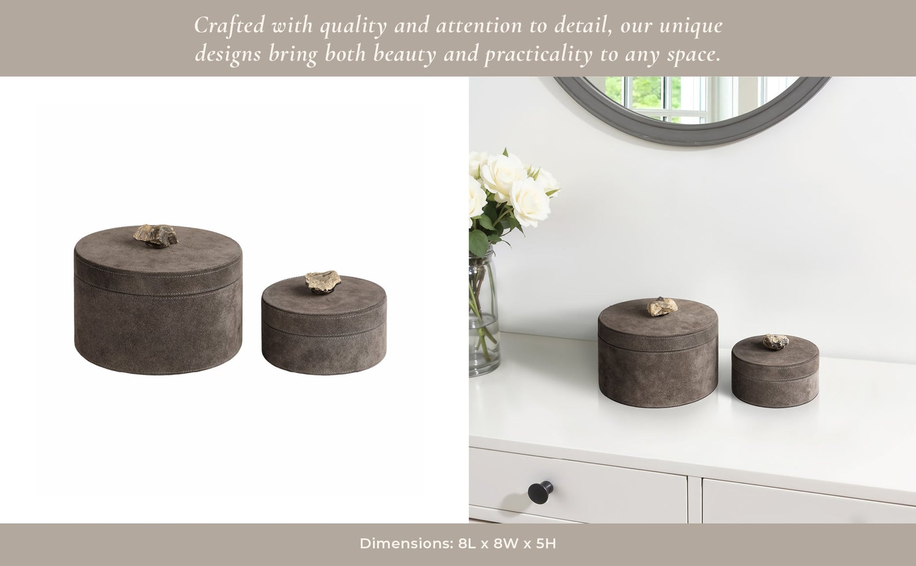 S/2 6/8" Harare Suede Boxes W/stone Knob, Gray