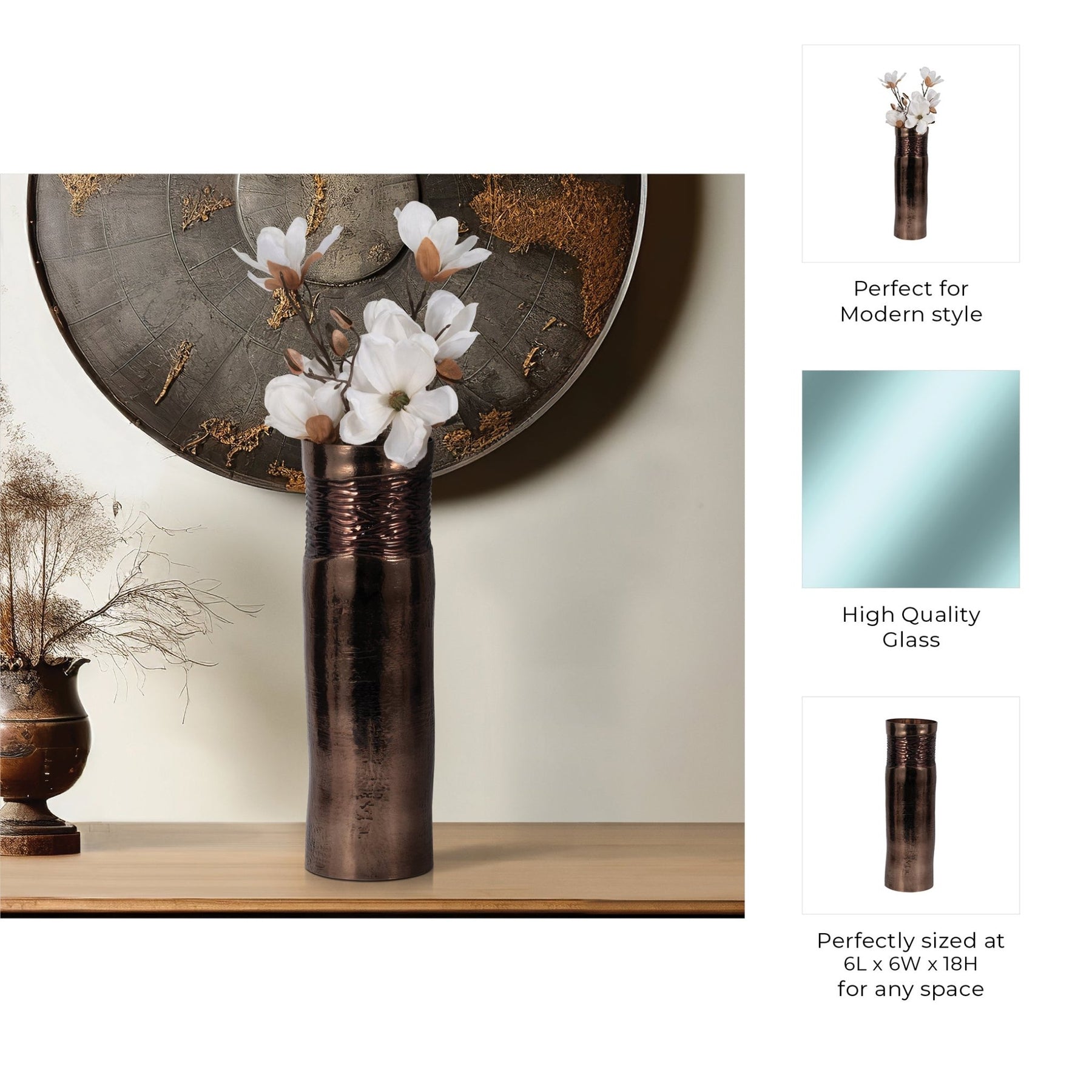 Glass, Textured Enamel Vase, Bronze - Al Rugaib Furniture