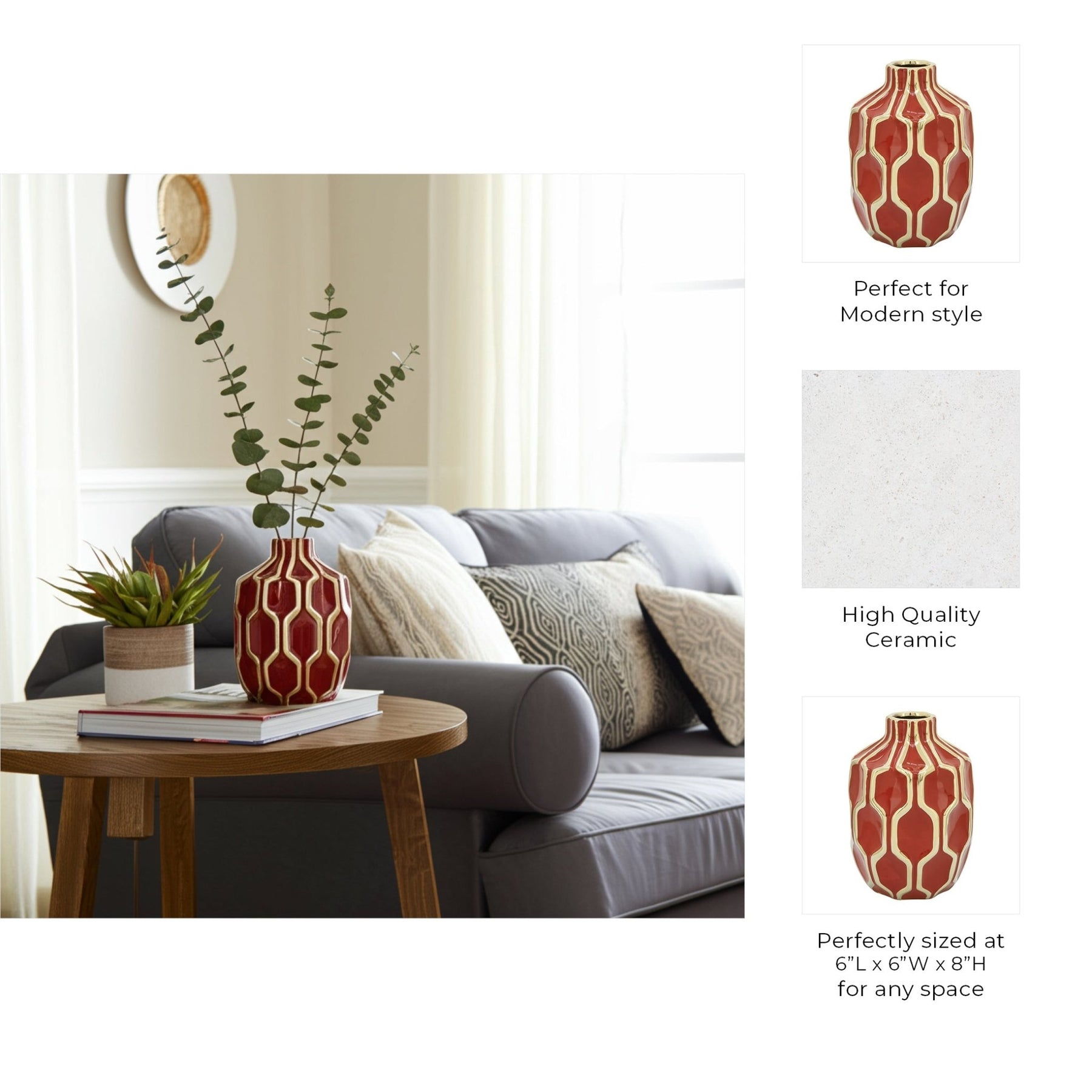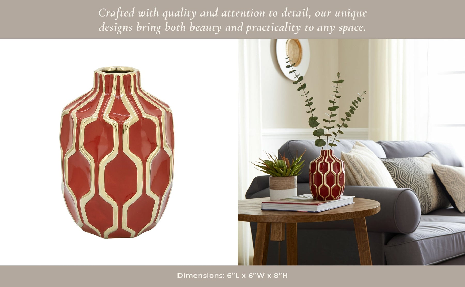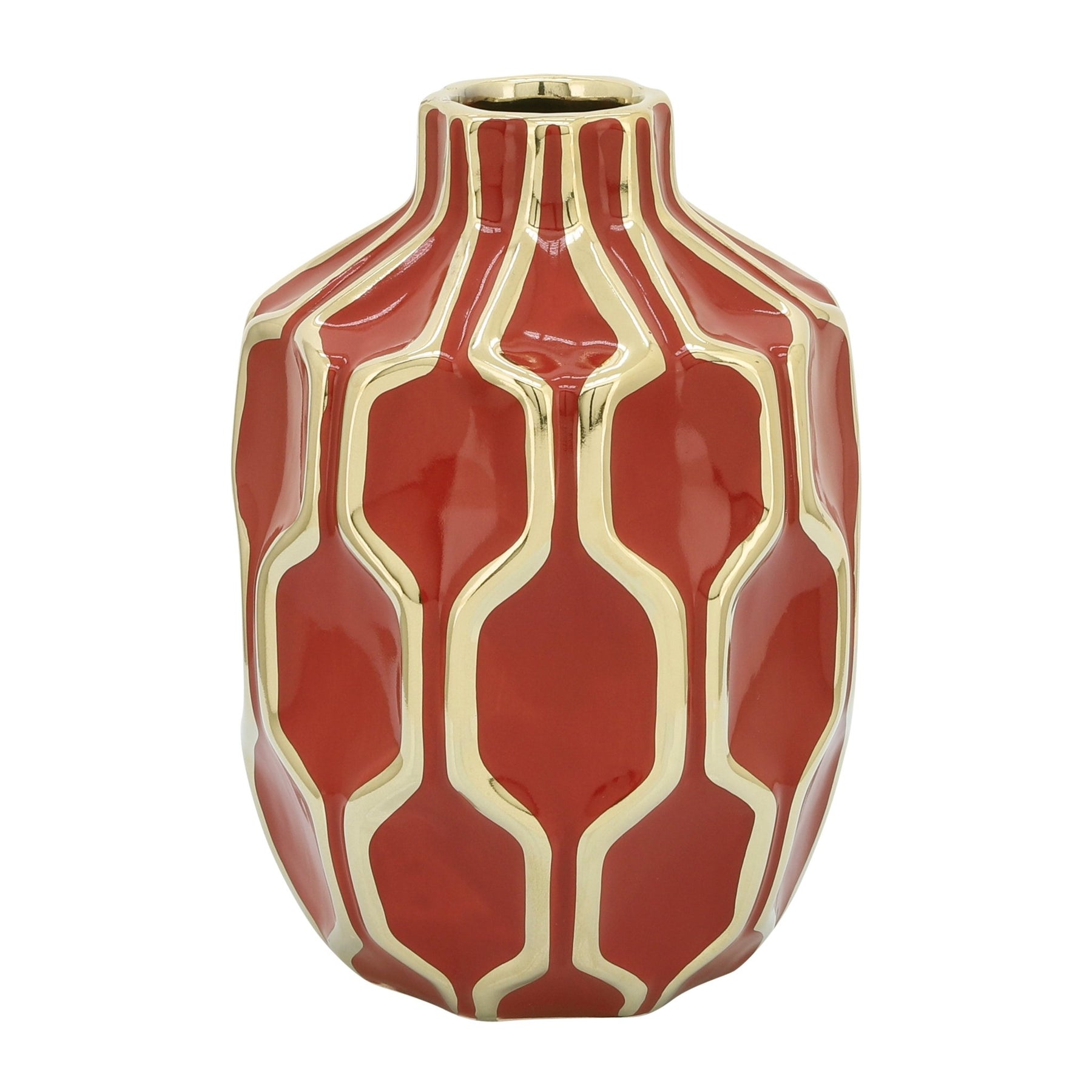 CER VASE 8", RED/GOLD