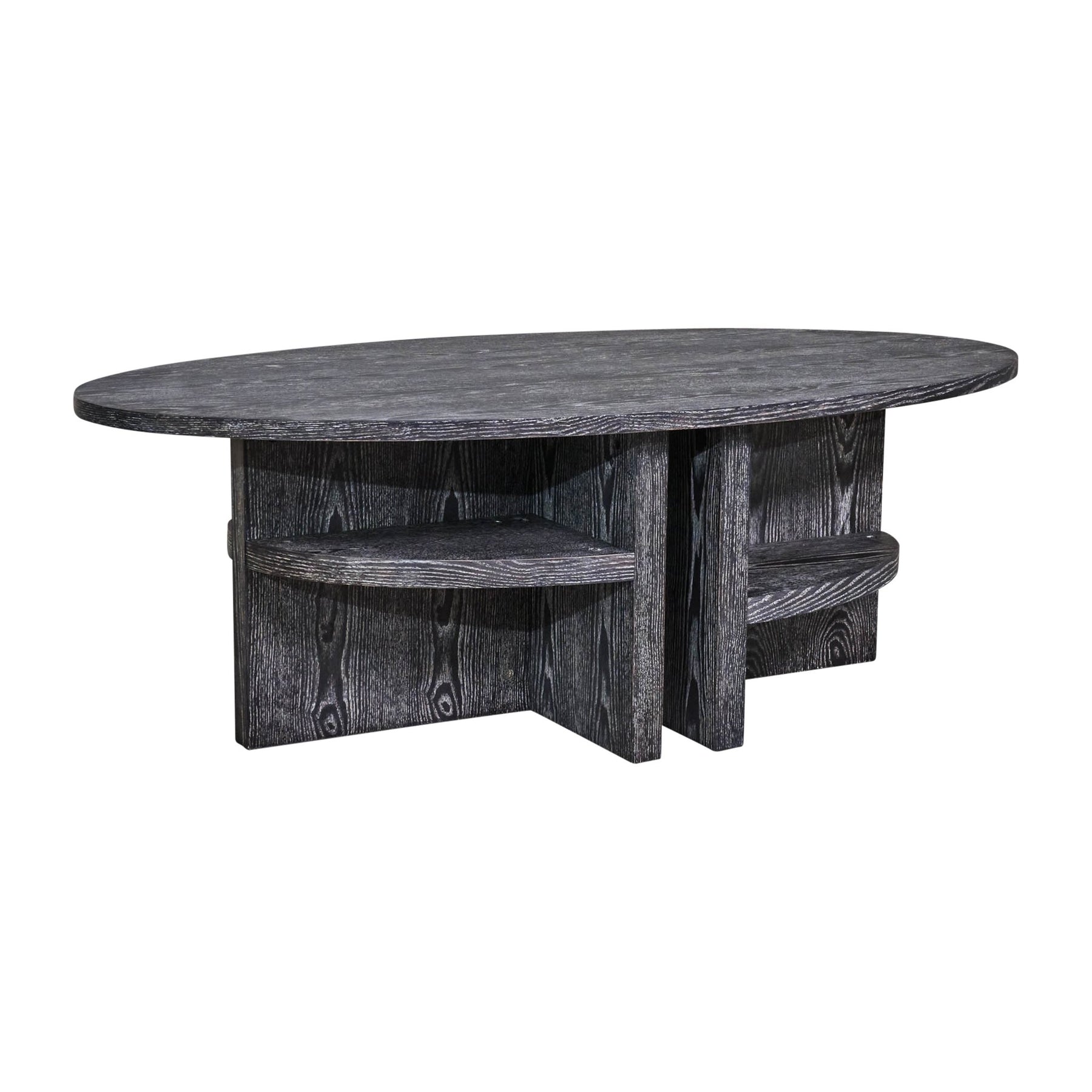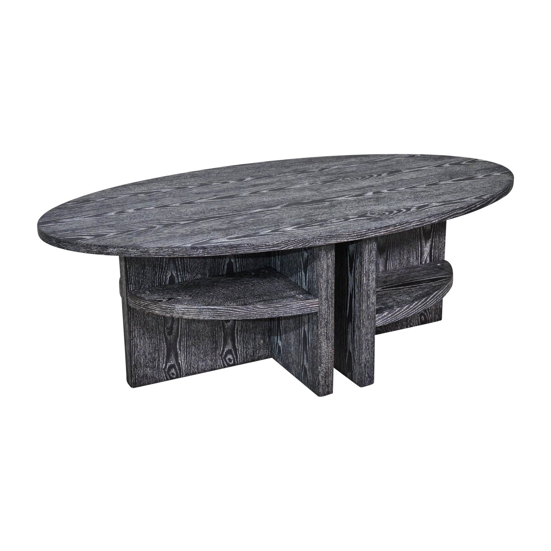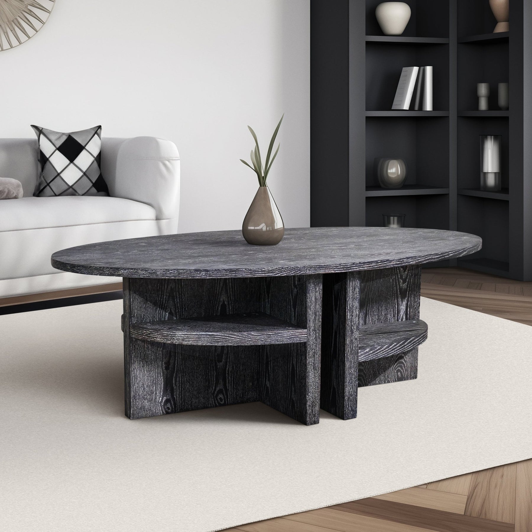 OVAL COFFEE TABLE WITH BOTTOM SHELVES, GRAY - Al Rugaib Furniture