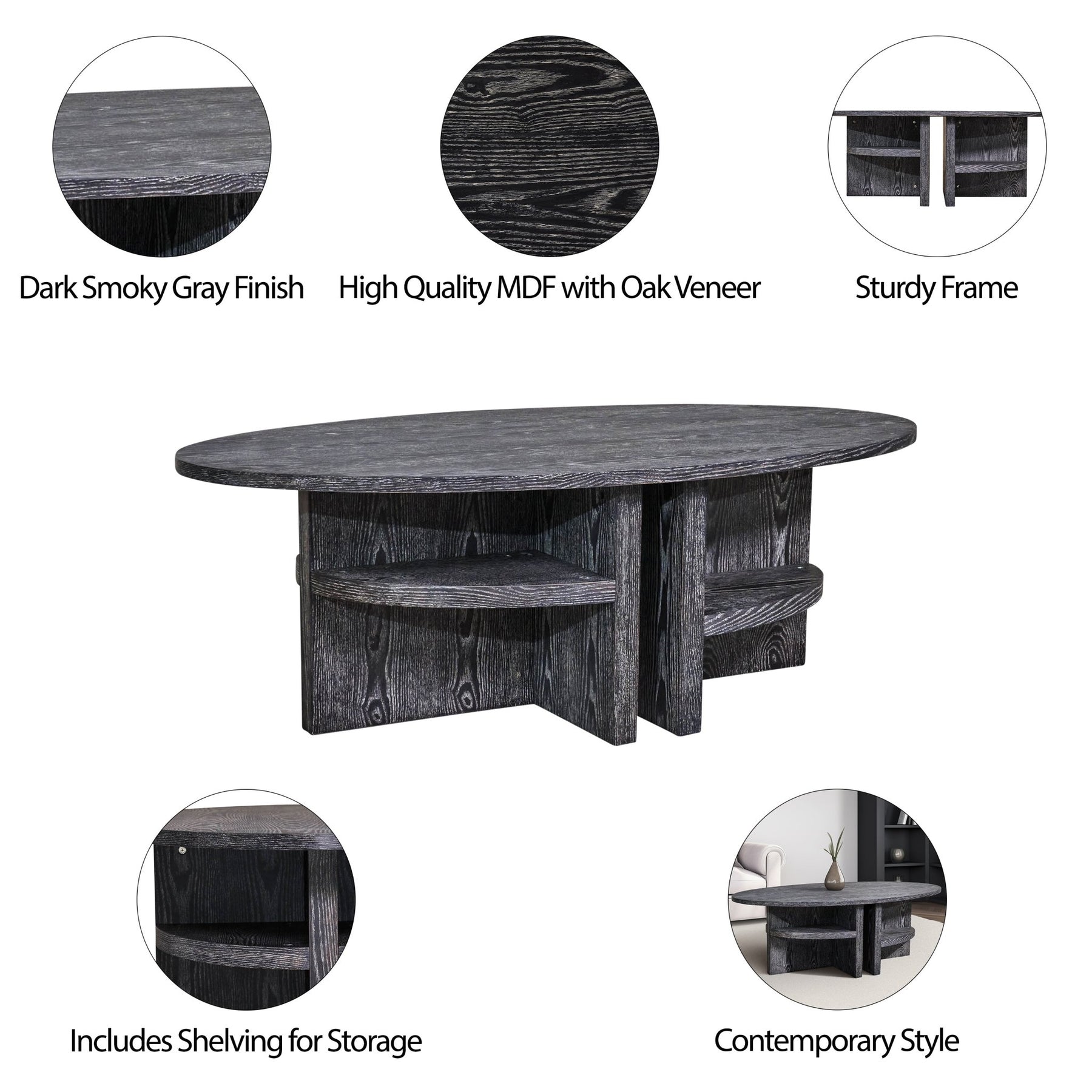 OVAL COFFEE TABLE WITH BOTTOM SHELVES, GRAY