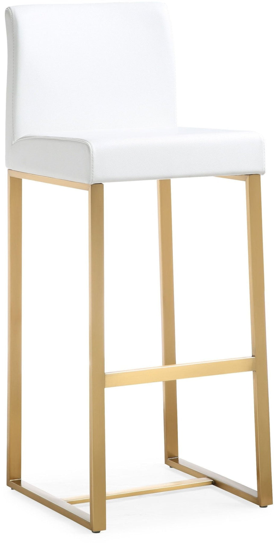 Furnish your kitchen or bar area in contemporary style with the Denmark counter stool. The gold solid stainless steel frame provides a sturdy base, while the plush seat and footrest ensure maximum comfort. The combination of angles and gentle curves gives this stool an eye-catching appearance, while the neutral color allows it to match well with any decor.